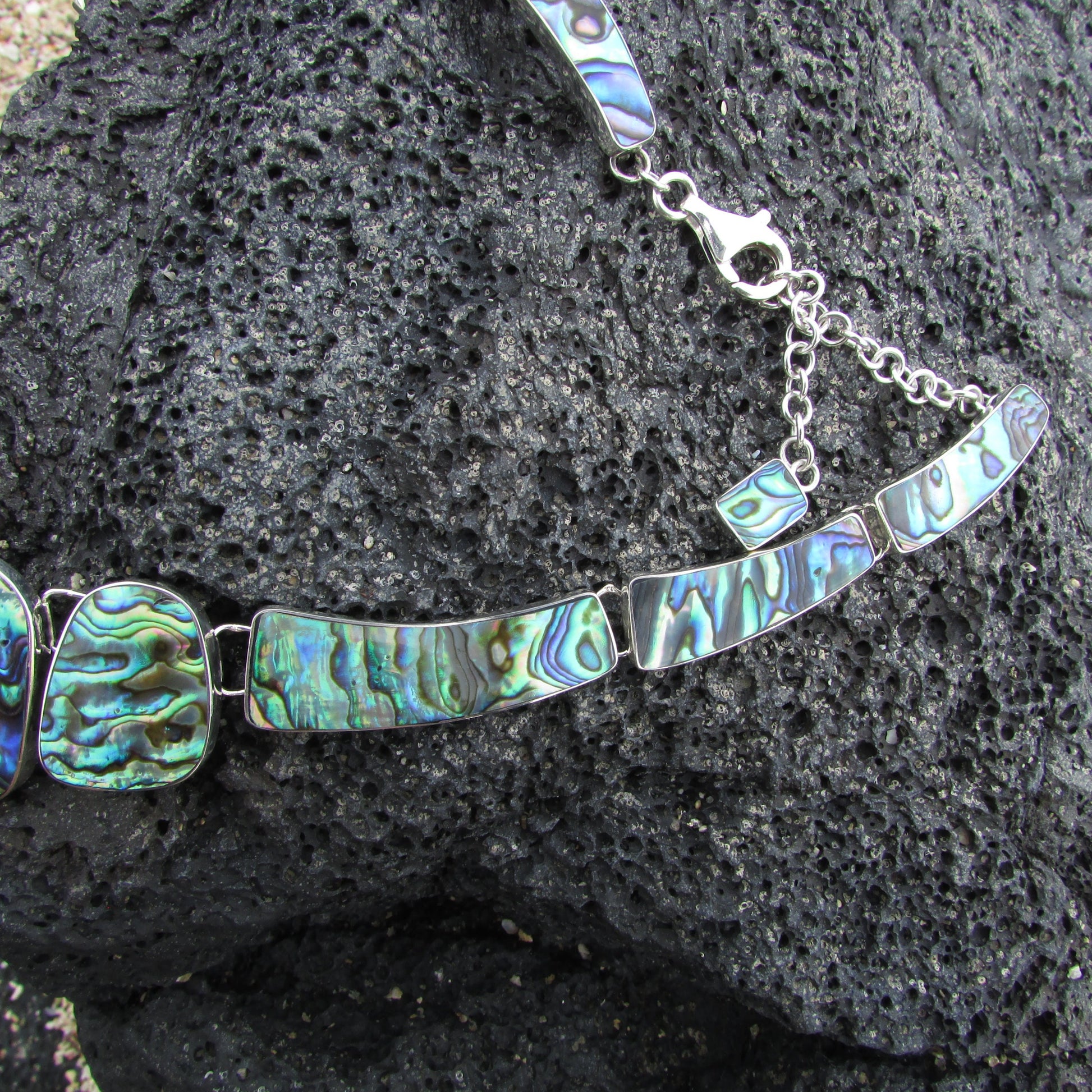 Pieces with Abalone (Paua) Shells have unique patterns and colors. Every single one is unique. Colors may vary with different shades of blue, green and purple.