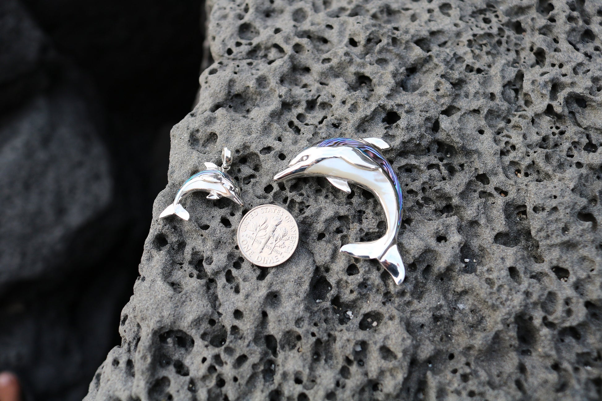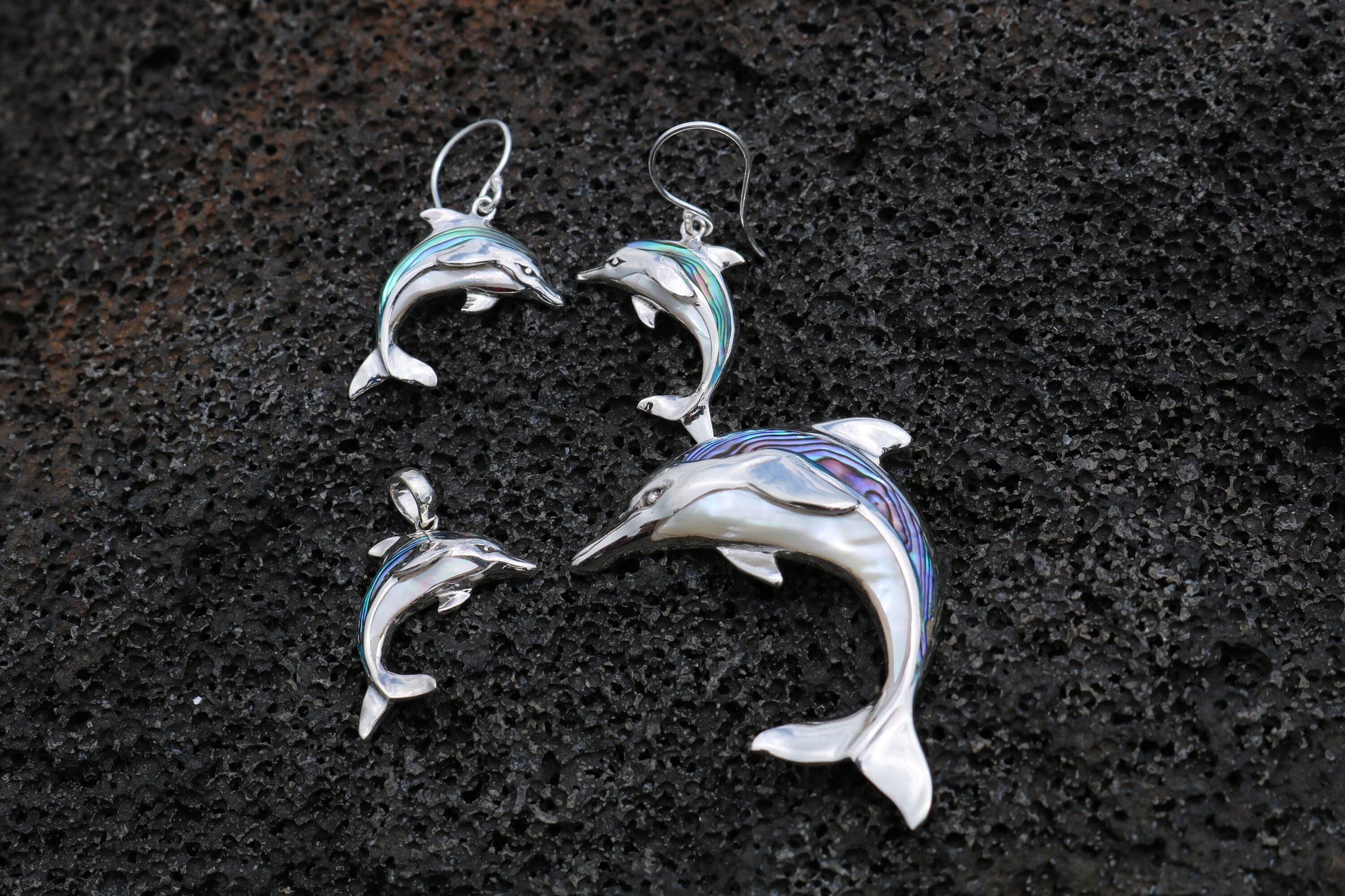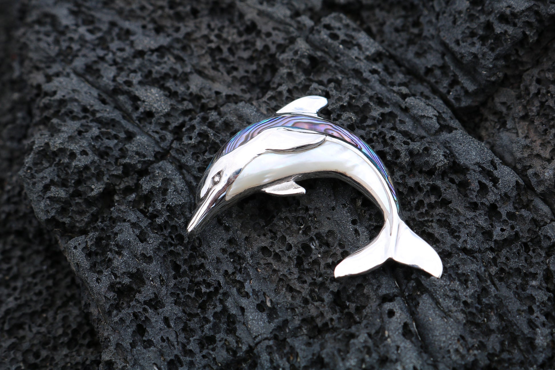 Aumakua Dolphin Necklace Pendant. Abalone Paua Shell, Mother of Pearl, Sterling Silver.