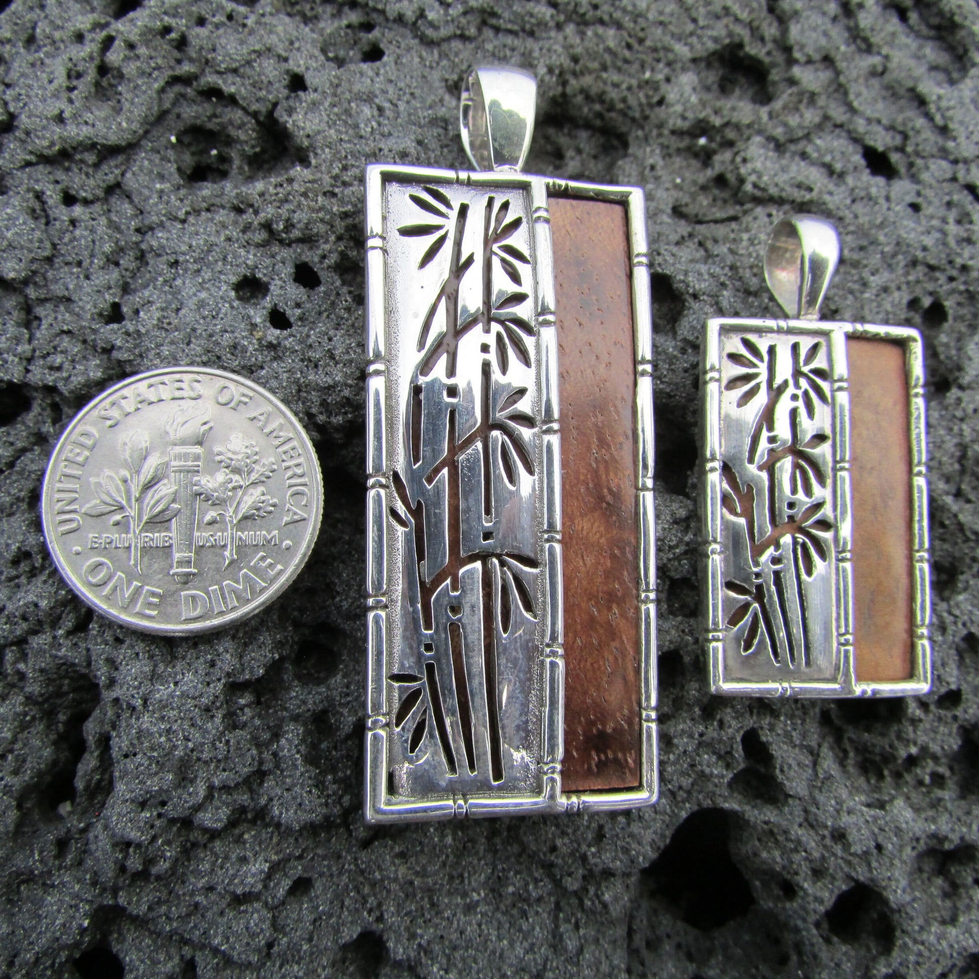 Bamboo Necklace Pendant Large | Hawaiian Koa Wood | Sterling Silver | Ocean | Beach | Gift | Jewelry | Handmade | Unique