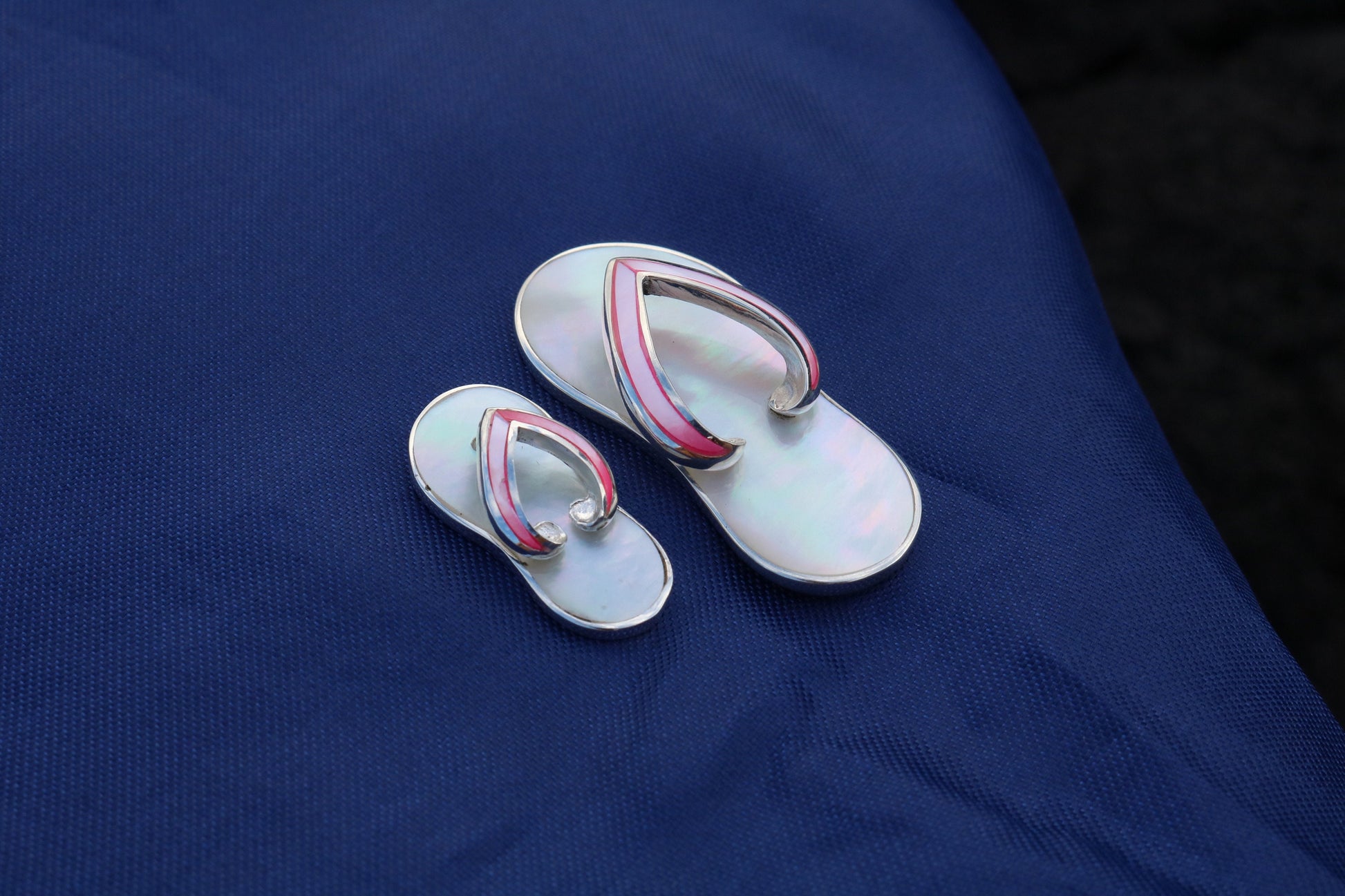 Beach Slippers Necklace Pendant . Sterling Silver, Mother of Pearl.