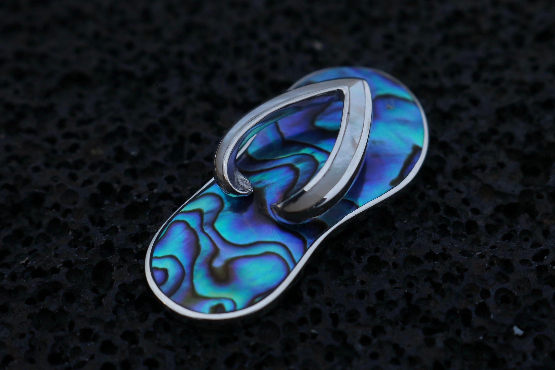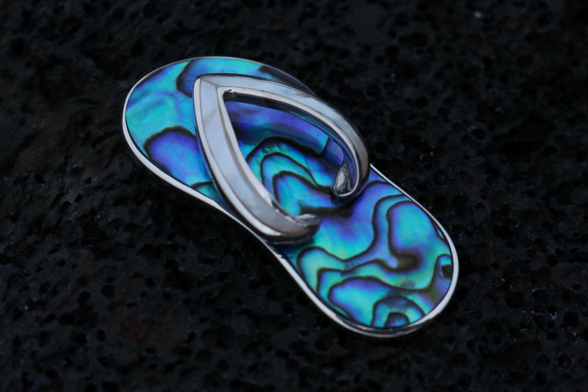 Beach Slippers Pendant Necklace. Abalone Shell, Sterling Silver, Mother of Pearl.
