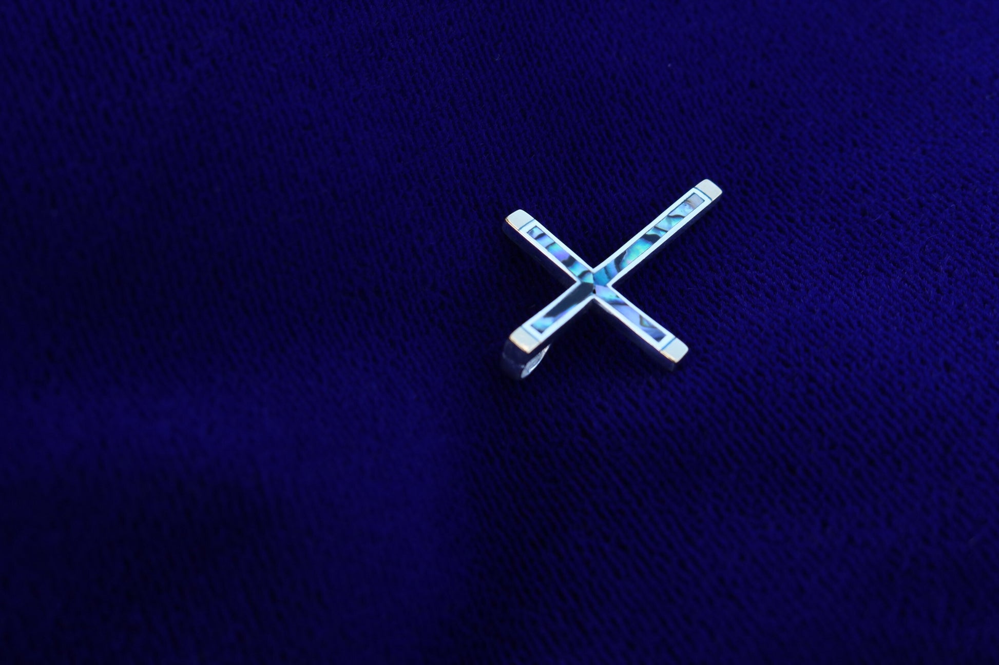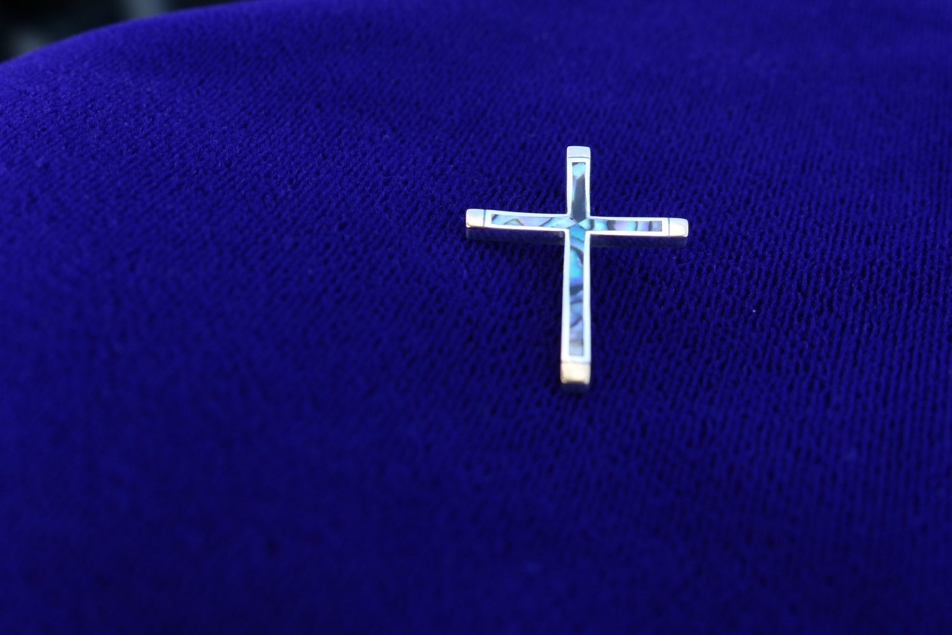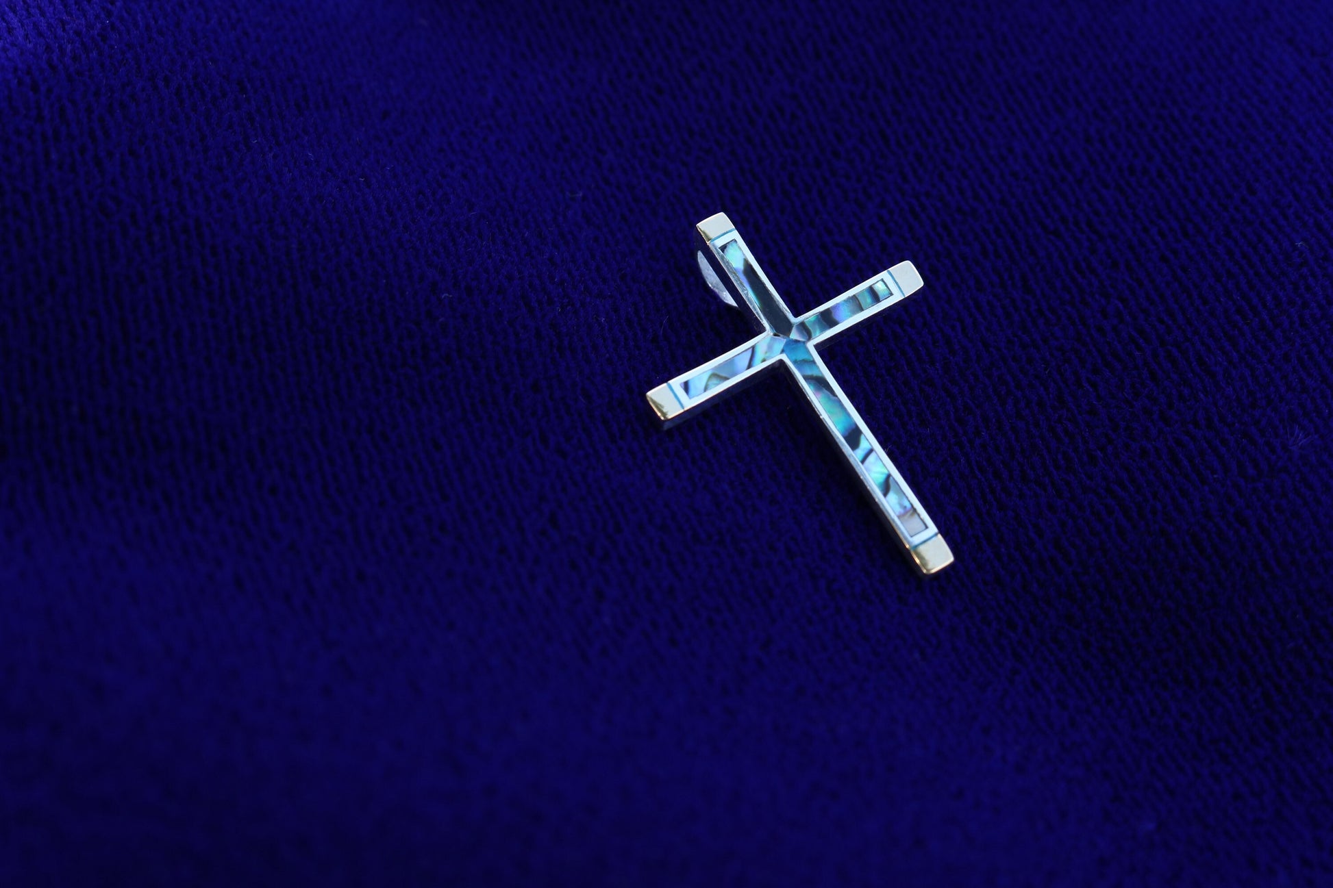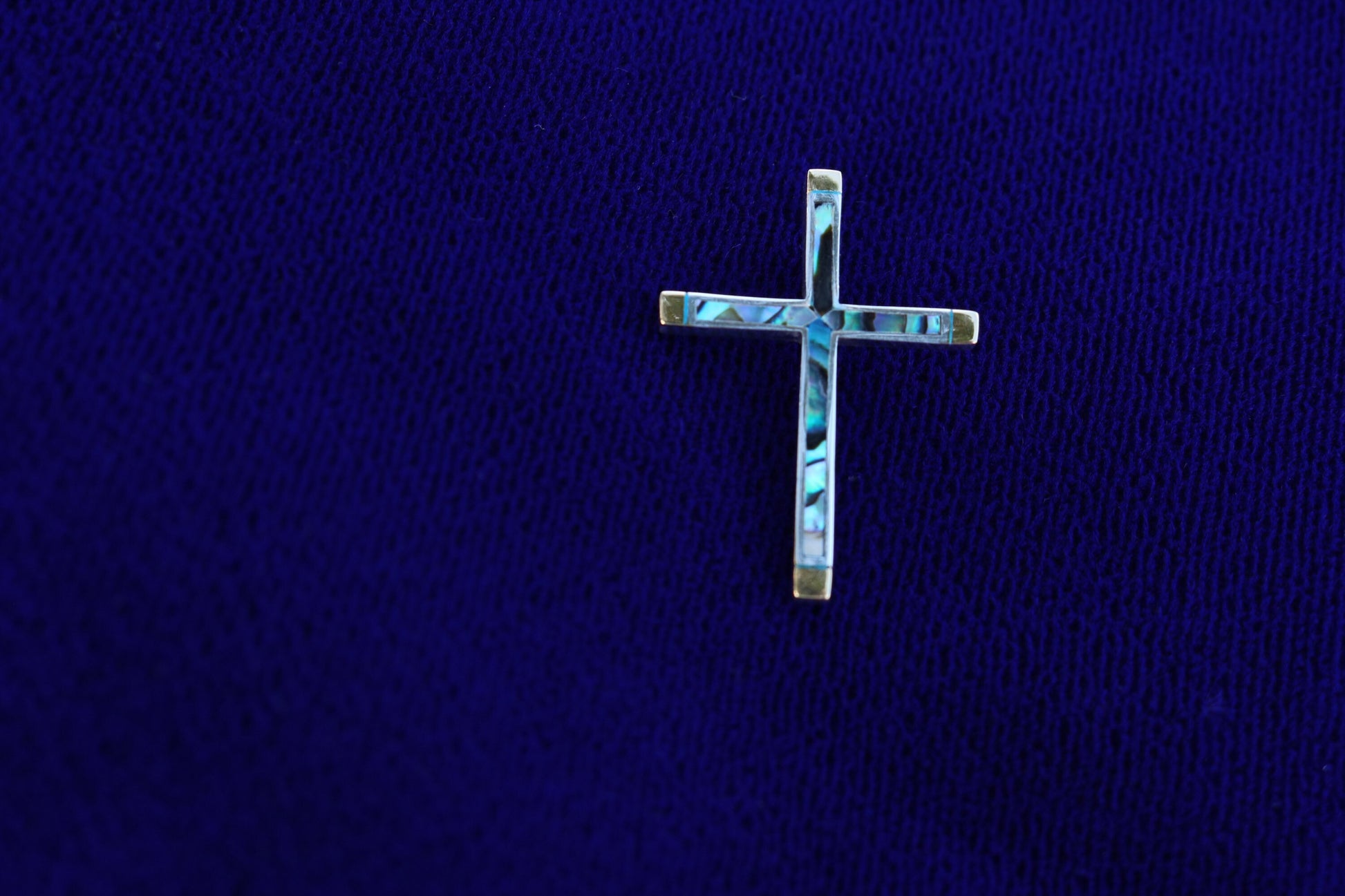 Cross 18k Gold Vermeil Pendant Necklace. Mother of Pearl, Abalone Shell