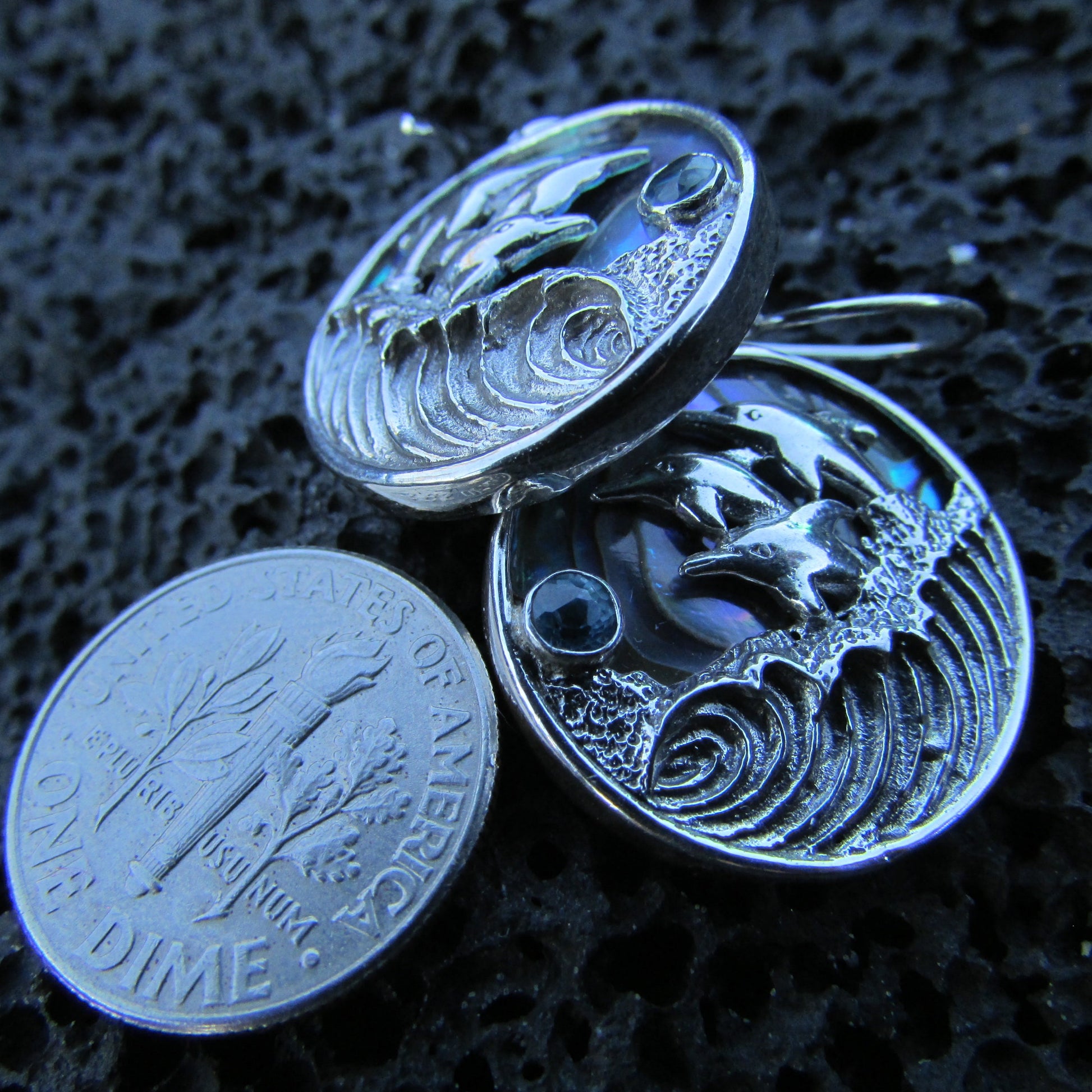 Dolphin Wave Earrings | Blue Topaz | Paua Abalone Shell | Sterling Silver | Ocean | Beach | Gift | Jewelry | Handmade | Unique