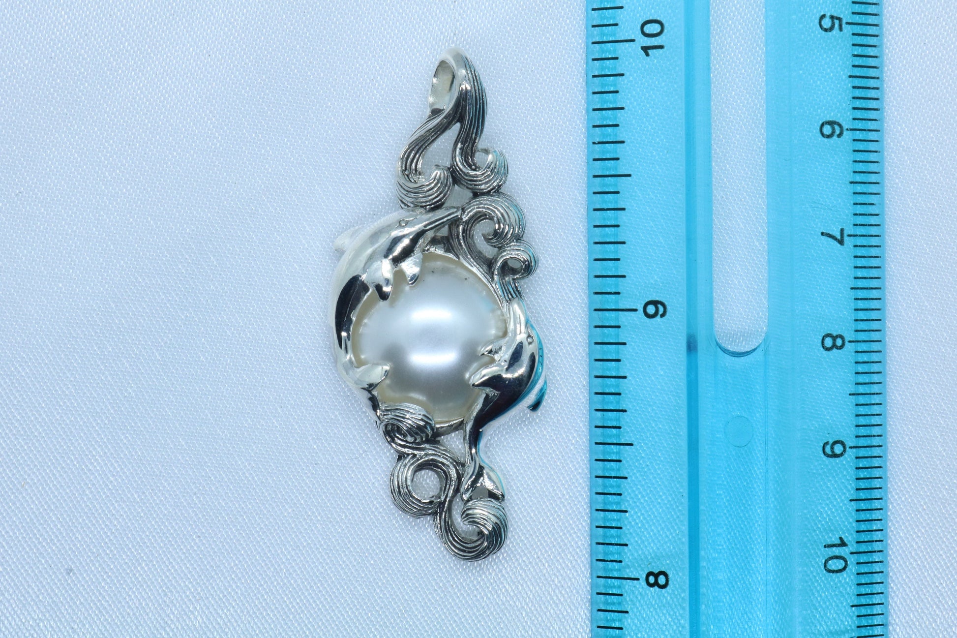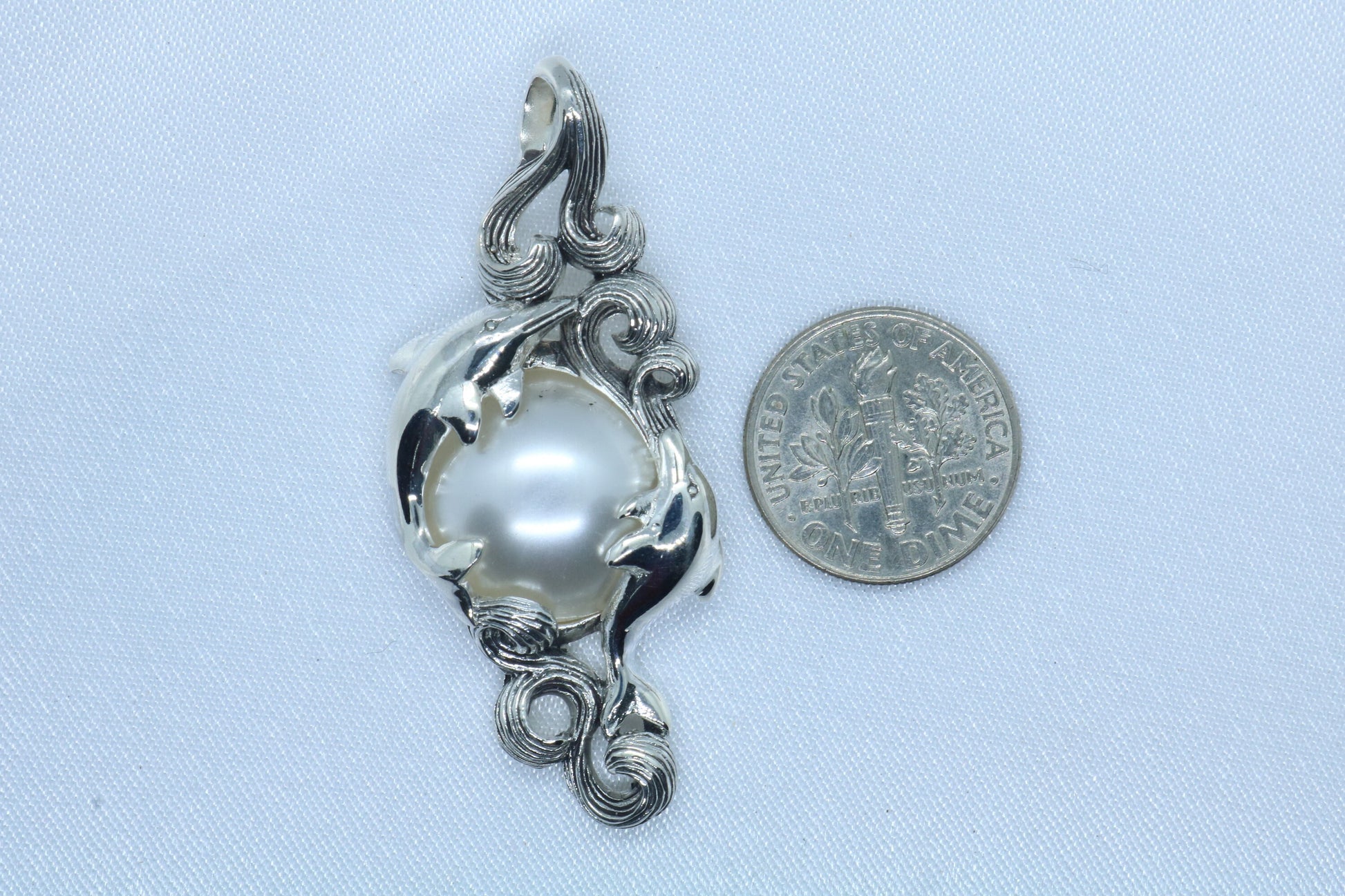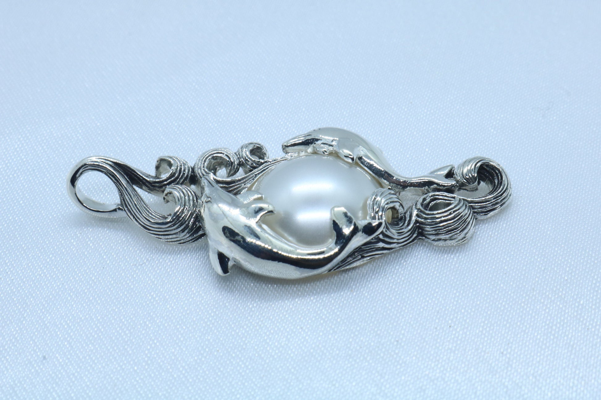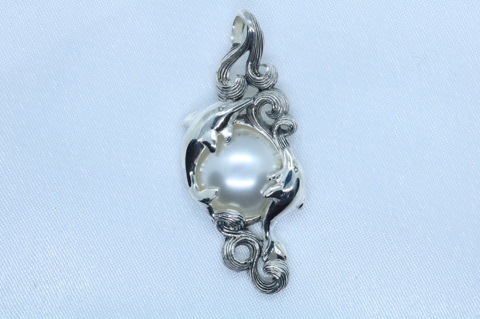 Dolphins Mabe White Pearl Silver Pendant Necklace