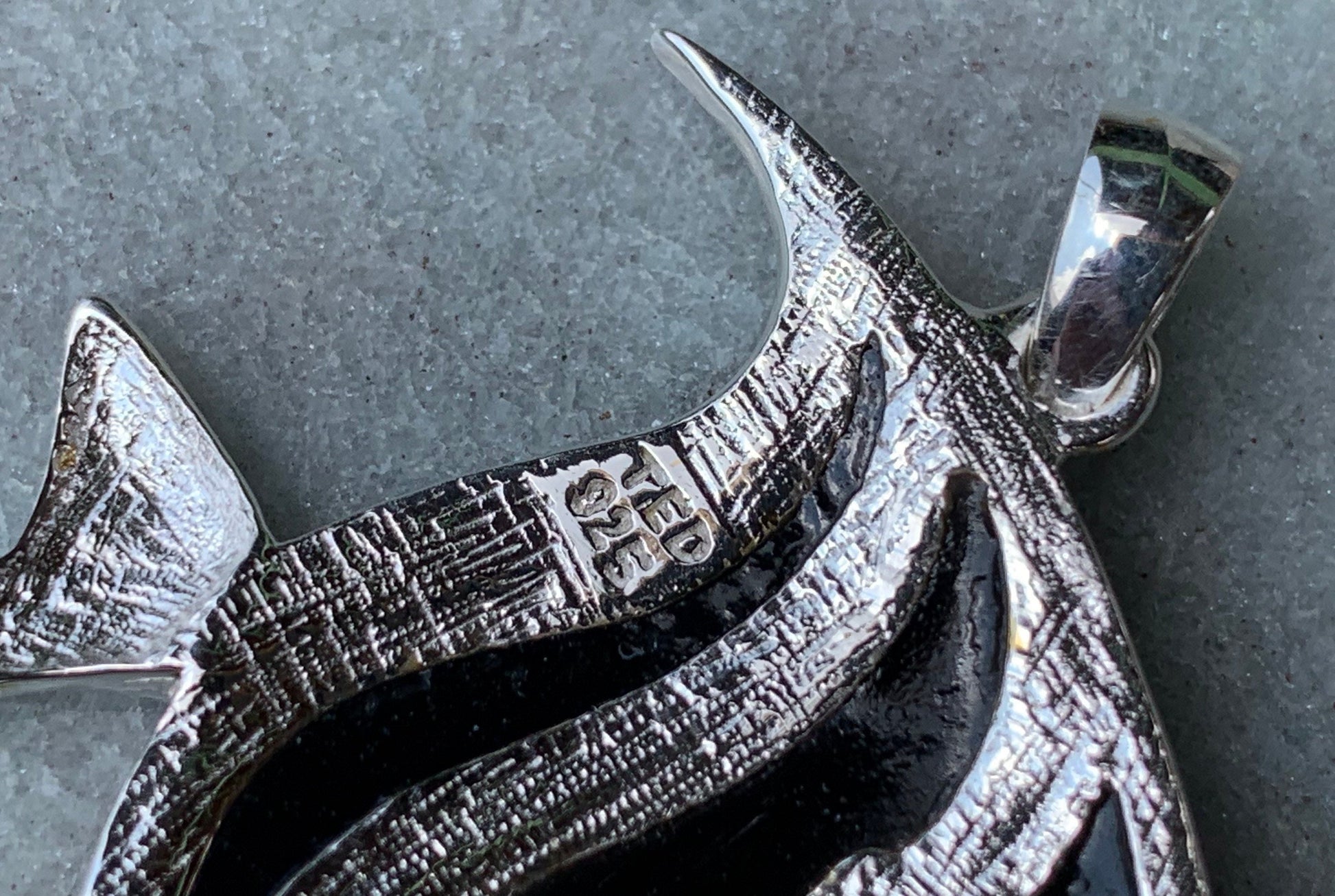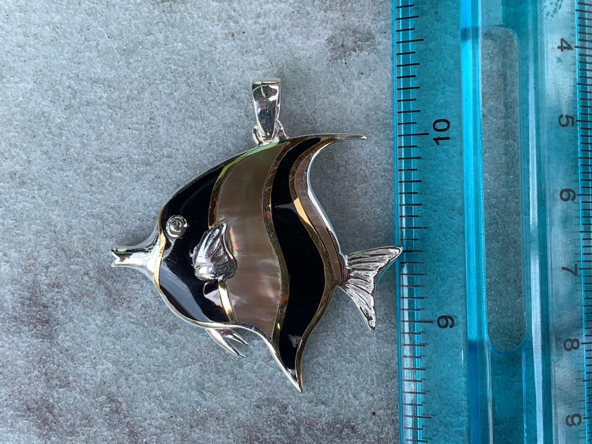 Fish Moorish Idol Hawaiian Tropical Pendant Necklace. Sterling Silver, Mother of Pearl.