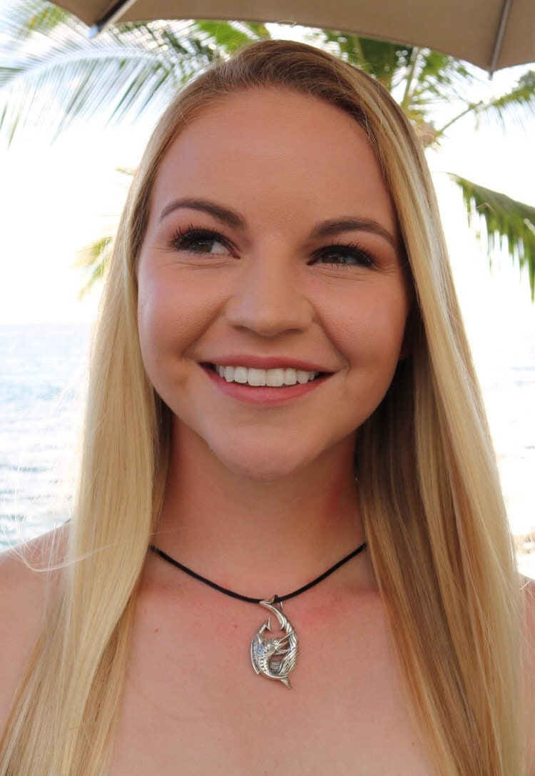 Fishing Hook Necklace Pendant with Marlin. Sterling Silver.
