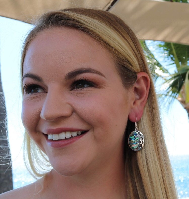 Hawaii Islands Chain Turtle Earrings | Abalone Paua Shell | Sterling Silver | Ocean | Beach | Gift | Jewelry | Handmade | Unique
