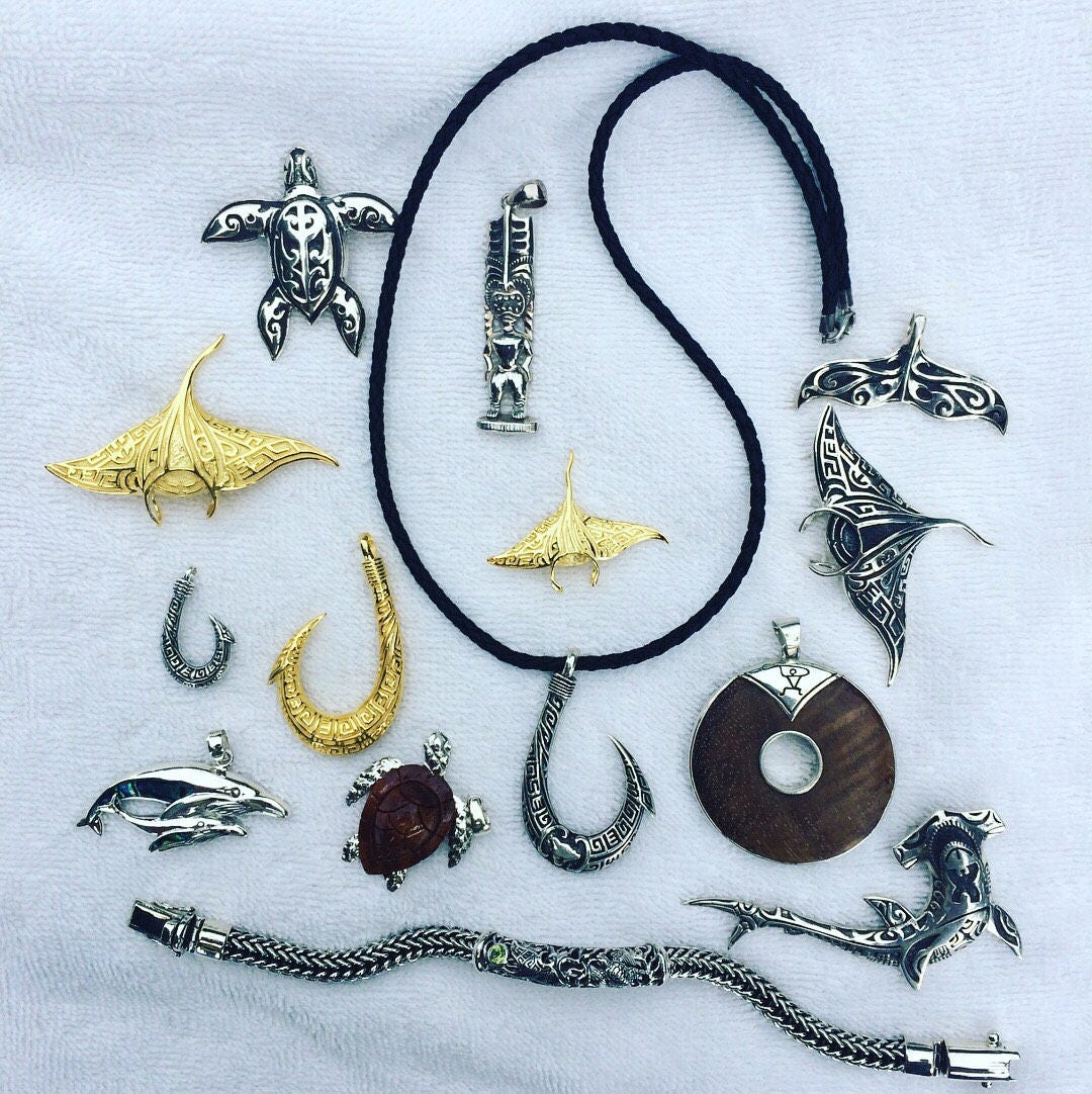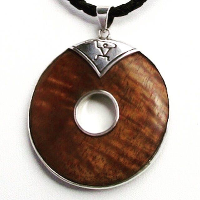 Hawaii Paddler Petroglyph Disc Pendant Necklace | Koa Wood | Sterling Silver | Ocean | Beach | Gift | Jewelry | Handmade | Unique
