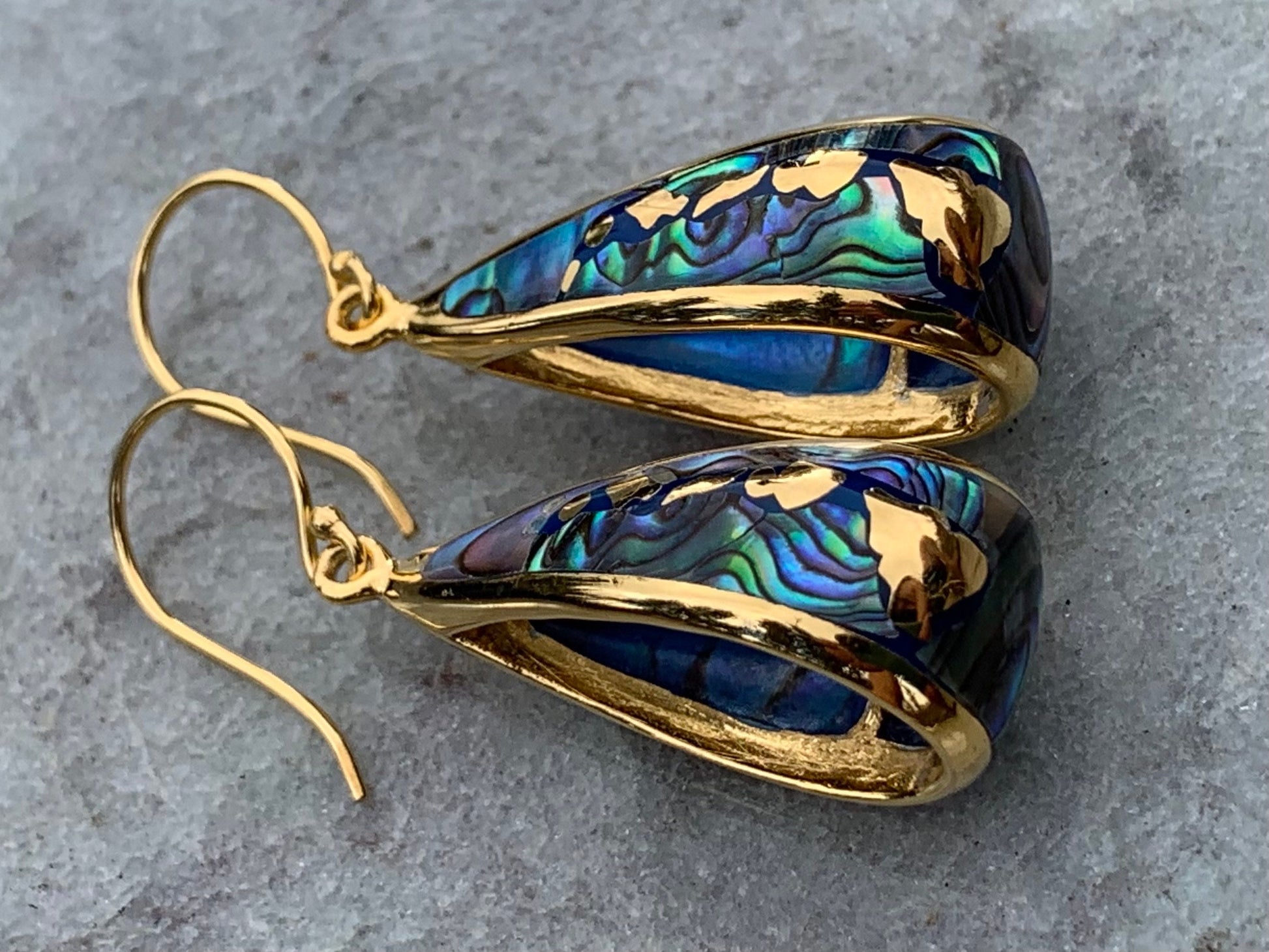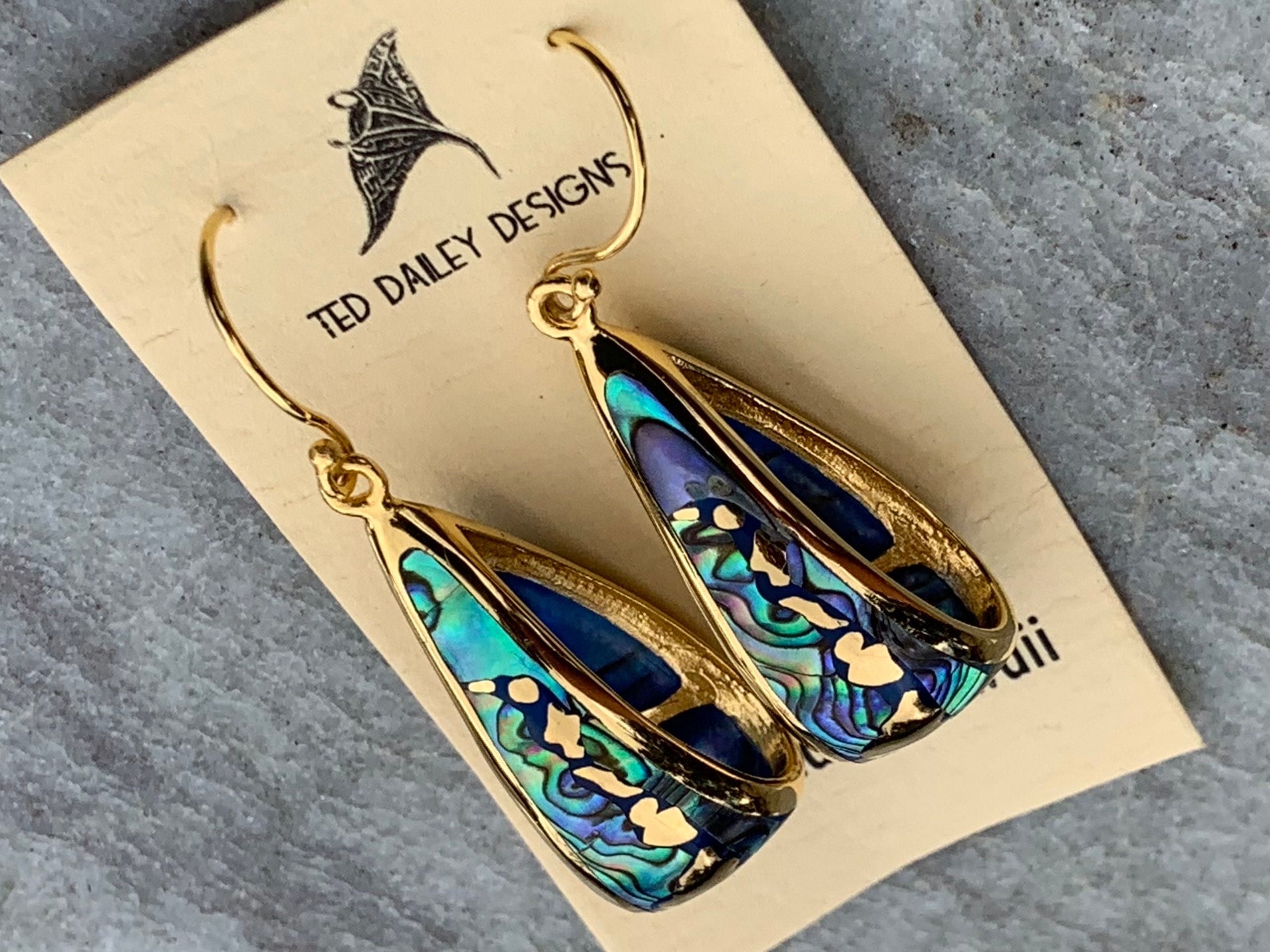 Hawaiian islands hoop earrings. Oahu, Maui, Kauai and Big Island. 18K Gold Vermeil. Abalone Shell.