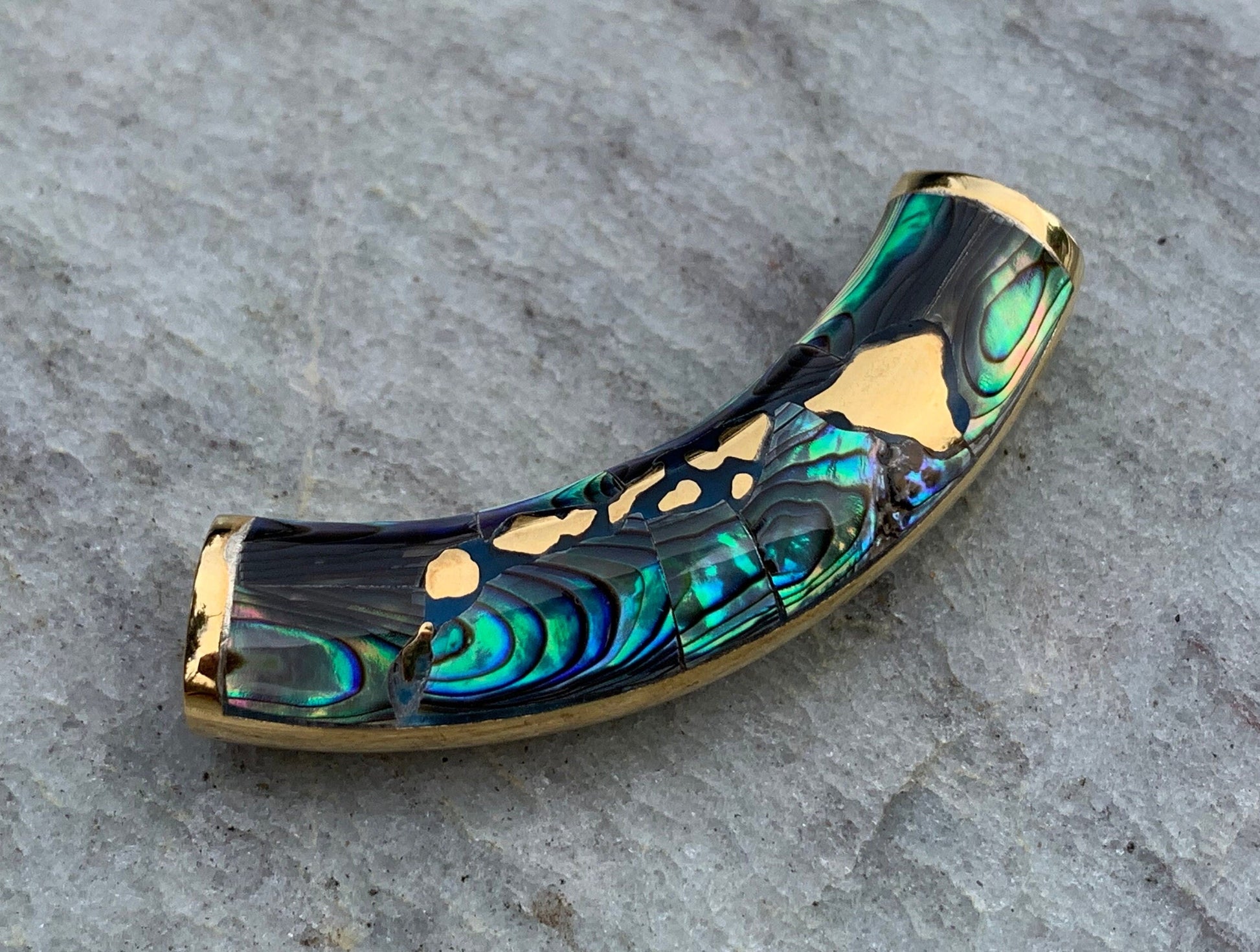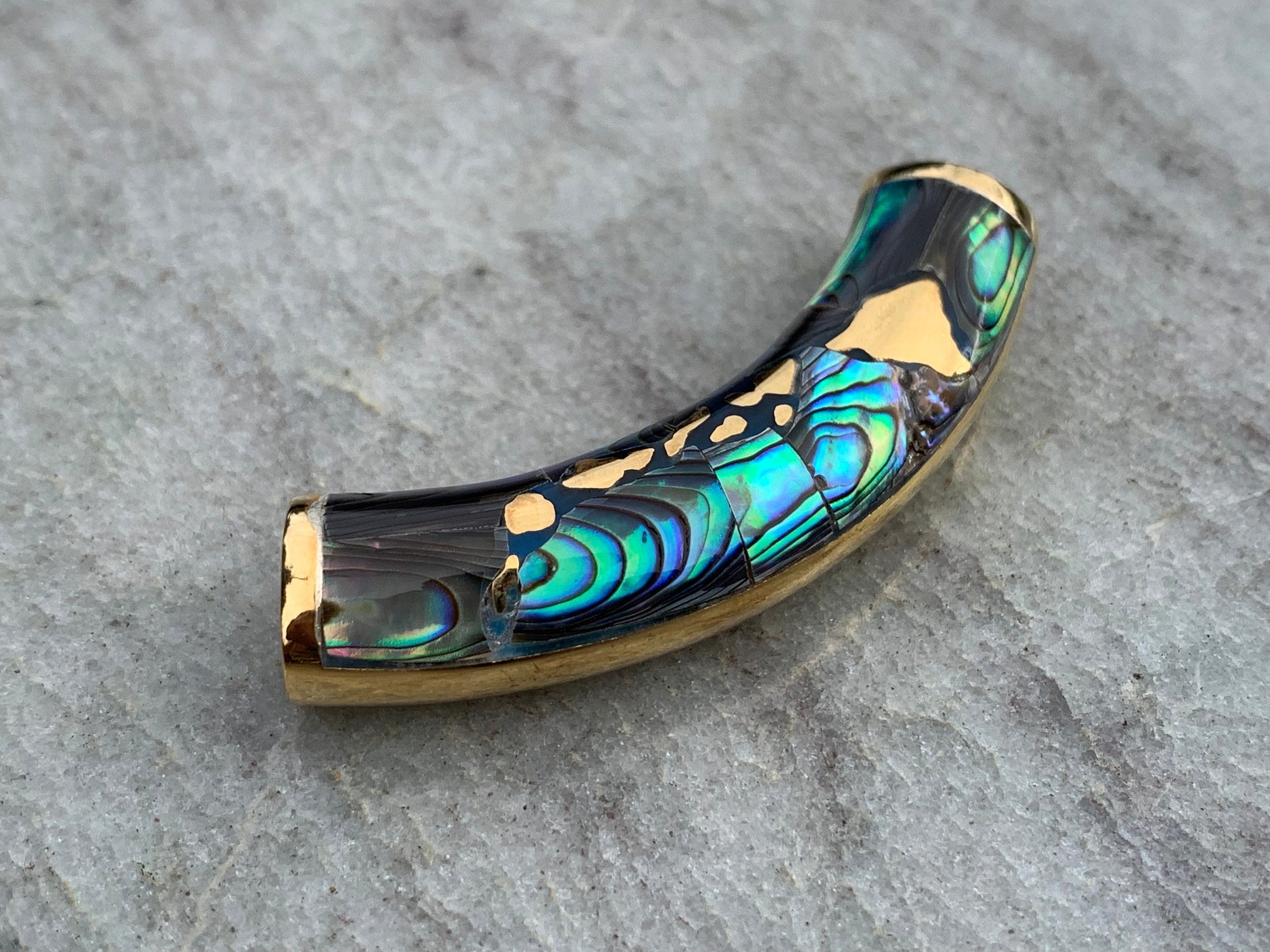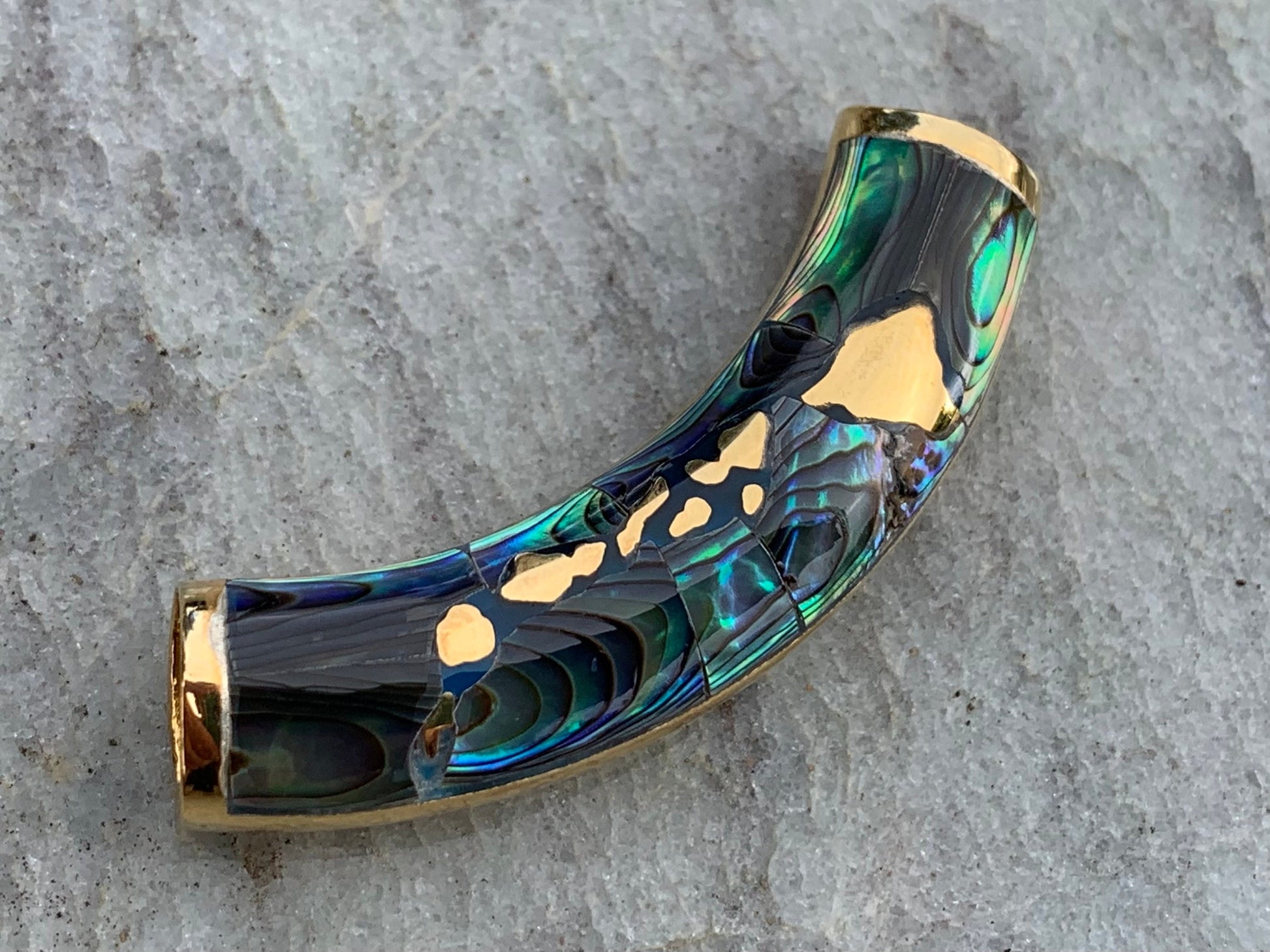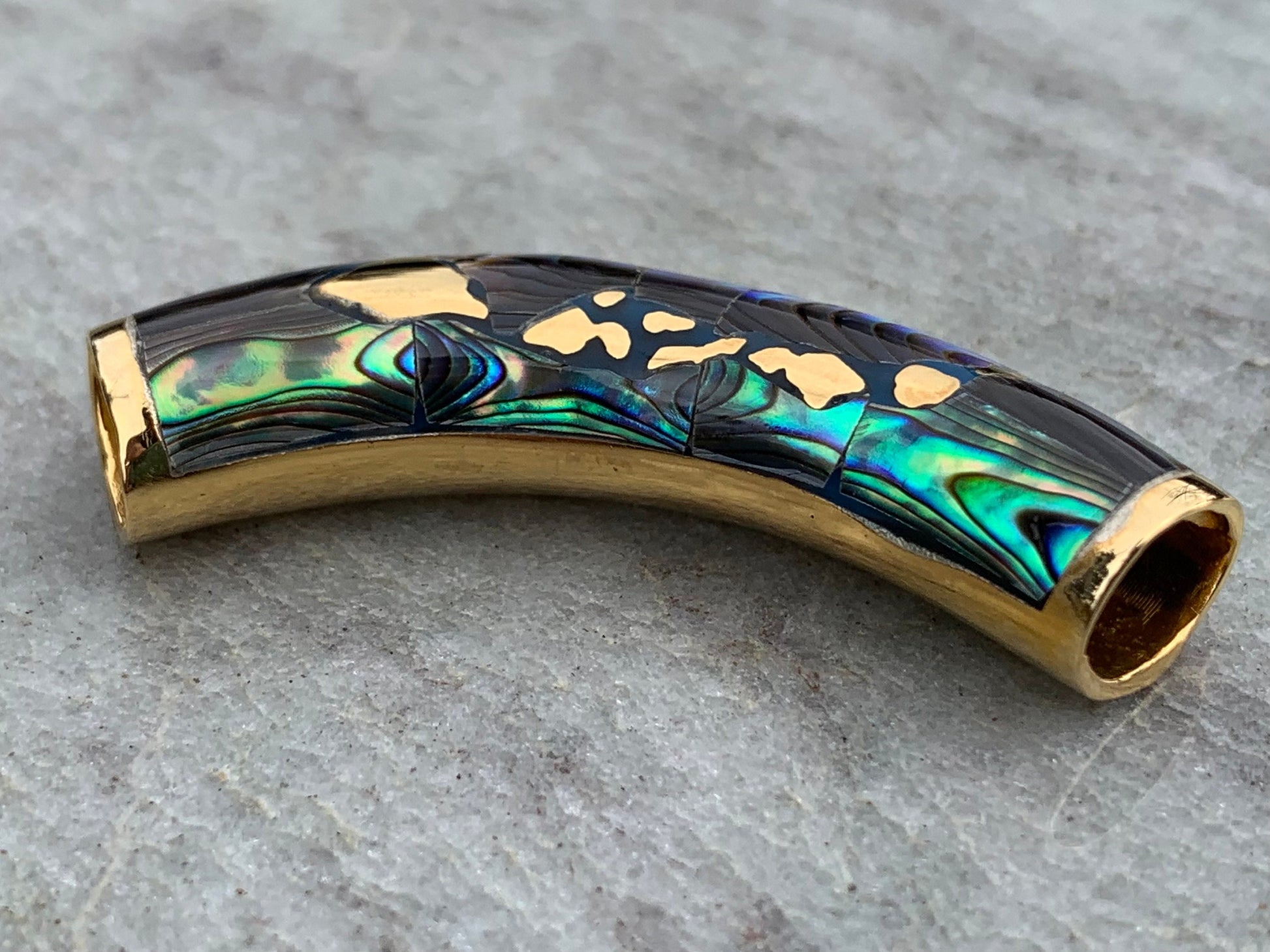Hawaiian Islands Slider Bar Pendant Necklace. Oahu, Maui, Kauai, Big Island. Gold Vermeil, Abalone Shell.