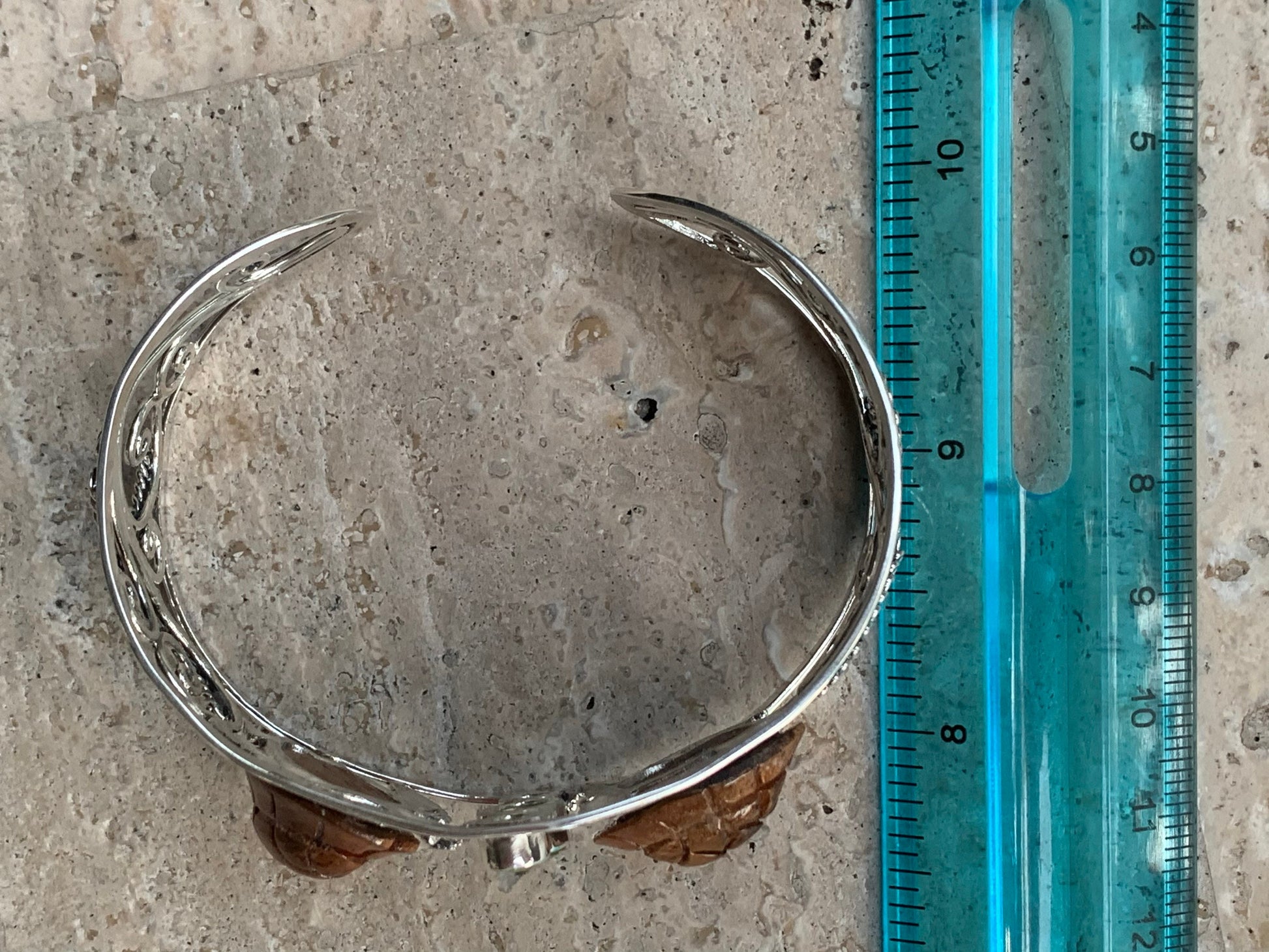 Hawaiian Koa Wood and Peridot Double Turtles Bracelet Cuff. Sterling Silver.