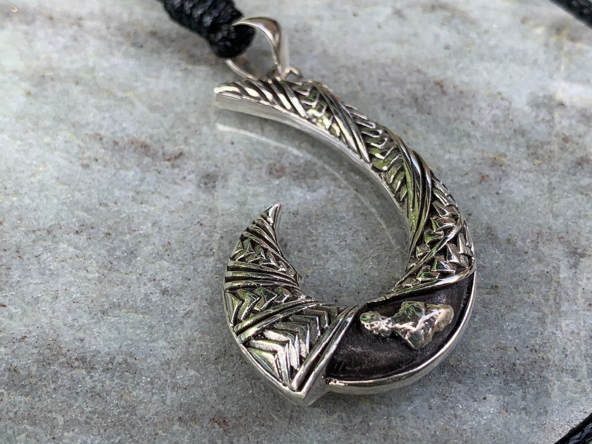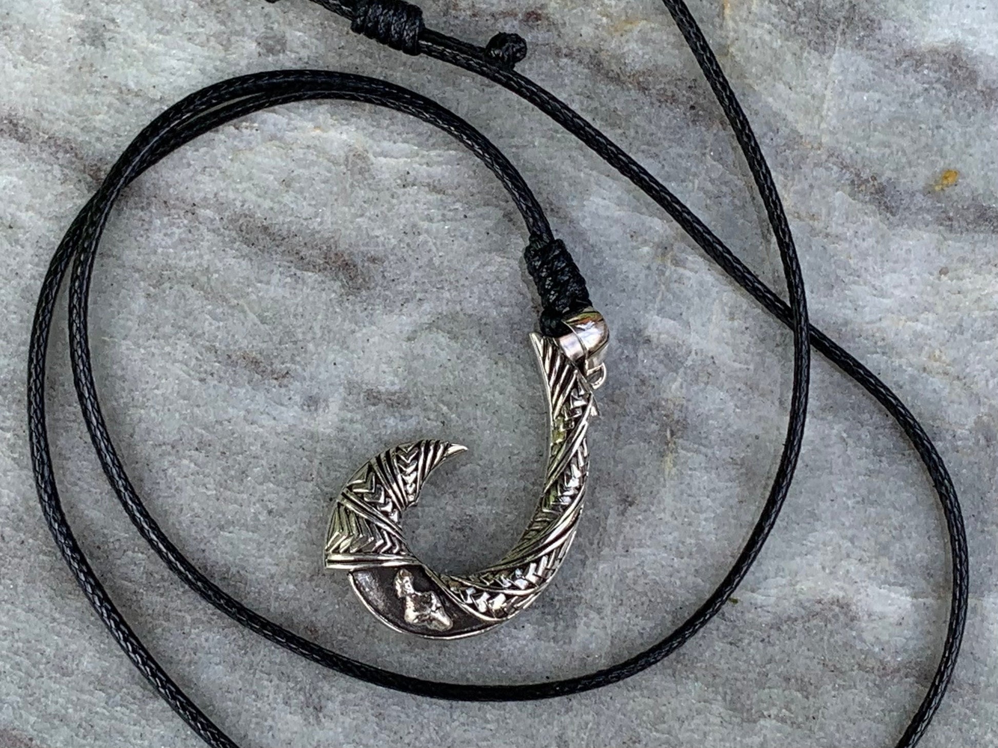 Hawaiian Maui Island Fishing Hook Tribal Necklace Pendant. Sterling Silver.
