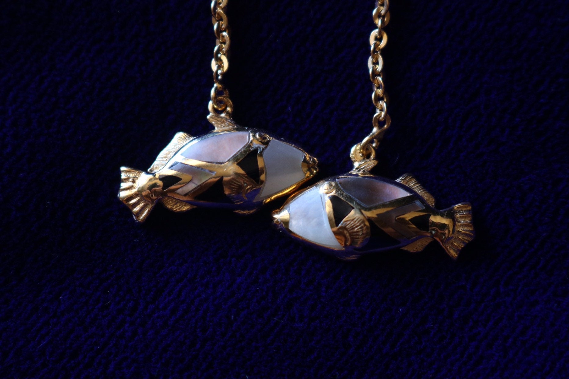 Humuhumunukunukuapua’a (Trigger Fish) Hawaiian State Fish Earrings. 18k Gold Vermeil, Silver, Mother of Pearl.
