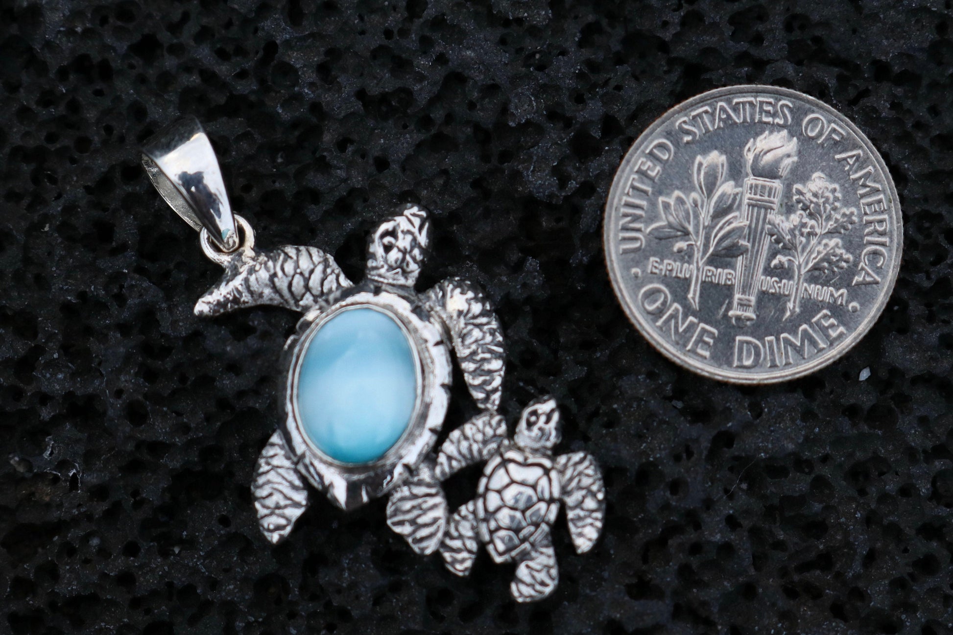 Larimar Turtle and Baby Necklace Pendant Jewelry. Sterling Silver.