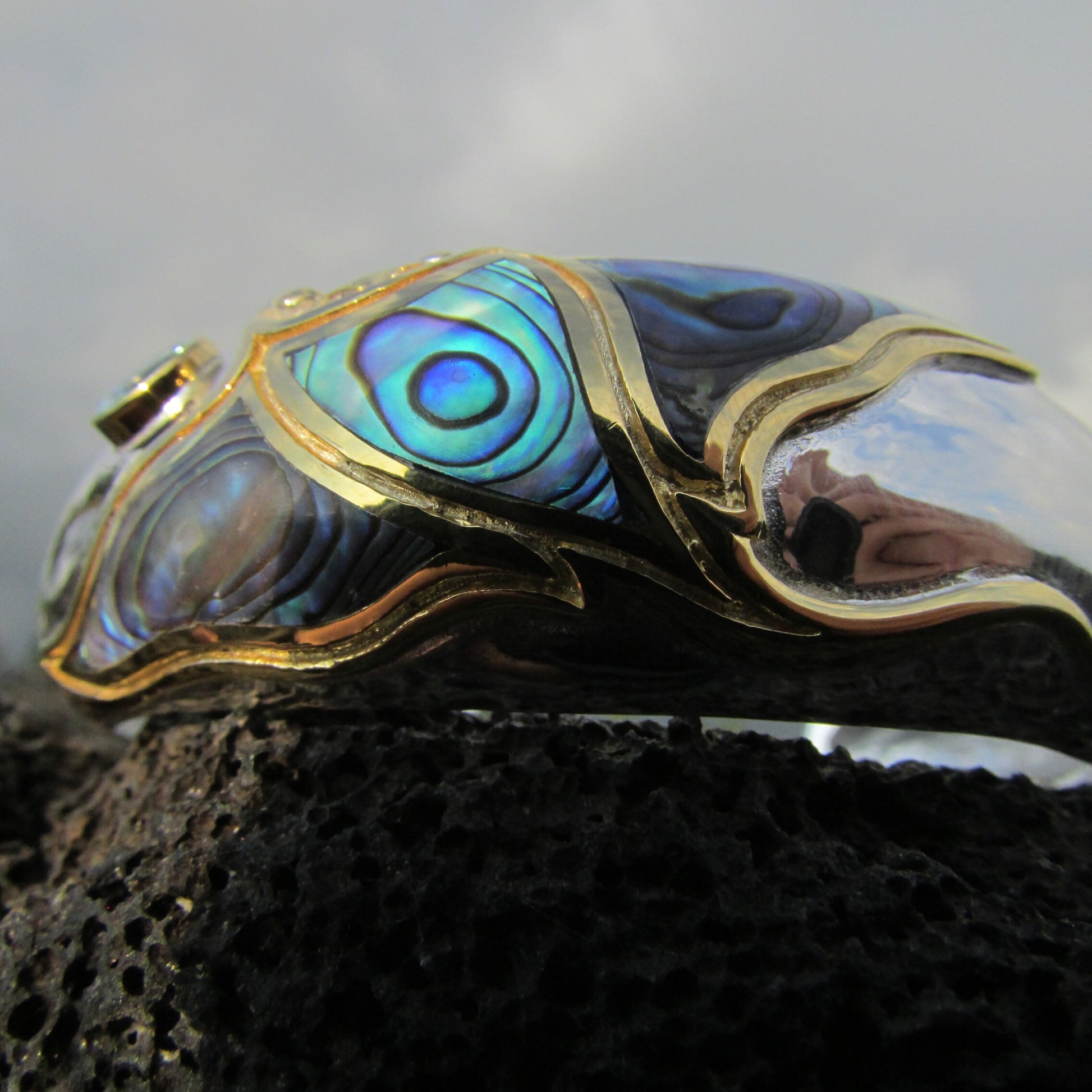 Pieces with Abalone (Paua) Shells have unique patterns and colors. Every single one is unique. Colors may vary with different shades of blue, green and purple.