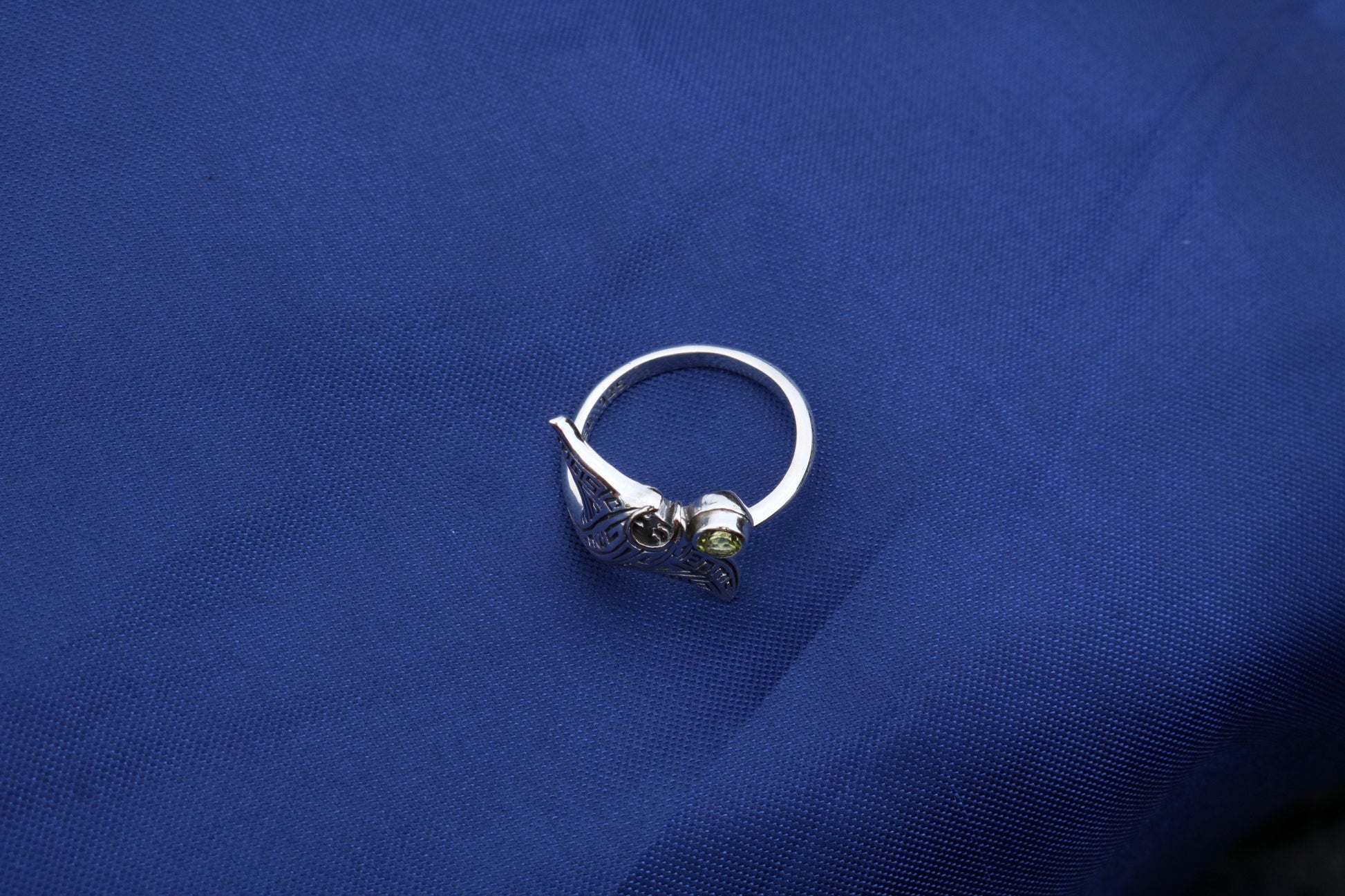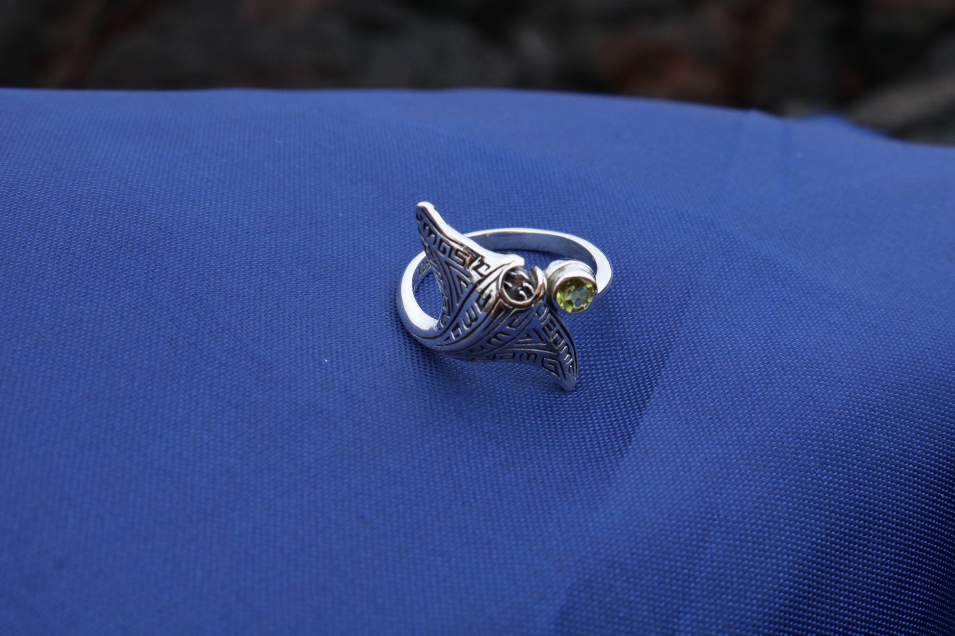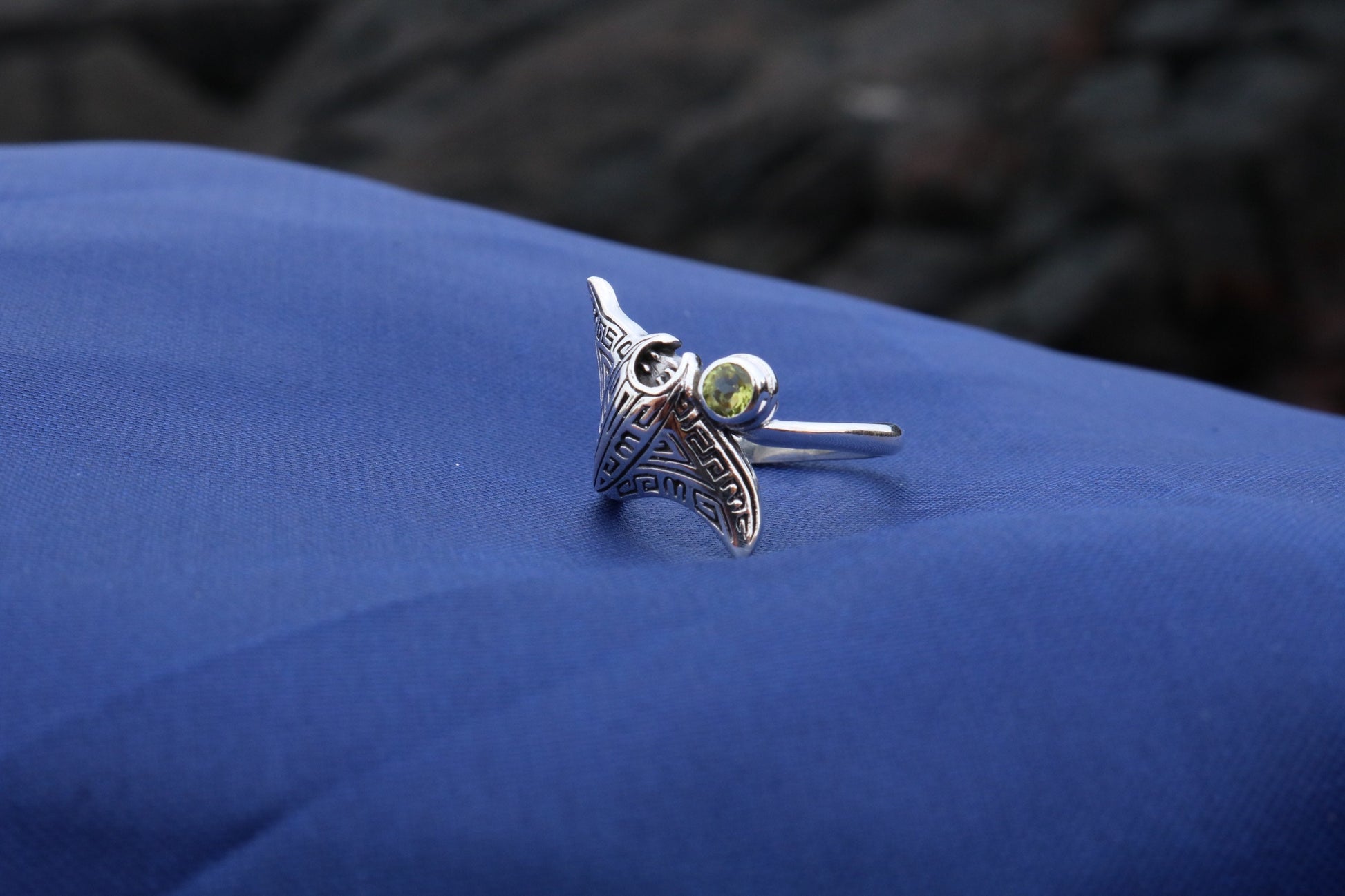 Manta Ray Ring Tribal Polynesian Tattoo Design Hahalua. Peridot. Sterling Silver.