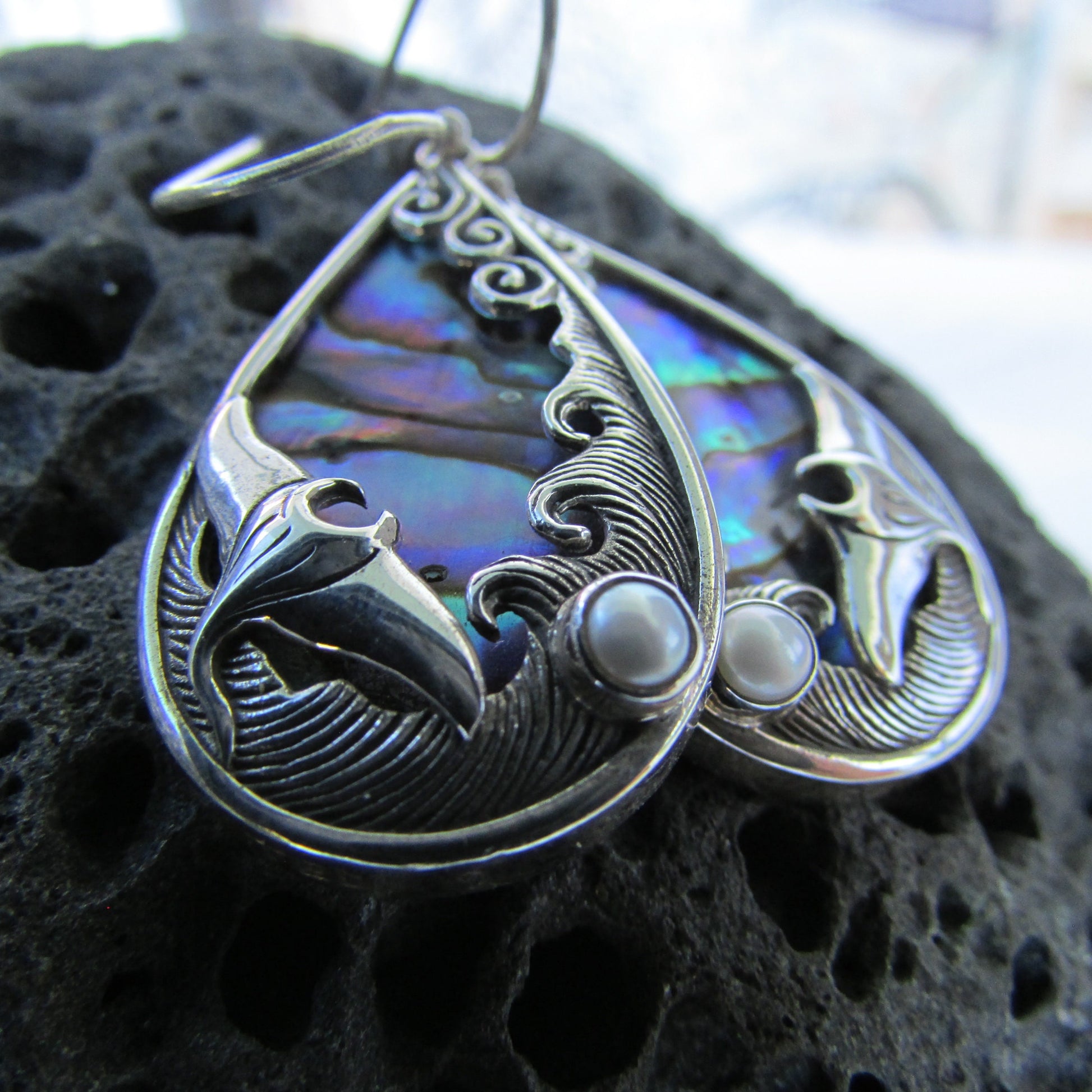Manta Ray Wave Earrings | Abalone Paua Shell | Pearl | Sterling Silver | Ocean | Beach | Gift | Jewelry | Handmade | Unique