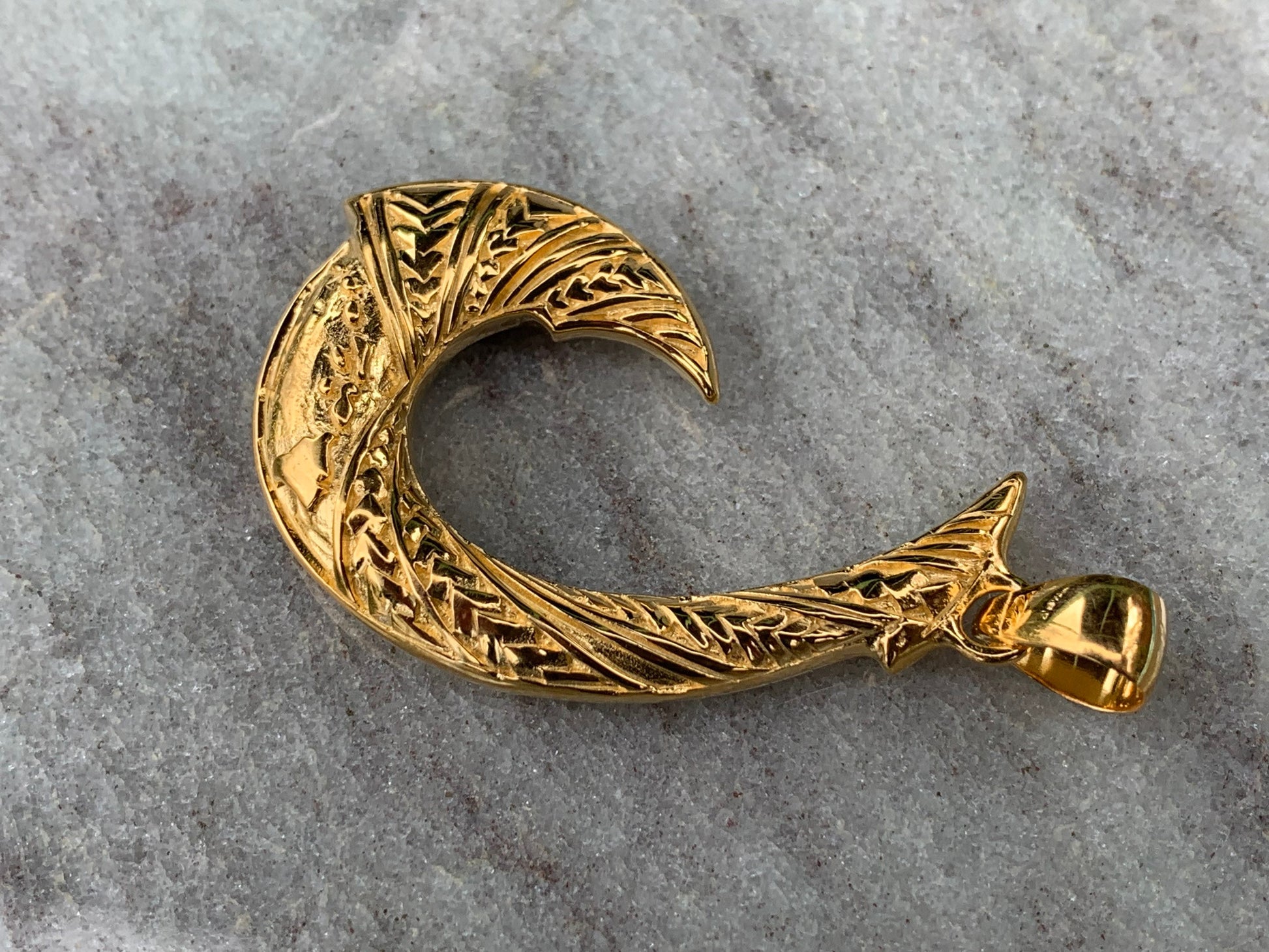 Maui Hook Hawaiian Islands Chain - Kauai Oahu Maui Big Island Tribal Design Necklace Pendant. 18k Gold Vermeil