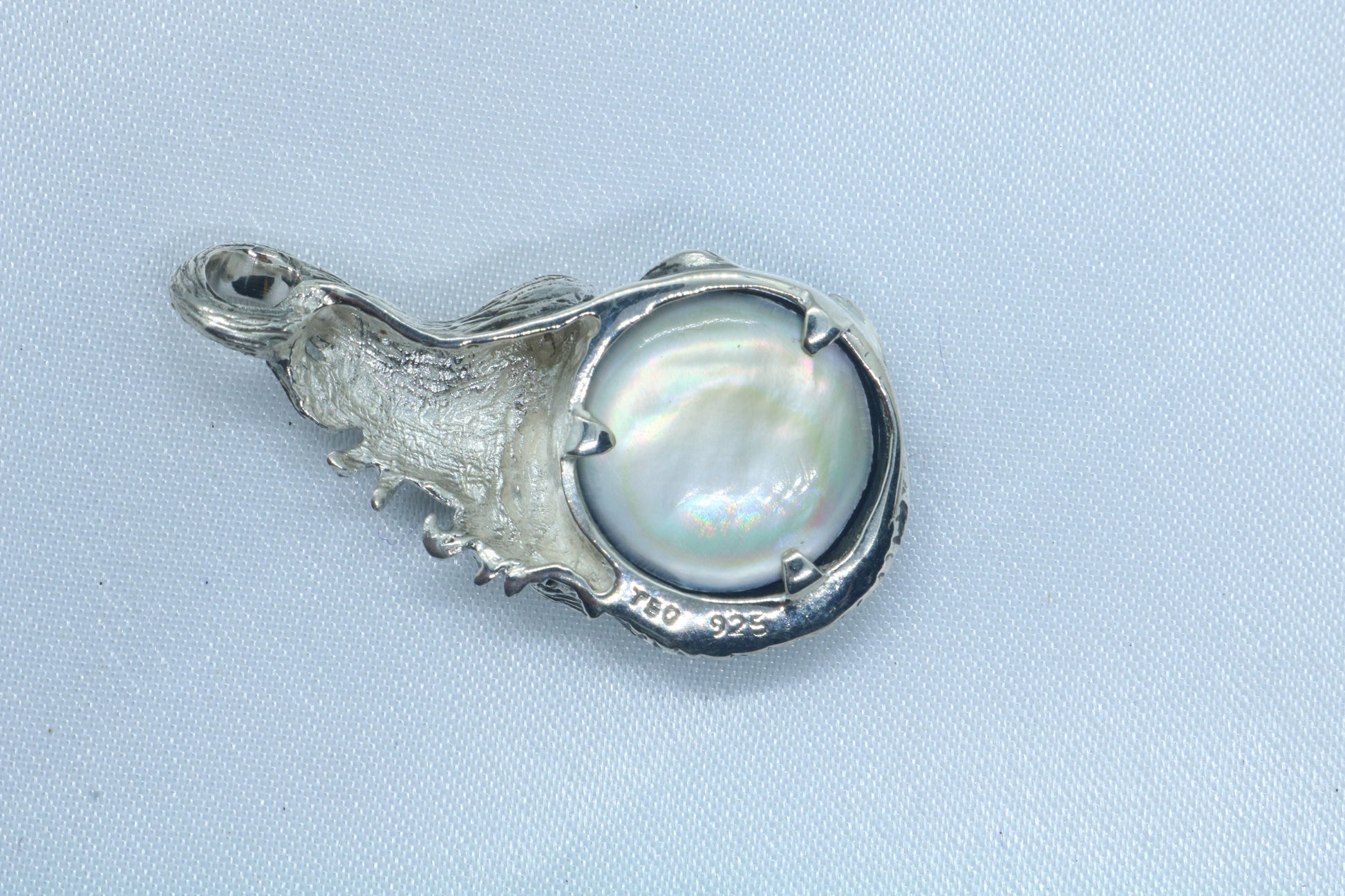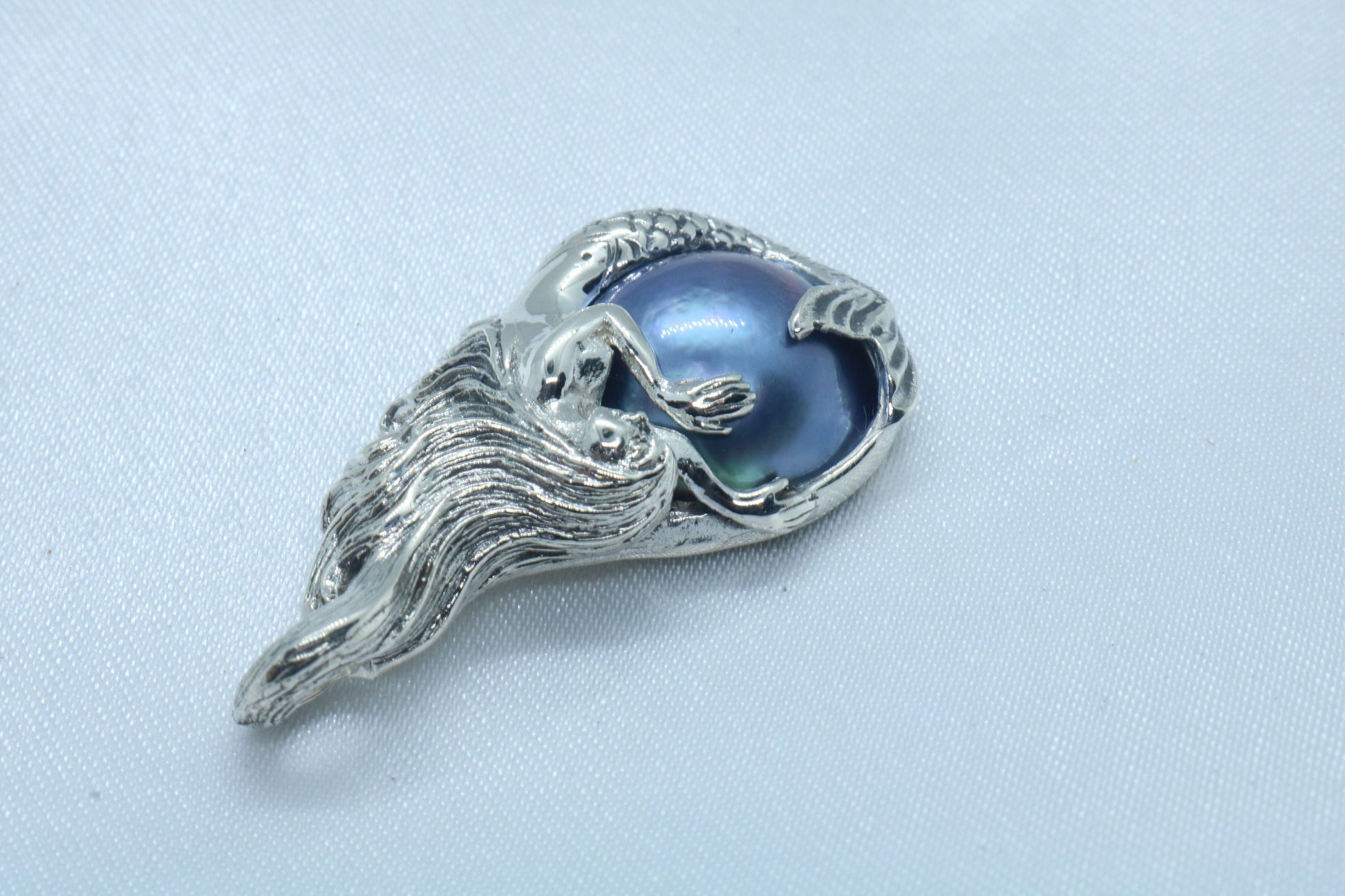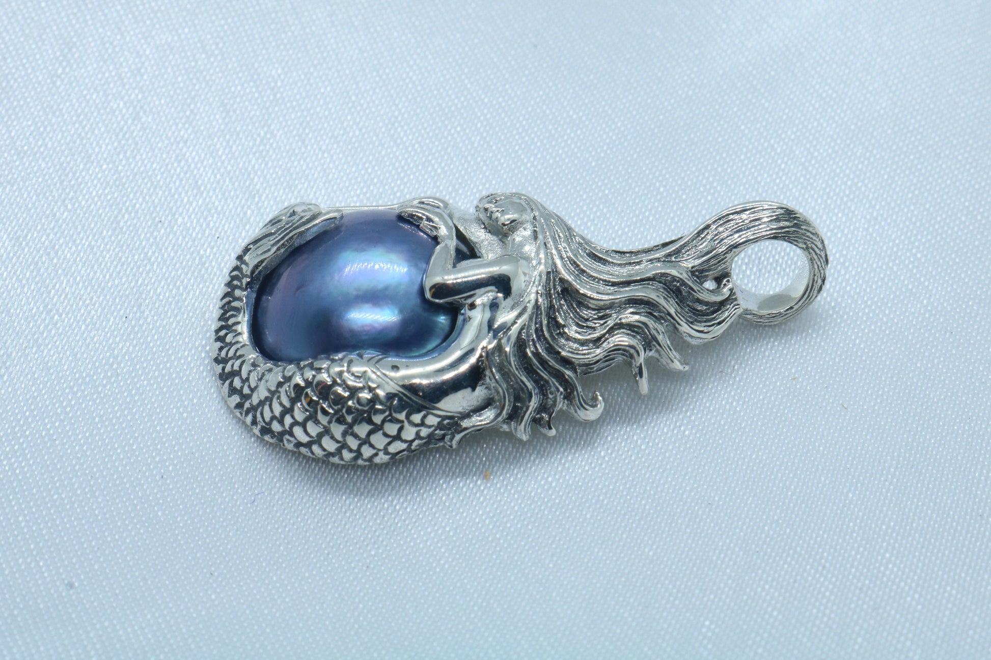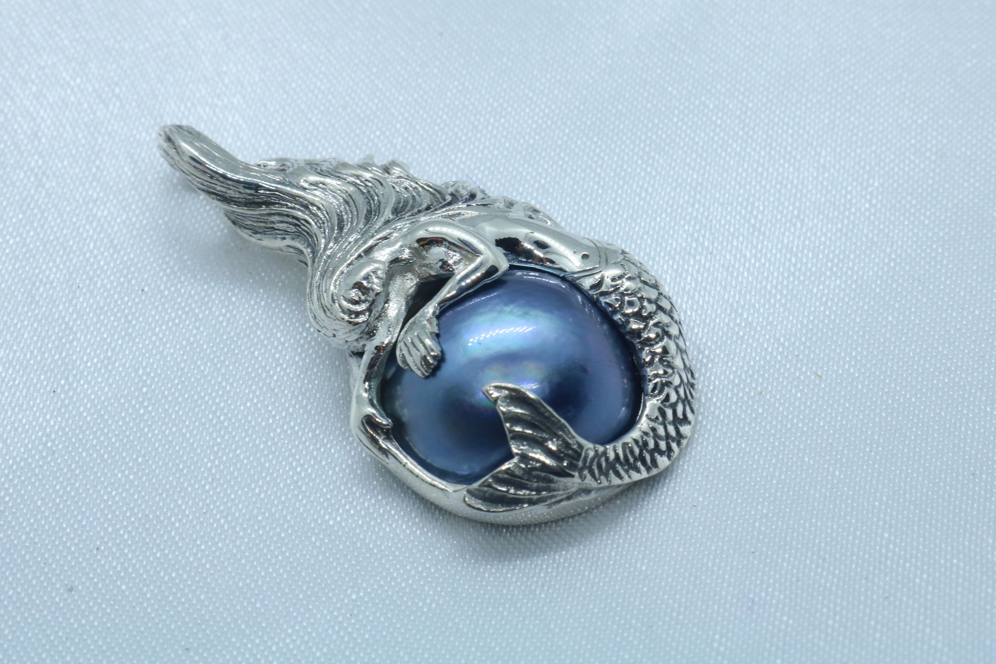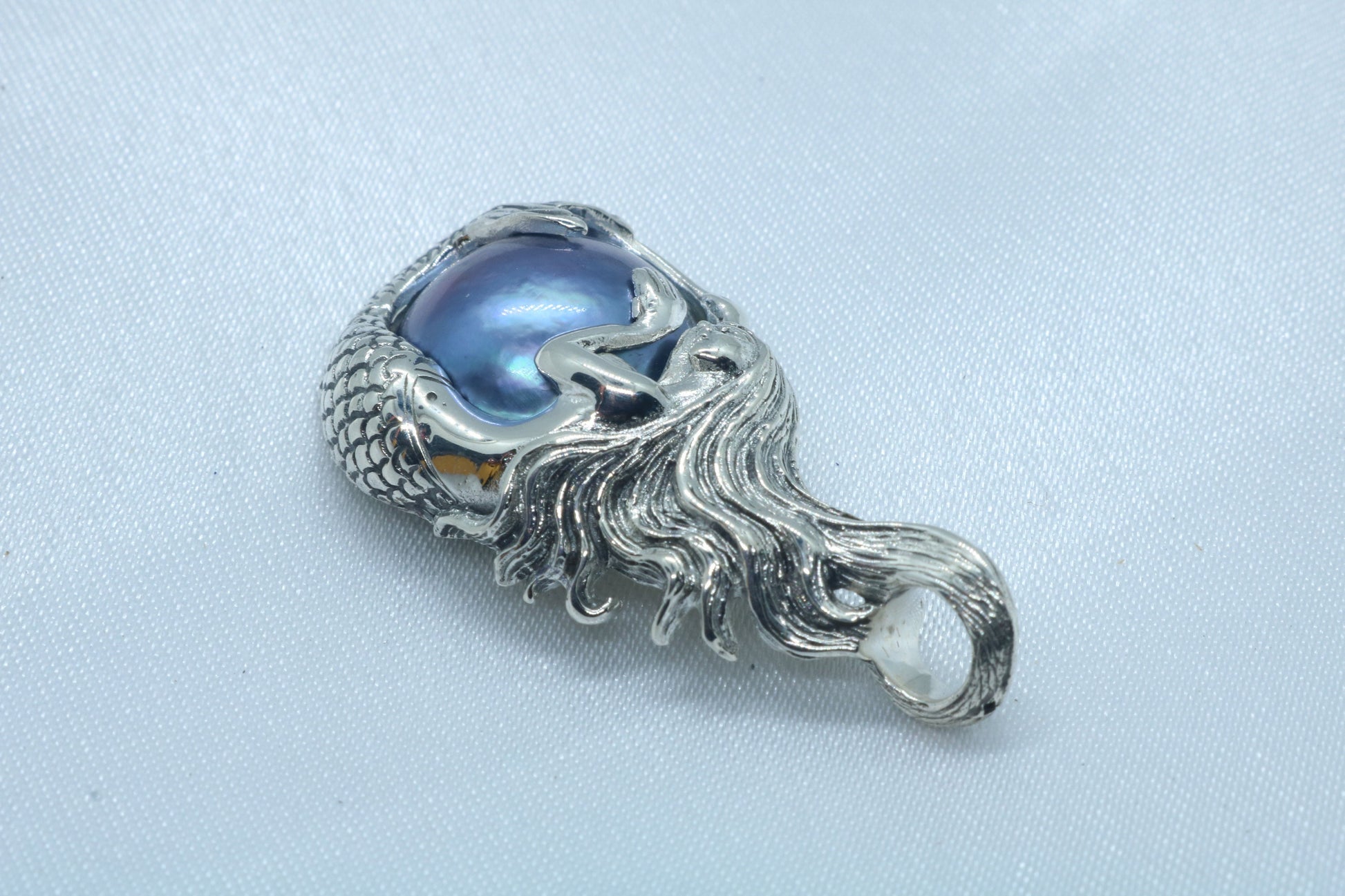 Mermaid Blue Mabe Pearl Silver Pendant Necklace