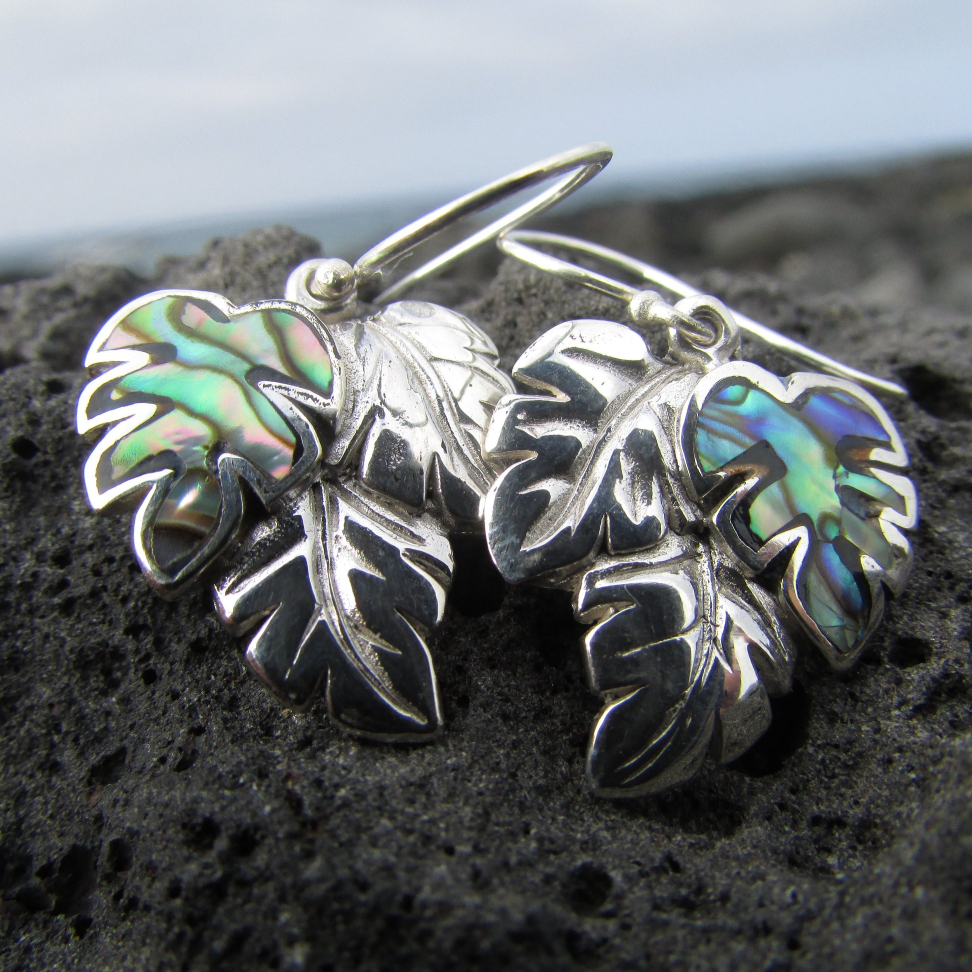 Monstera Leaf Earrings | Paua Shell | Sterling Silver | Ocean | Beach | Gift | Jewelry | Handmade | Unique