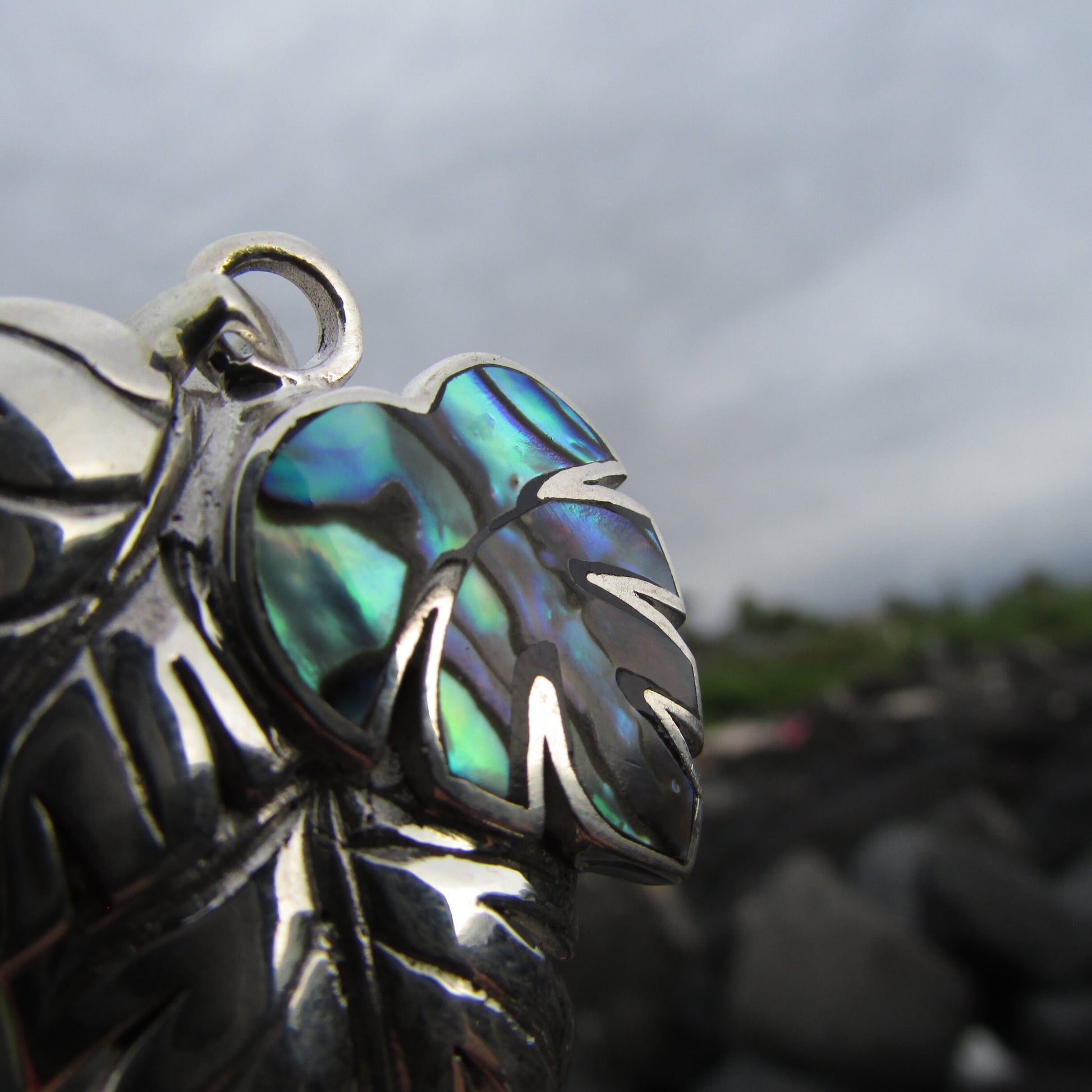 Monstera Leaf Flower Pendant Necklace | Paua Abalone Shell | Sterling Silver | Gift | Jewelry | Handmade | Unique