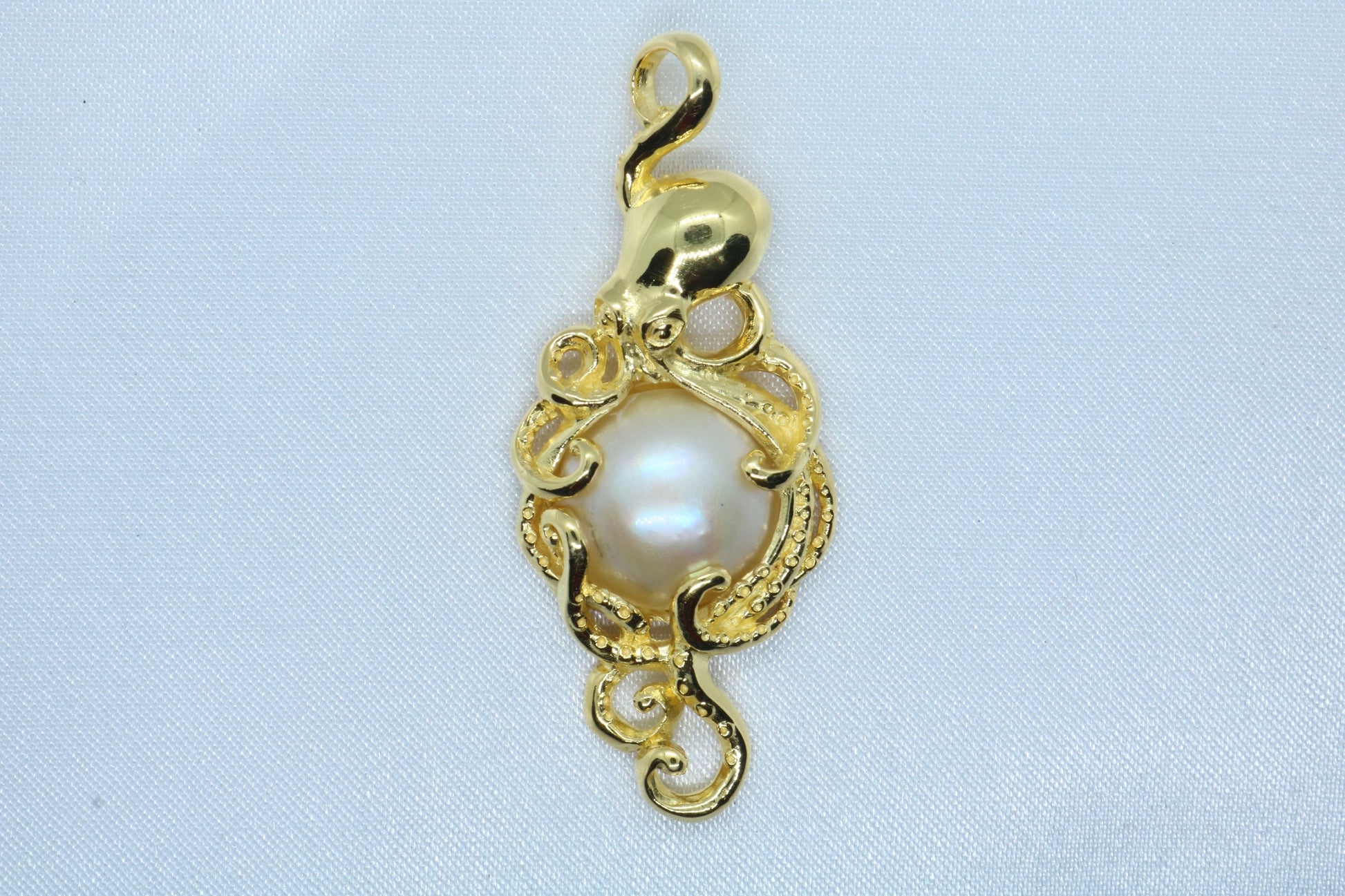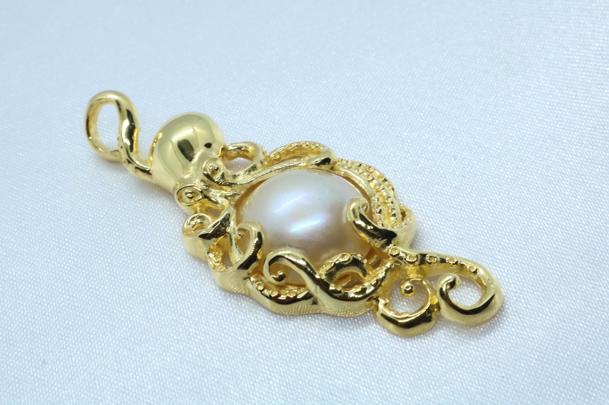 Octopus Hawaiian He’e 18k Gold Vermeil Mabe White Pearl Necklace Pendant