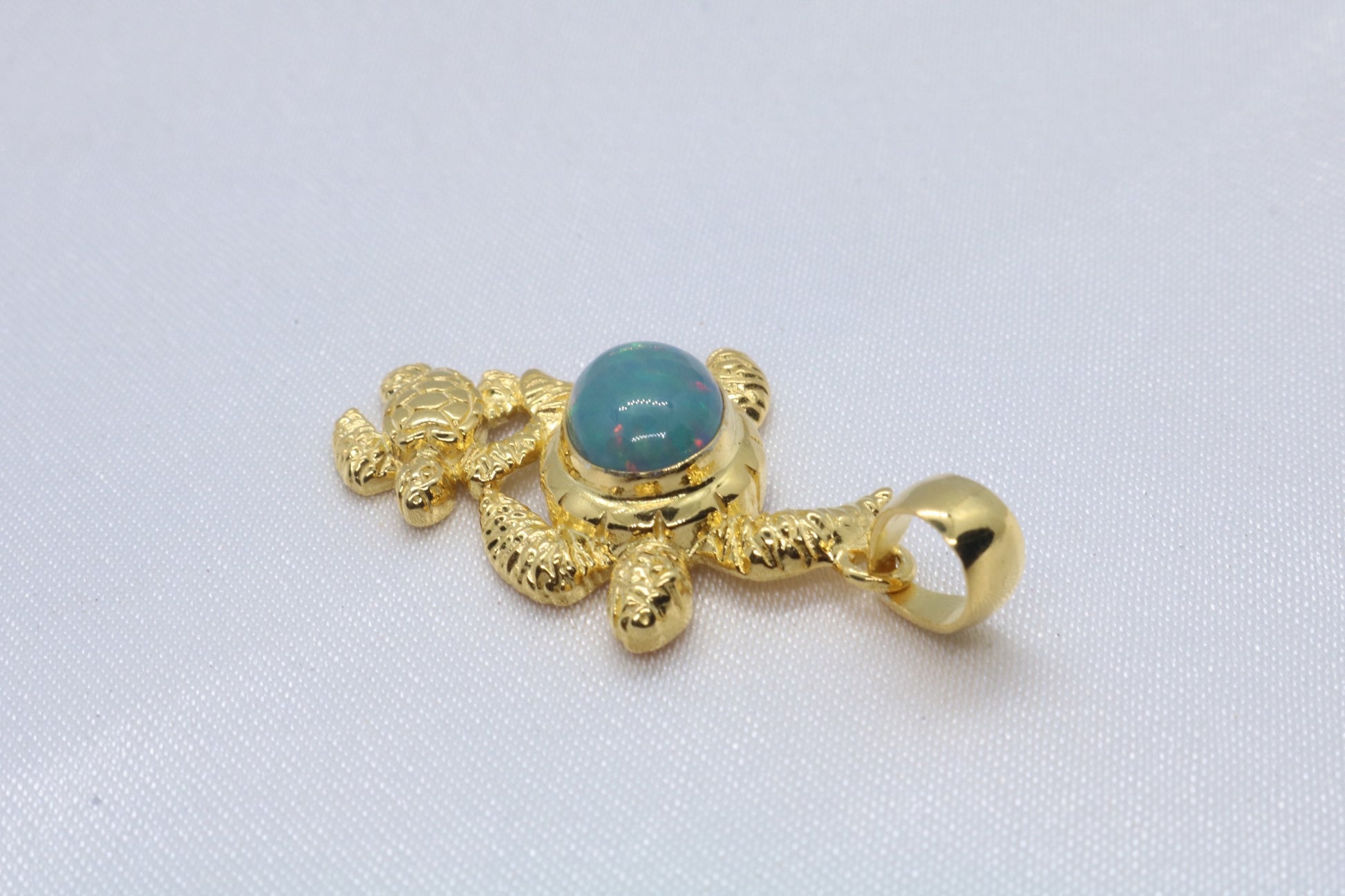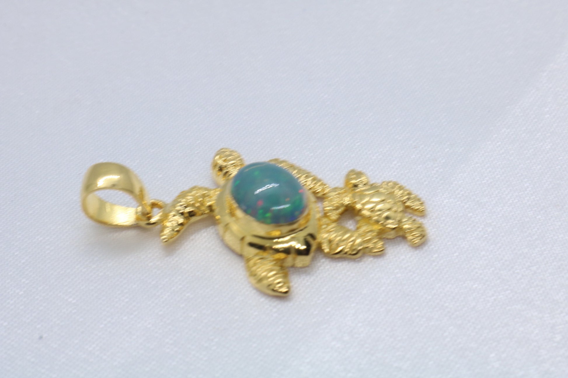 Opal Turtle Hawaiian Honu Mom and Baby 18k Gold Vermeil Necklace Pendant