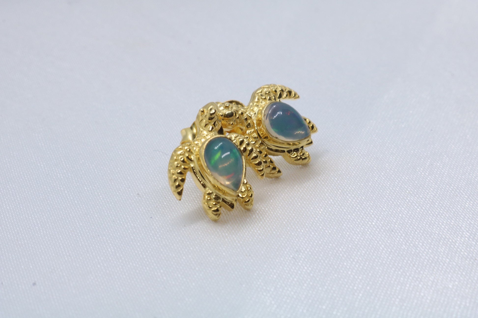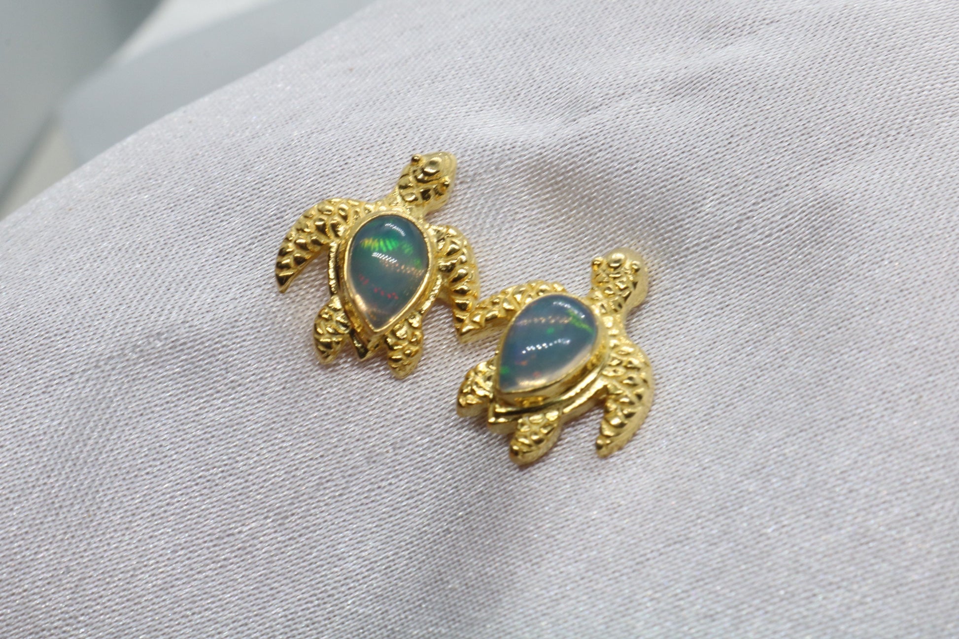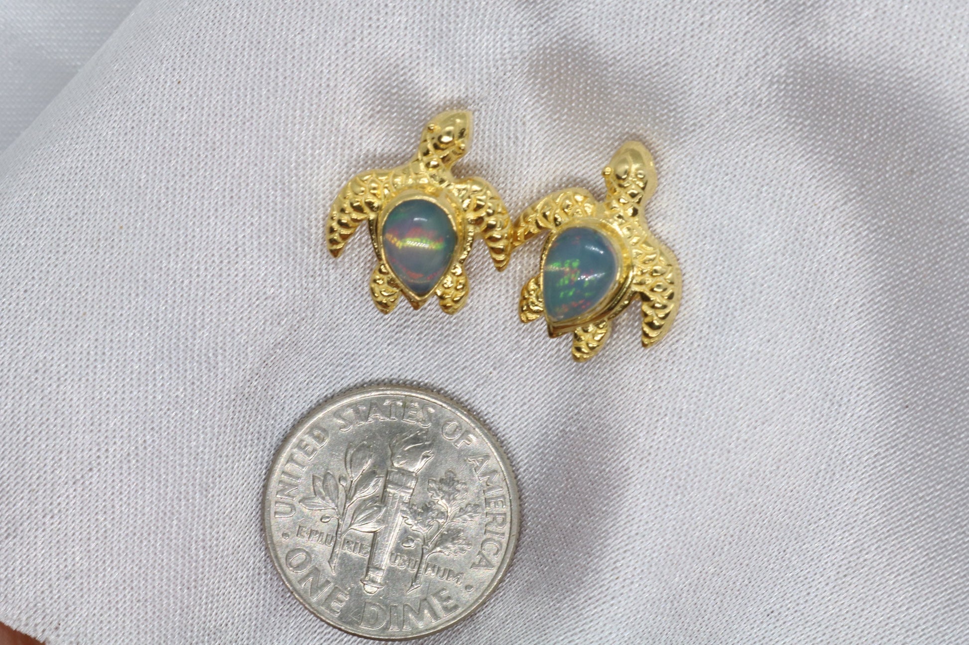 Opal Turtles Hawaiian Honu 18K Gold Vermeil Mother of Pearl Stud Earrings
