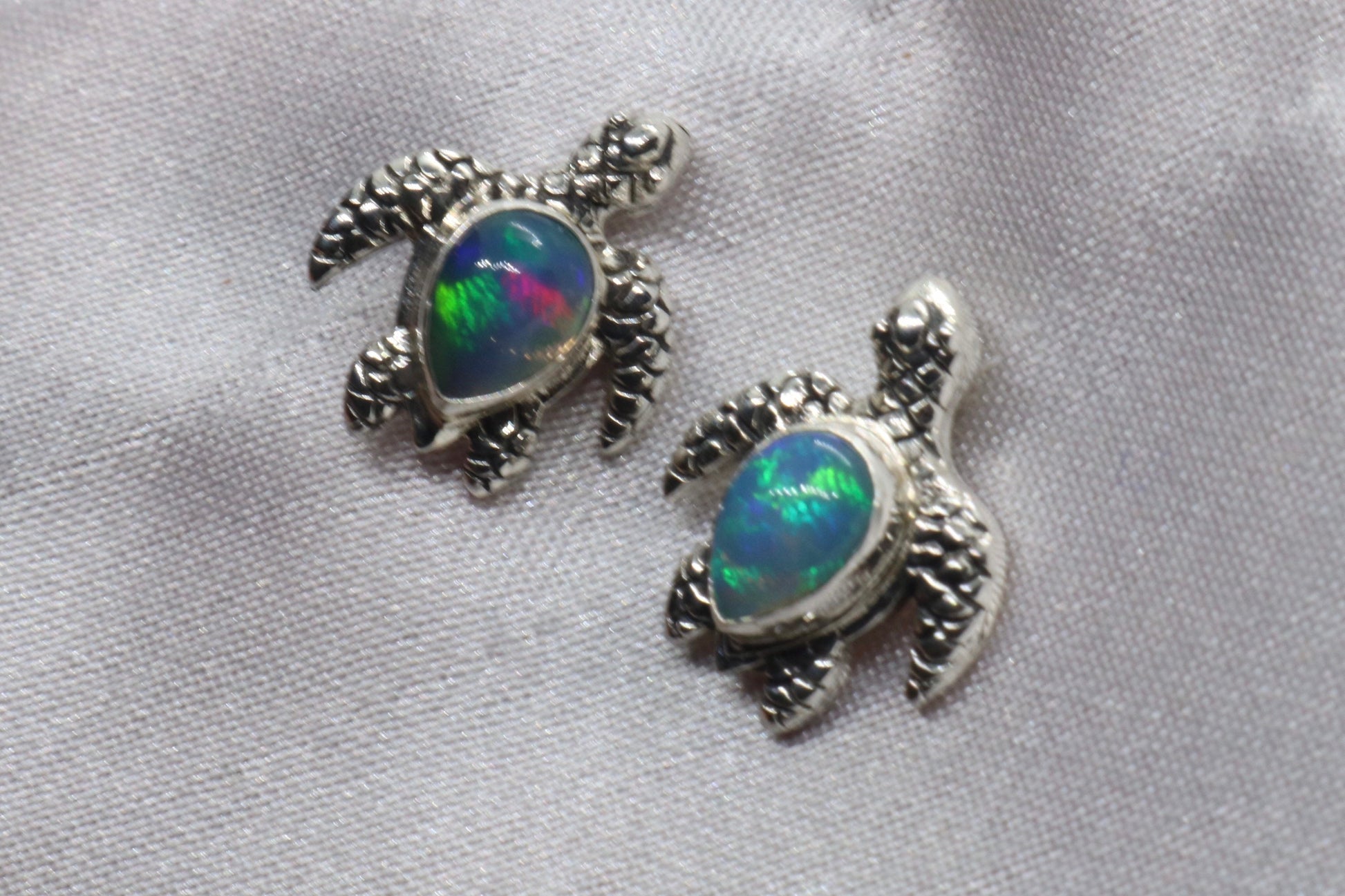 Opal Turtles Hawaiian Honu Silver Mother of Pearl Stud Earrings