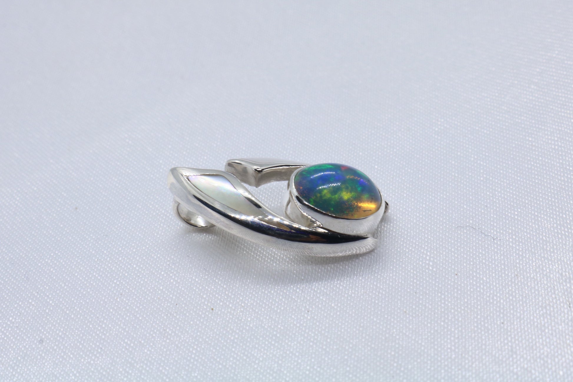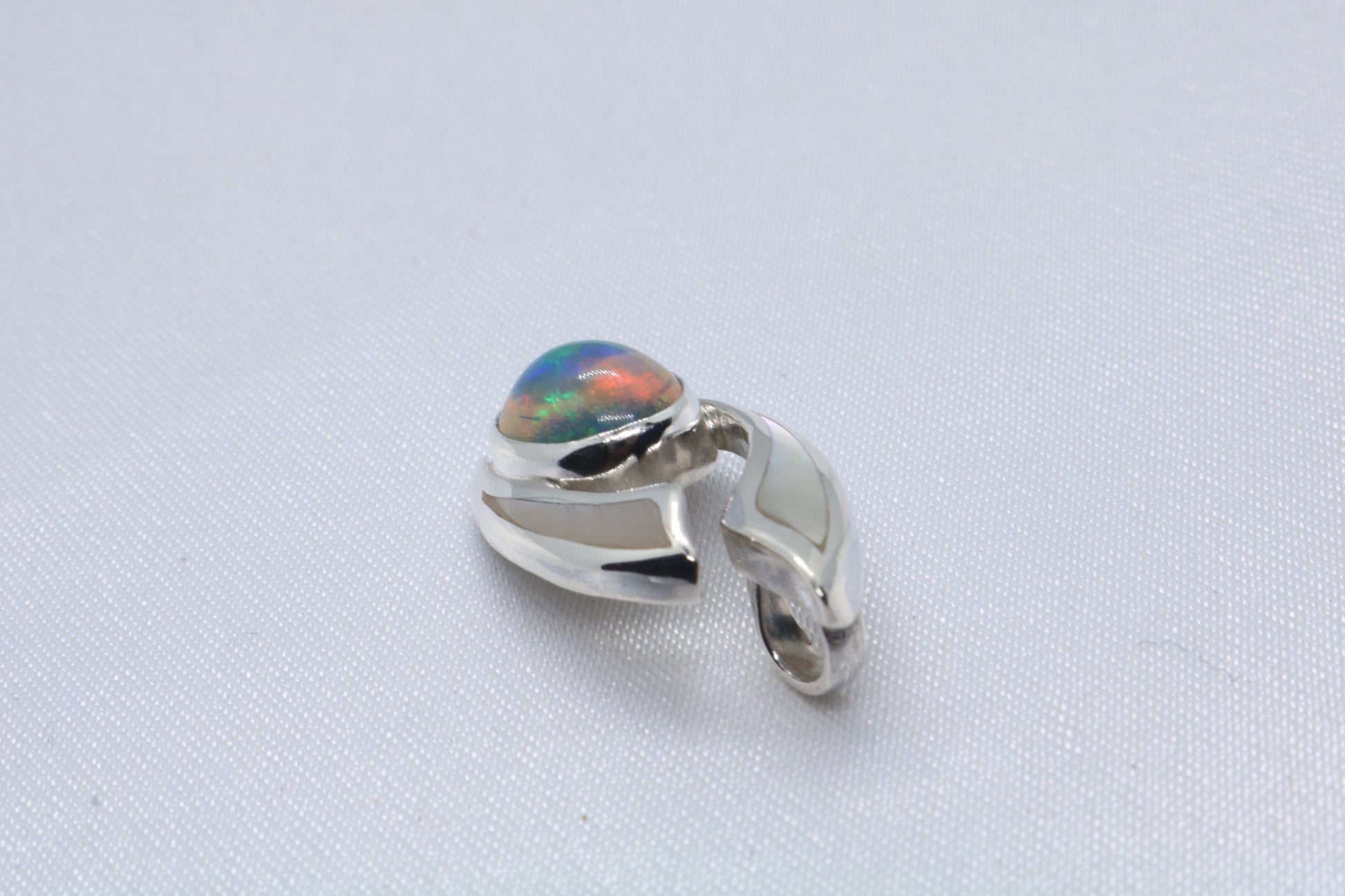 Opal Wave Hawaiian Nalu Silver Mother of Pearl Necklace Pendant