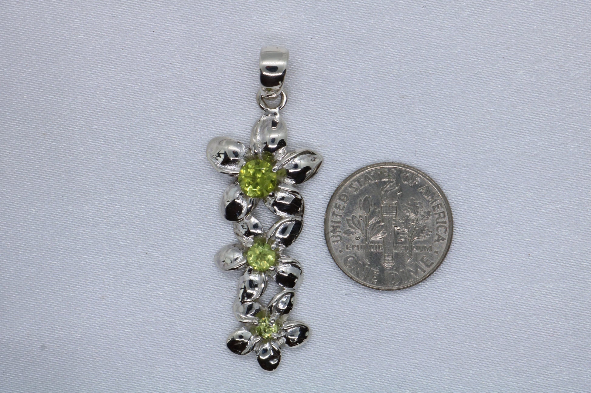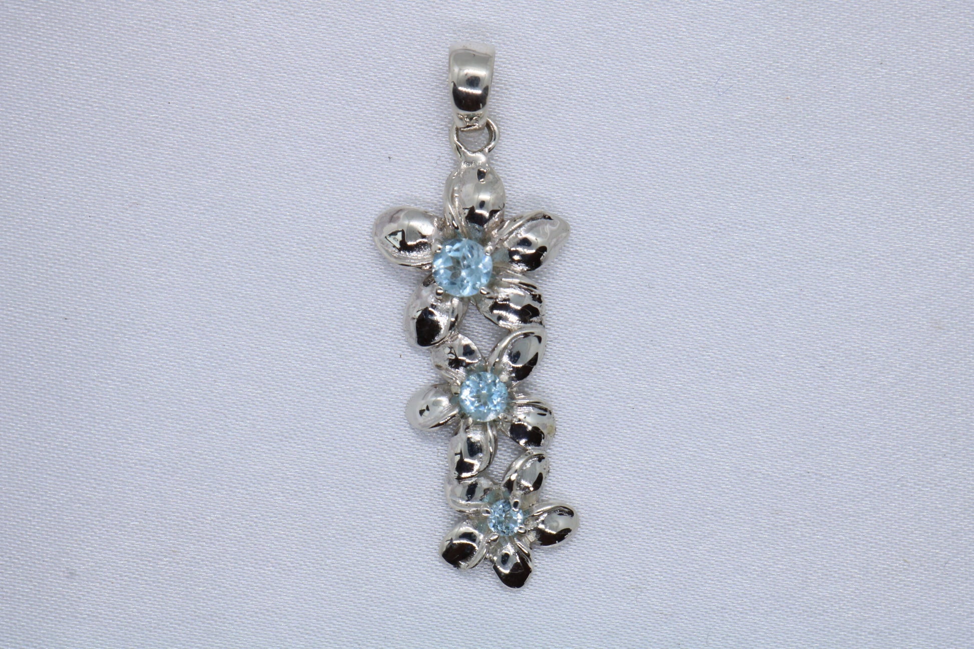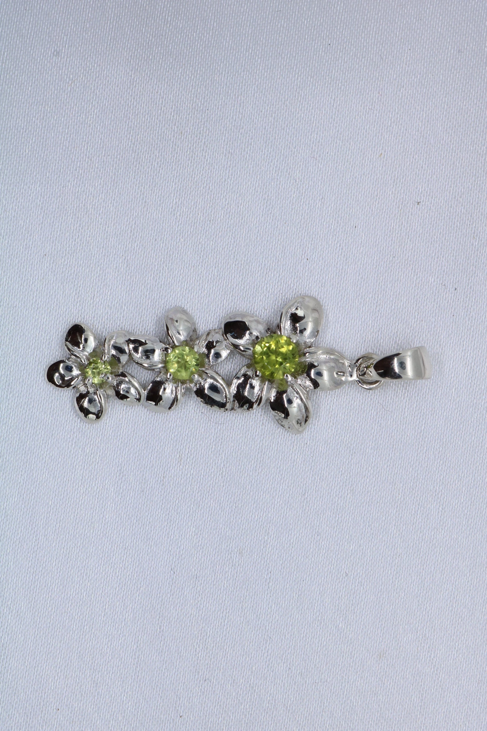 Plumeria triple flowers pendant. Silver, peridot, or blue topaz.