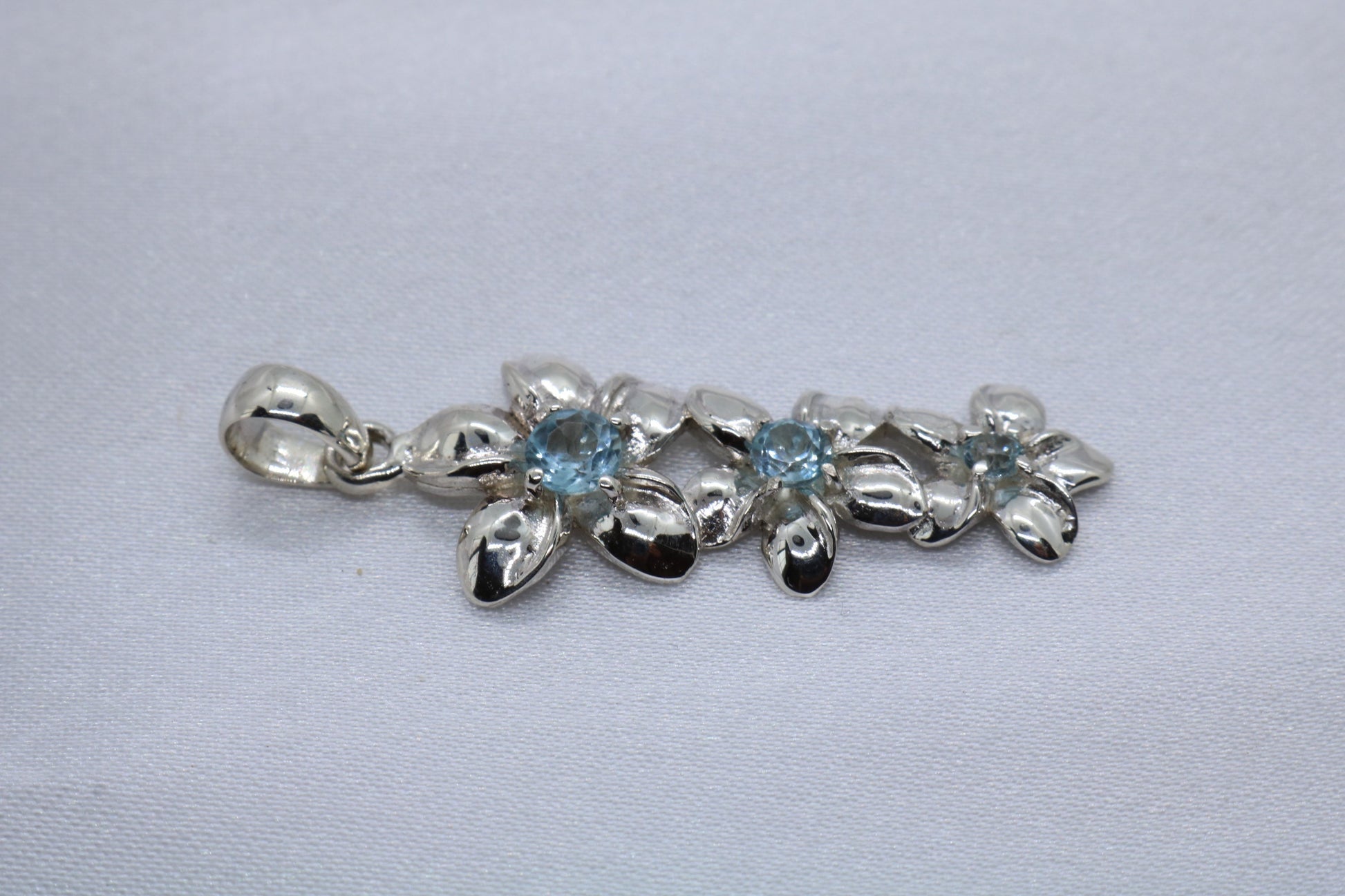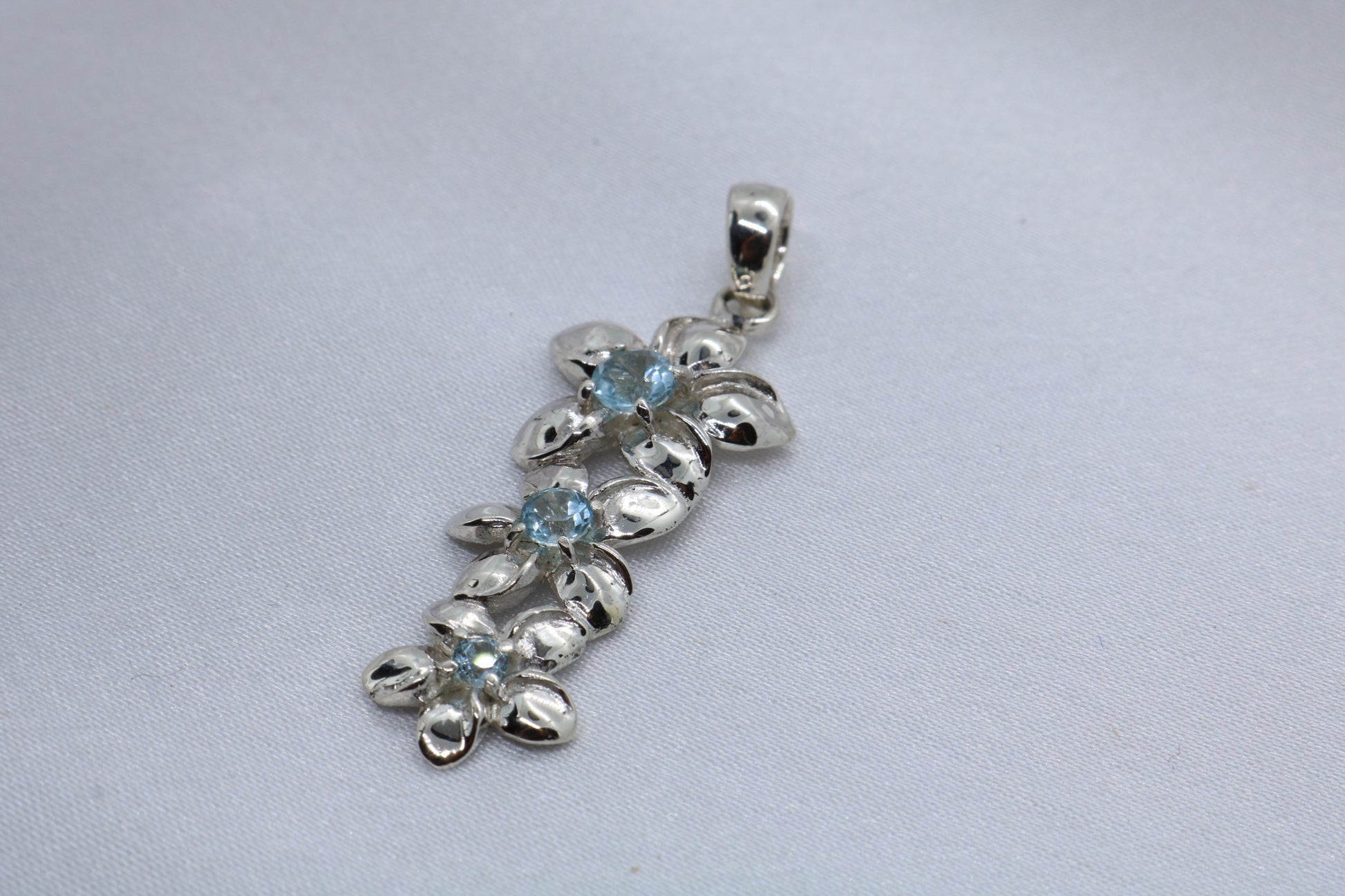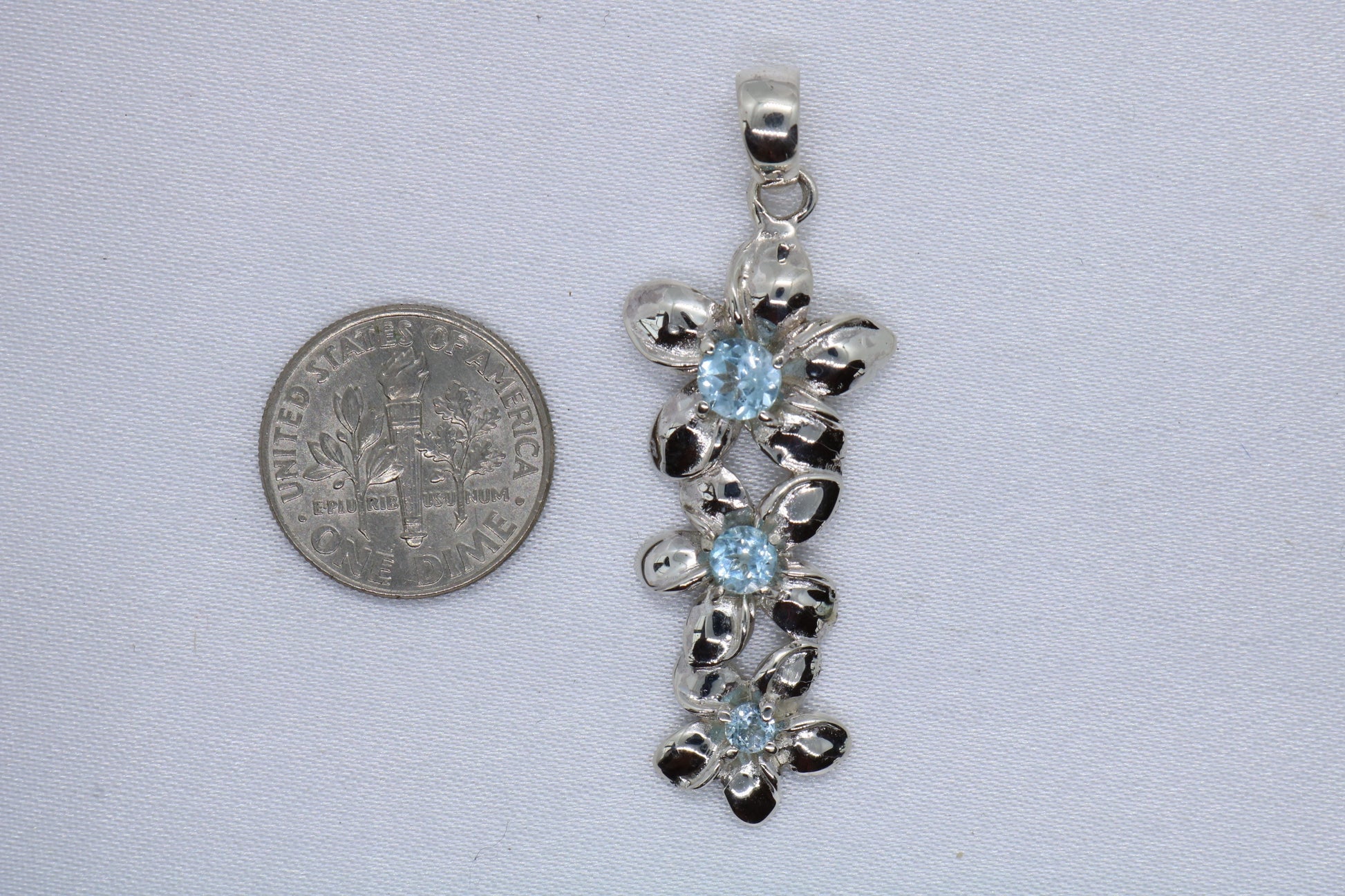Plumeria triple flowers pendant. Silver, peridot, or blue topaz.