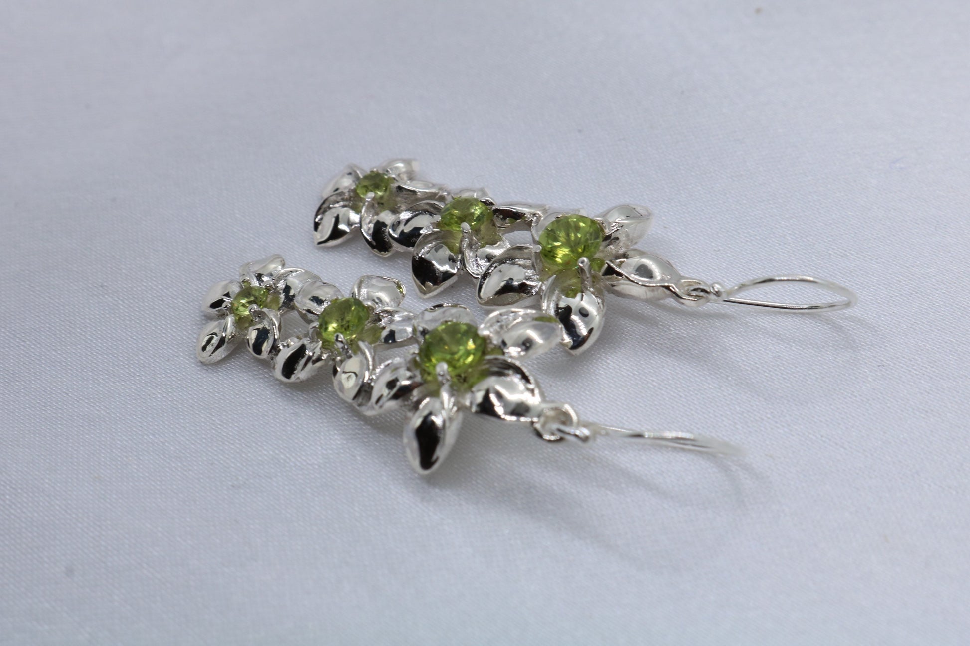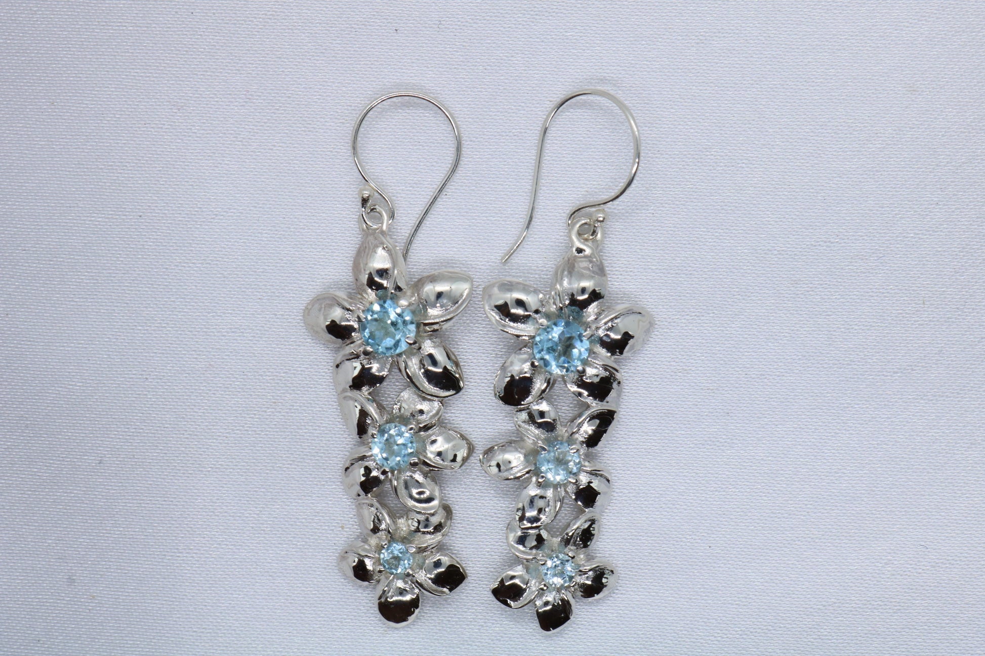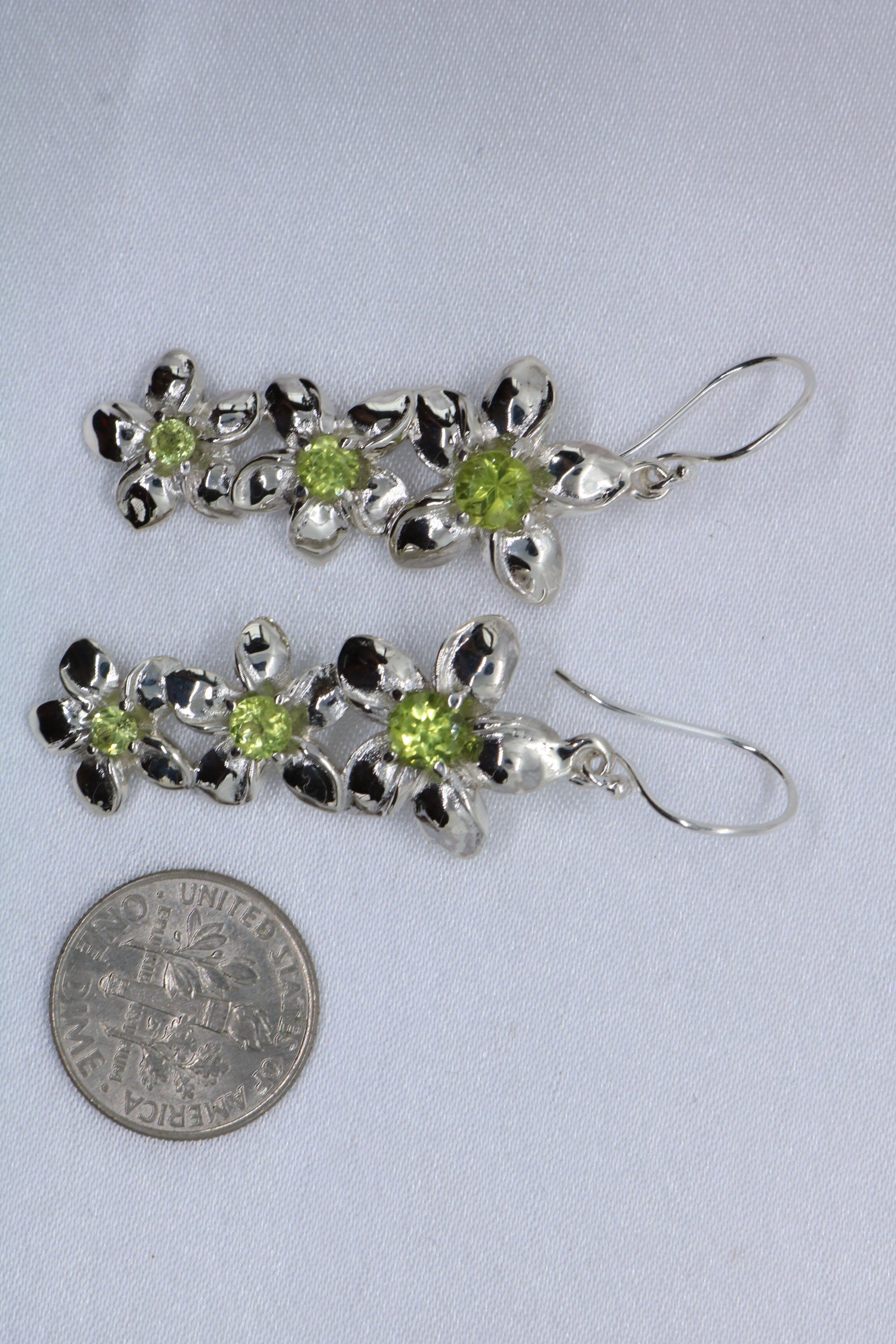 Plumeria triple flowers pendant. Silver, peridot, or blue topaz.