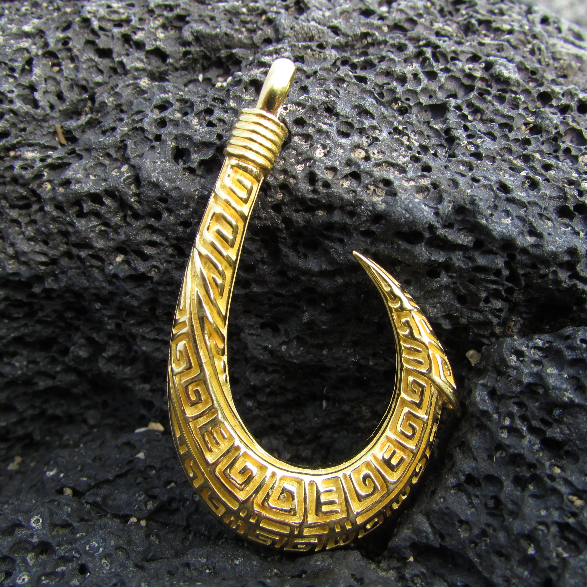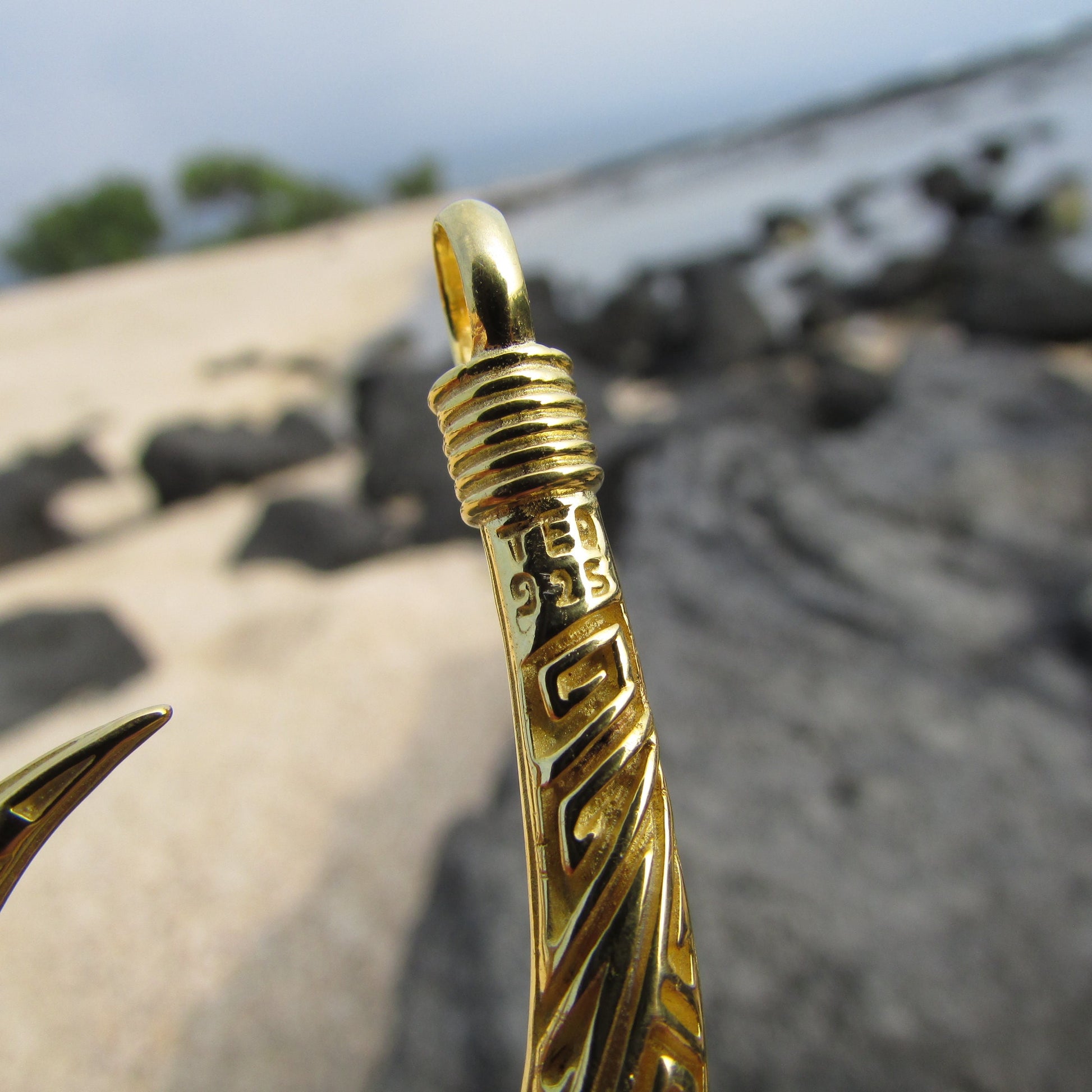 Polynesian Tribal Maui 18K Gold Vermeil Fishing Hook Necklace Pendant.