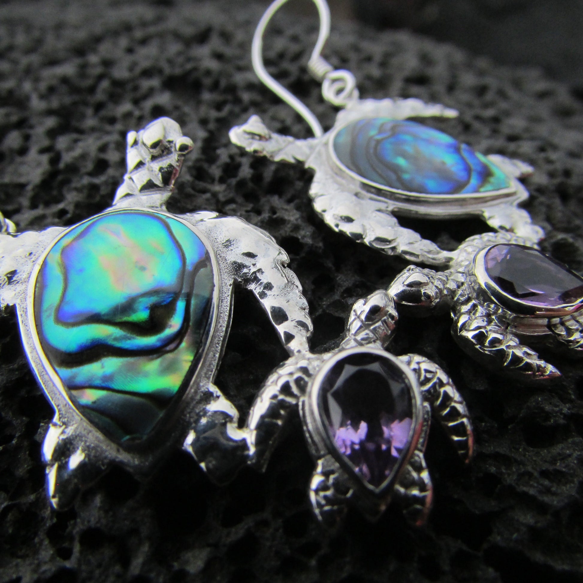 Sea Turtle Couple Earrings | Abalone Paua Shell | Amethyst | Beach | Gift | Jewelry | Handmade | Unique