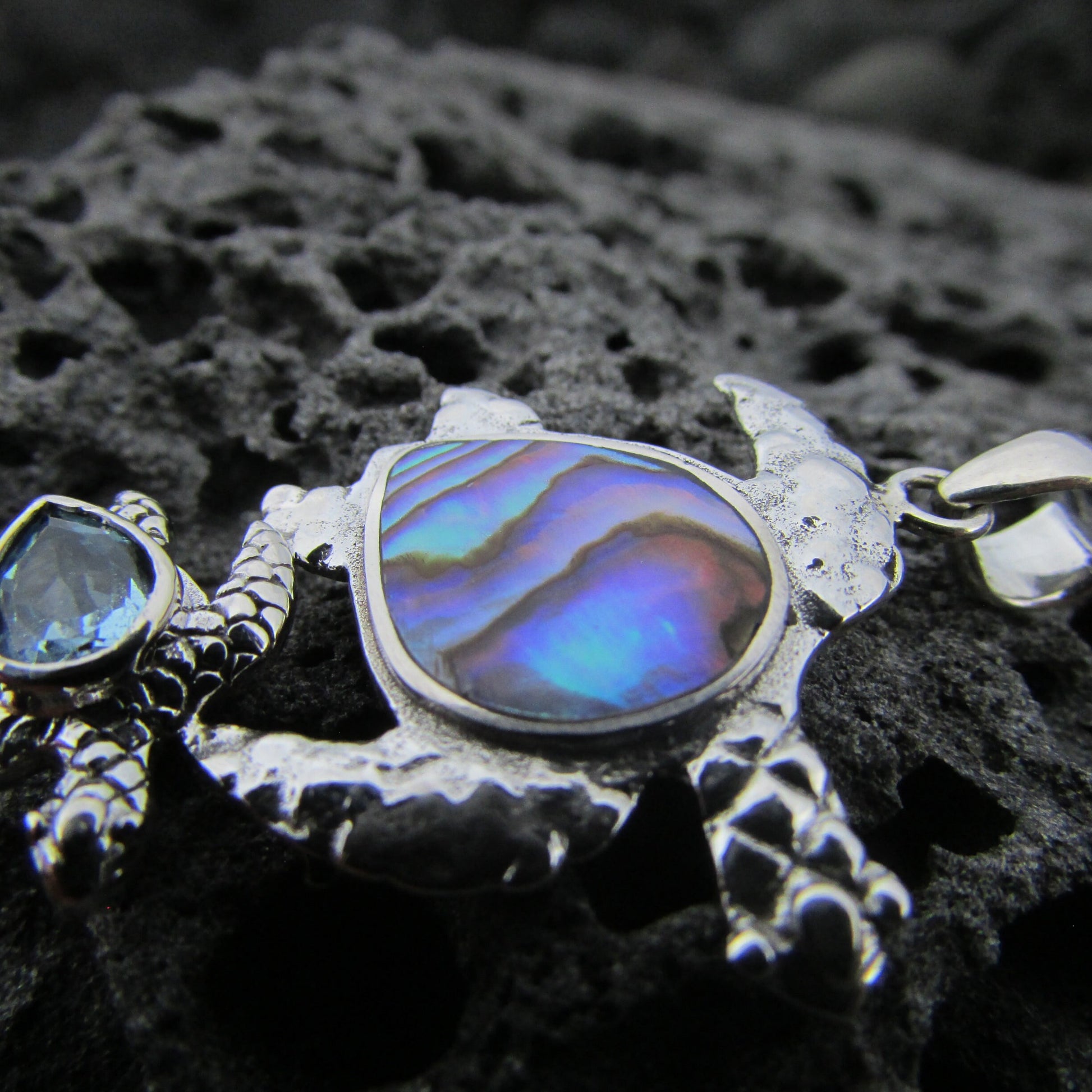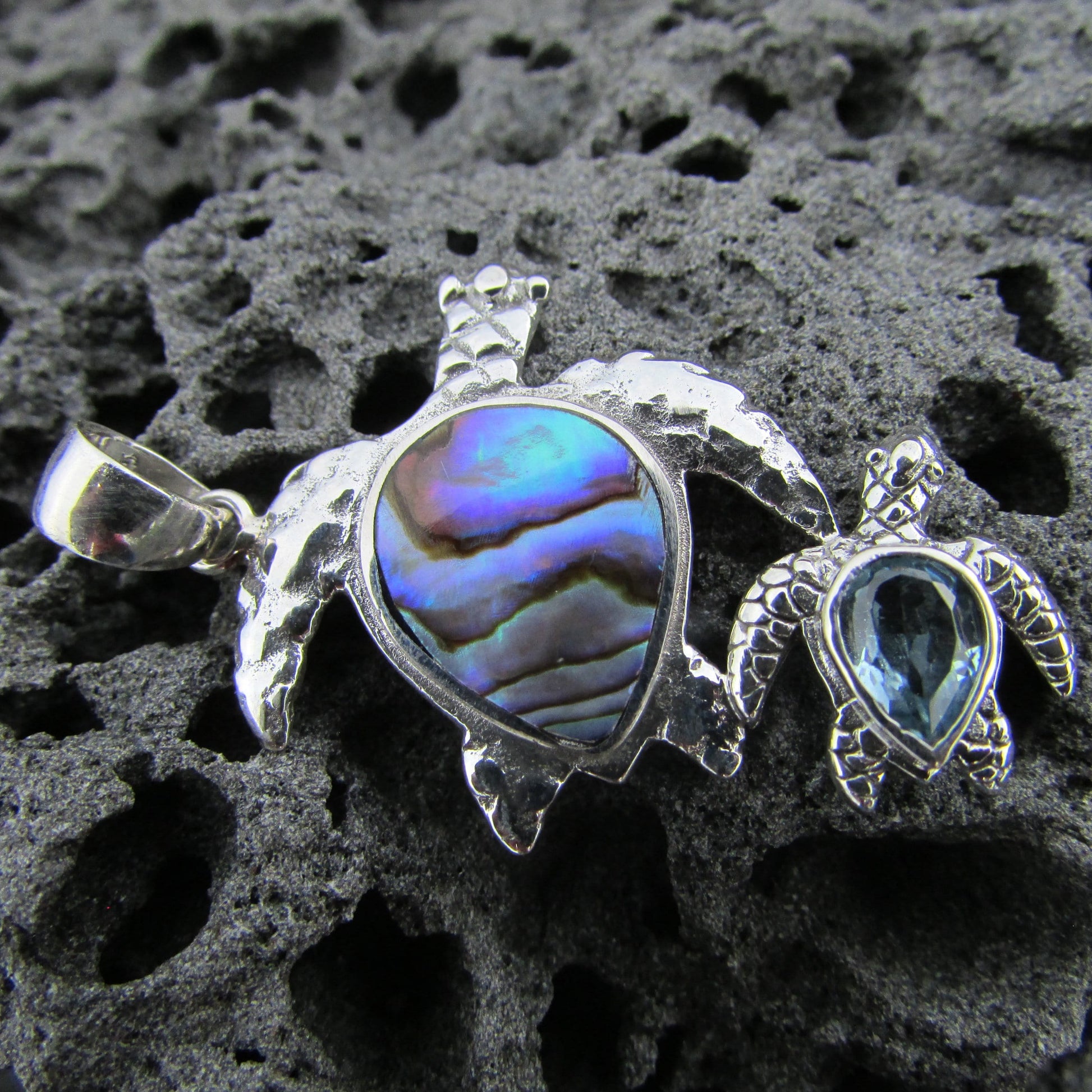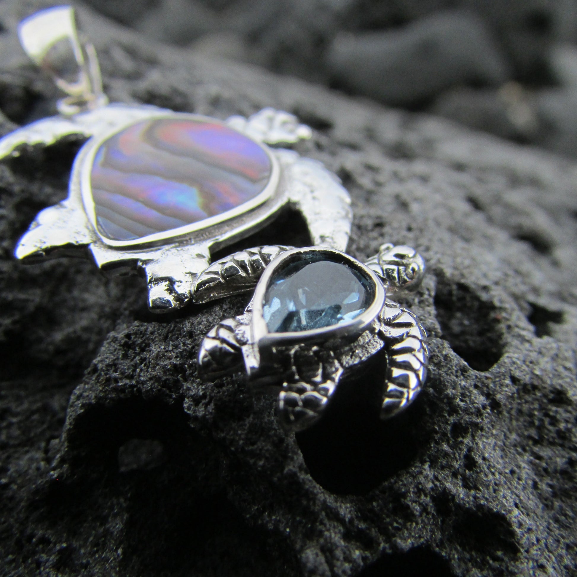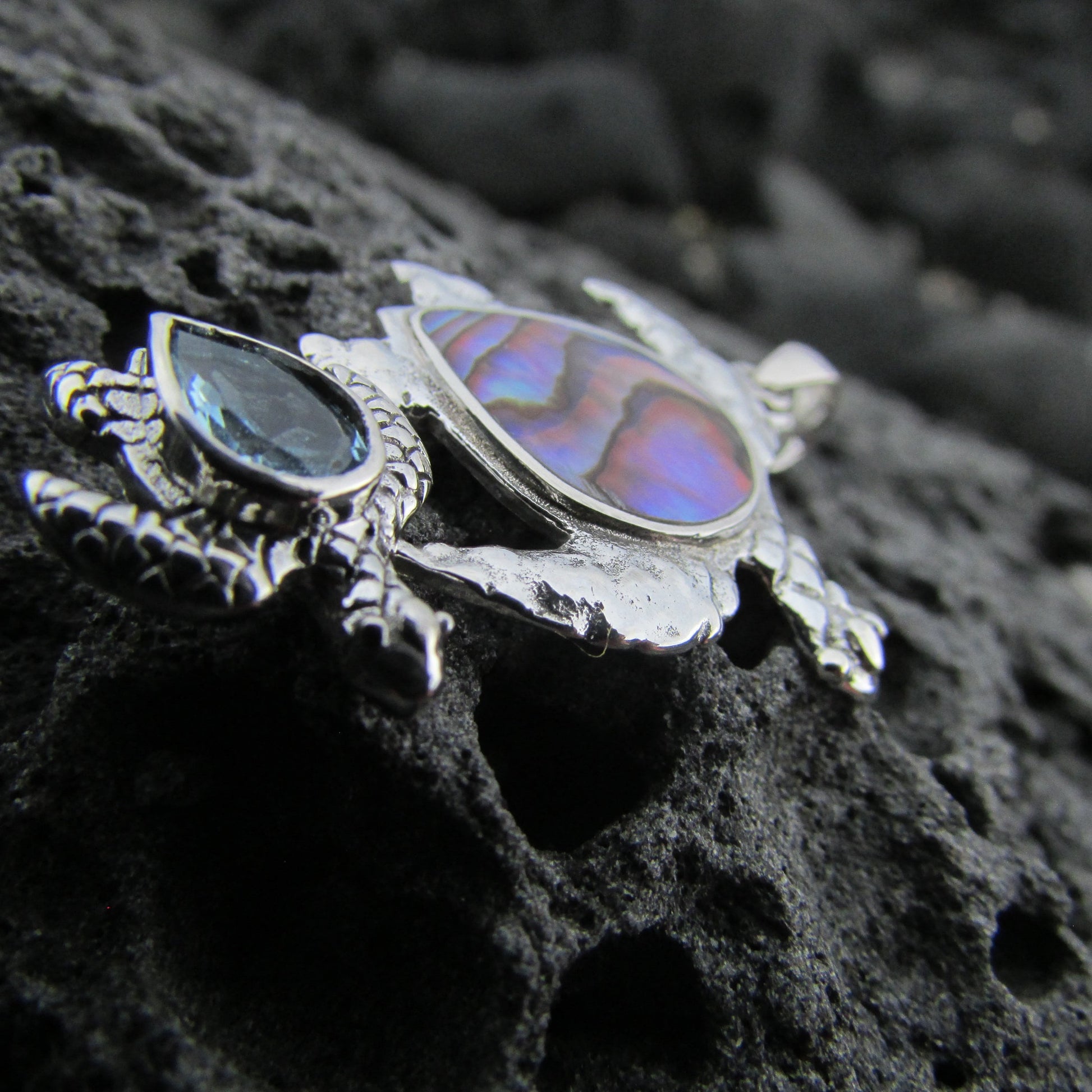 Sea Turtle Couple Necklace Pendant | Abalone Paua Shell | Blue Topaz | Sterling Silver | Ocean | Beach | Gift | Jewelry | Handmade | Unique