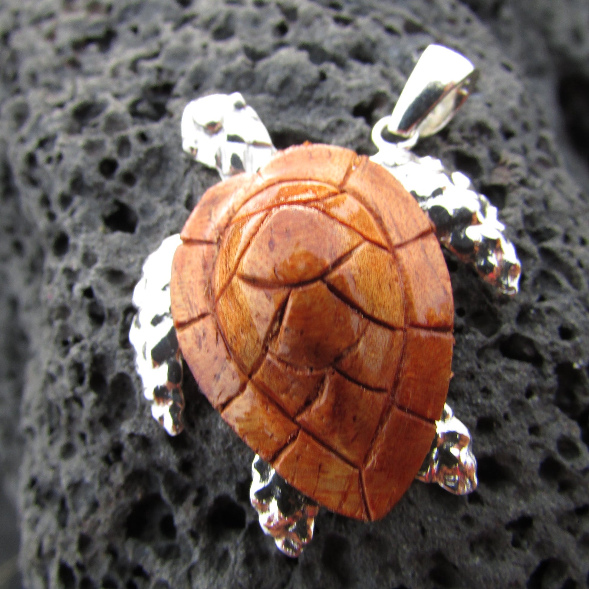 Sea Turtle Necklace Pendant Medium | Sterling Silver | Hawaiian Koa Wood | Ocean | Beach | Gift | Jewelry | Handmade | Unique