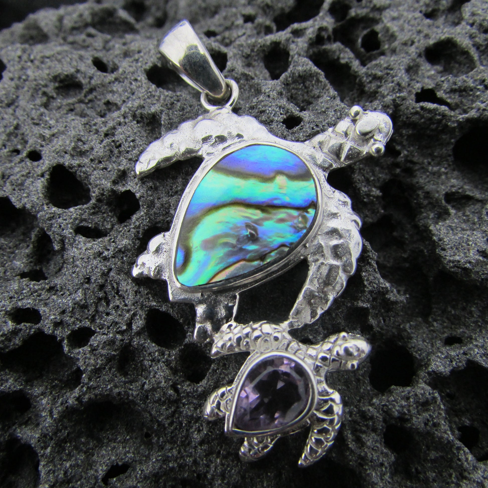 Sea Turtle Necklace Pendant | Paua Abalone Shell | Amethyst | Sterling Silver | Ocean | Beach | Gift | Jewelry | Handmade | Unique