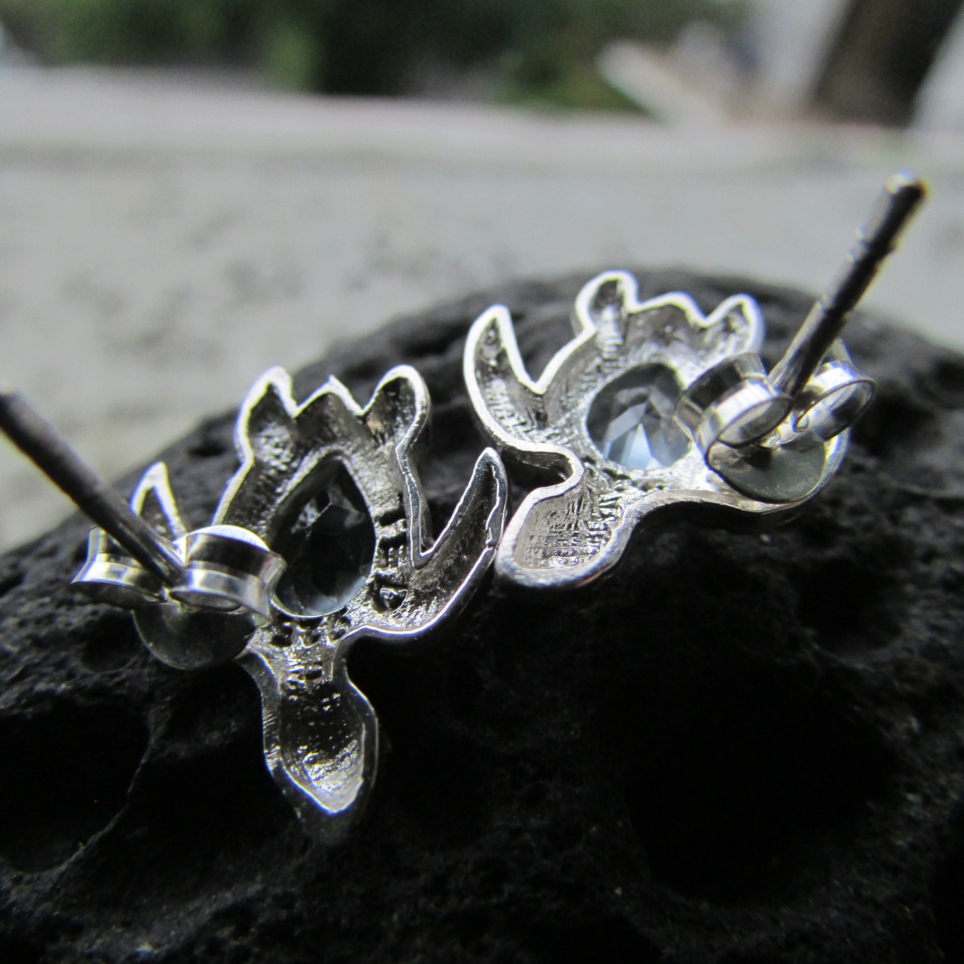 Sea Turtle Stud Earrings | Blue Topaz | Sterling Silver | Ocean | Beach | Gift | Jewelry | Handmade | Unique