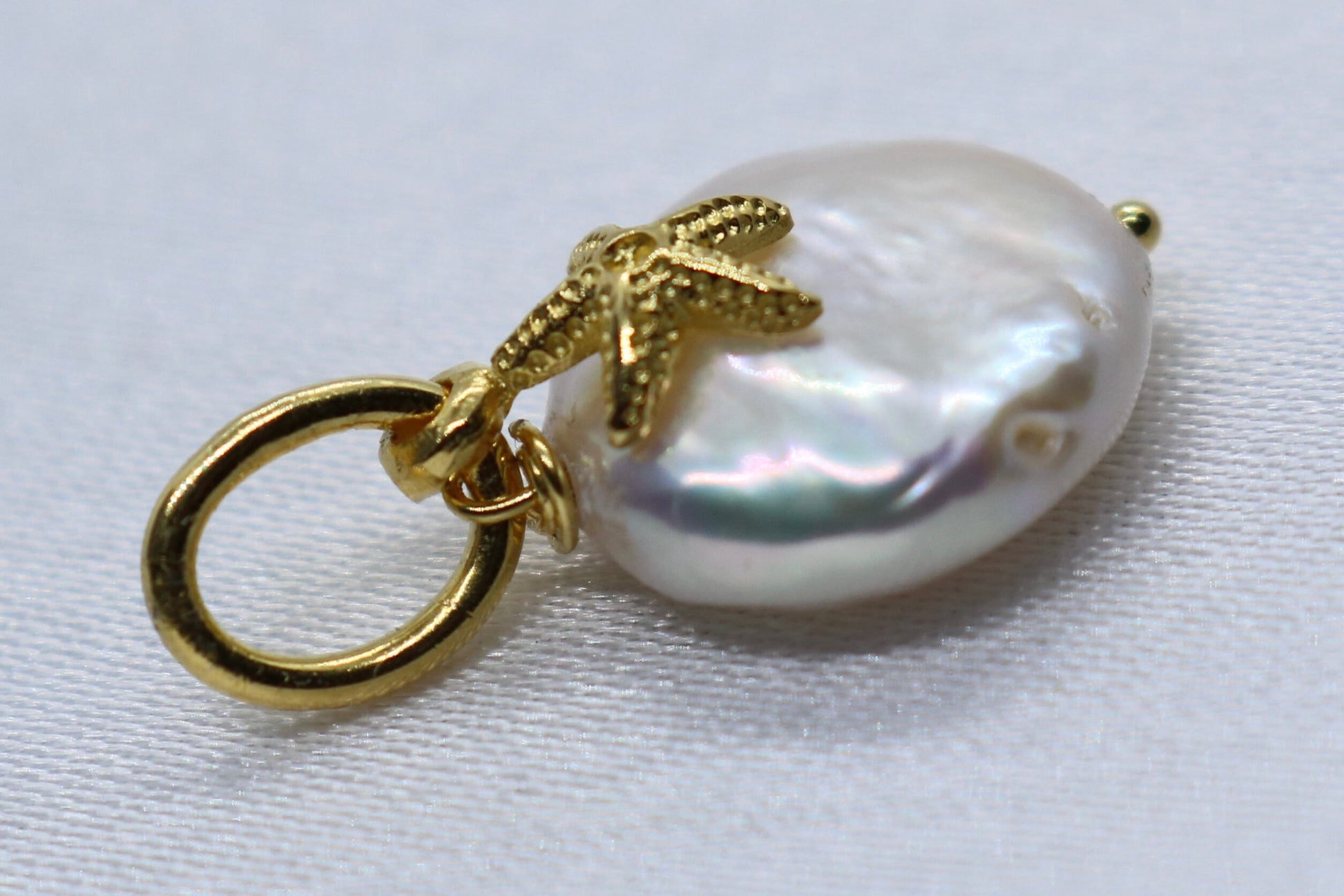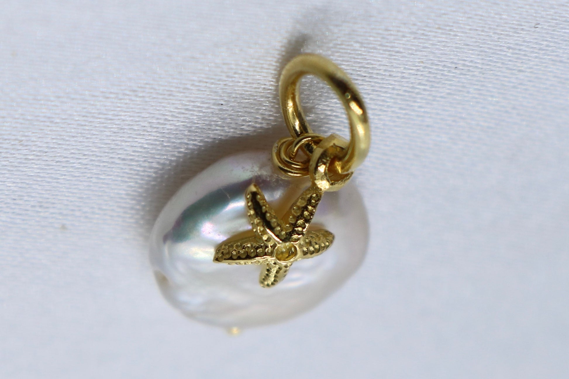 Starfish Pearl Charm Coin 18k Vermeil Gold Pendant Necklace