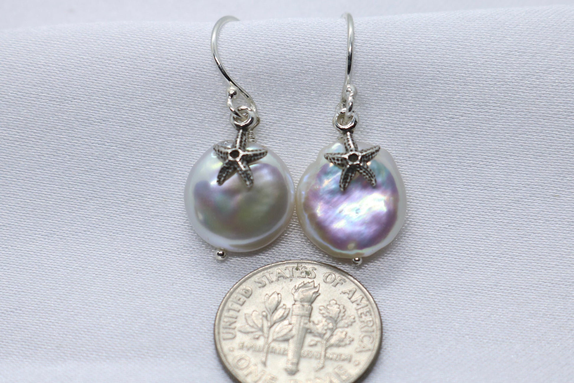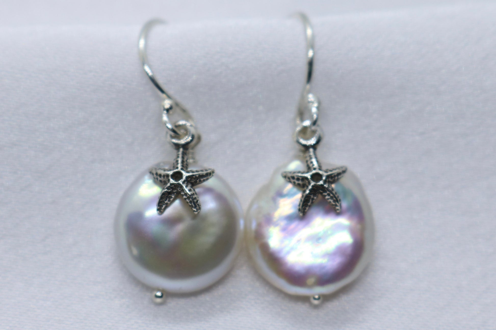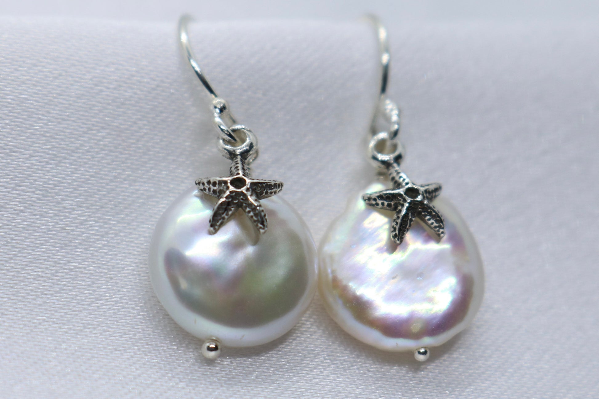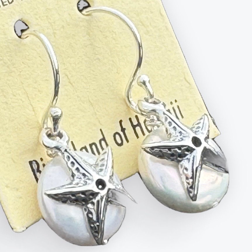 Starfish Pearl Earrings Charm Coin Silver Jewelry