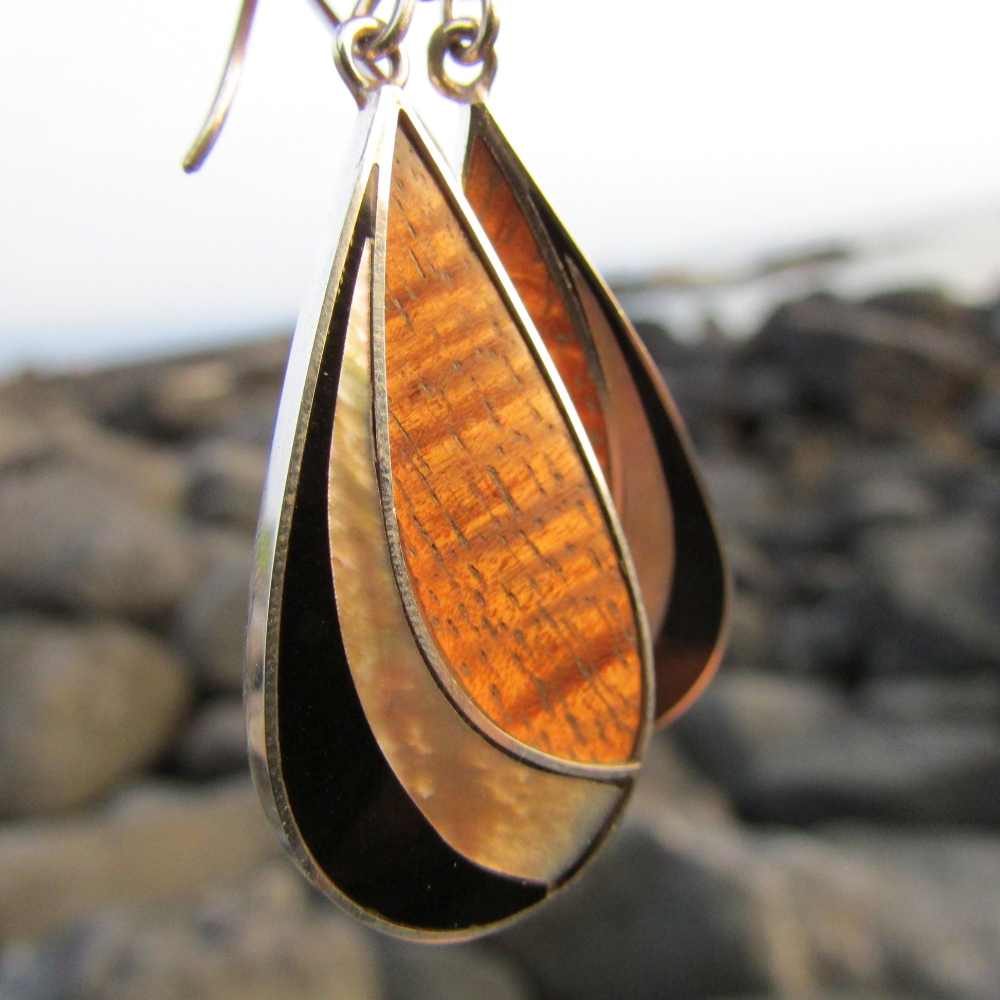 Teardrop Earrings | Ouster Shell | Hawaiian Koa Wood | Sterling Silver | Gift | Jewelry | Handmade | Unique