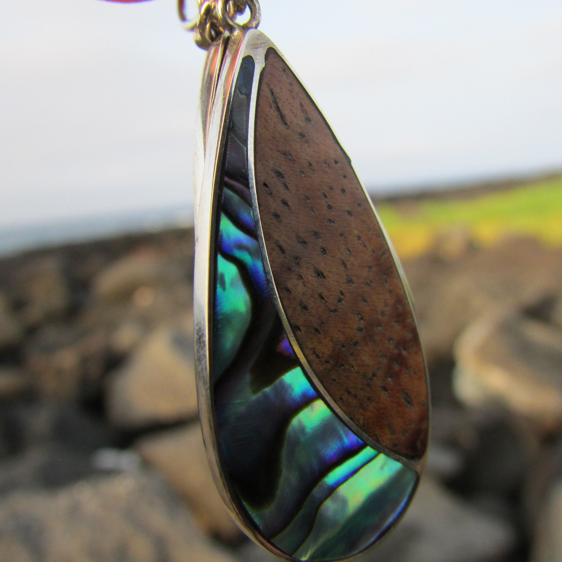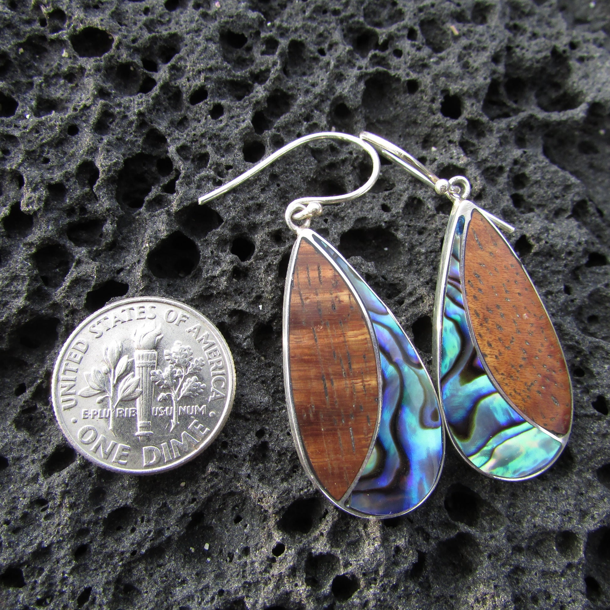Teardrop Earrings | Paua Abalone Shell | Koa Wood | Sterling Silver | Gift | Jewelry | Handmade | Unique