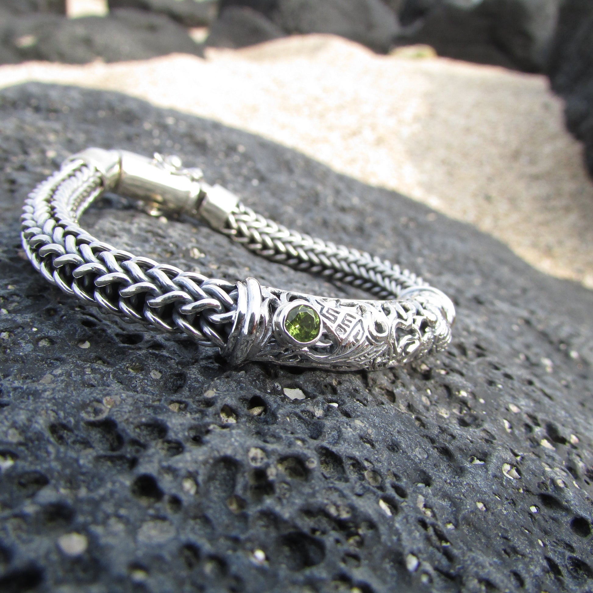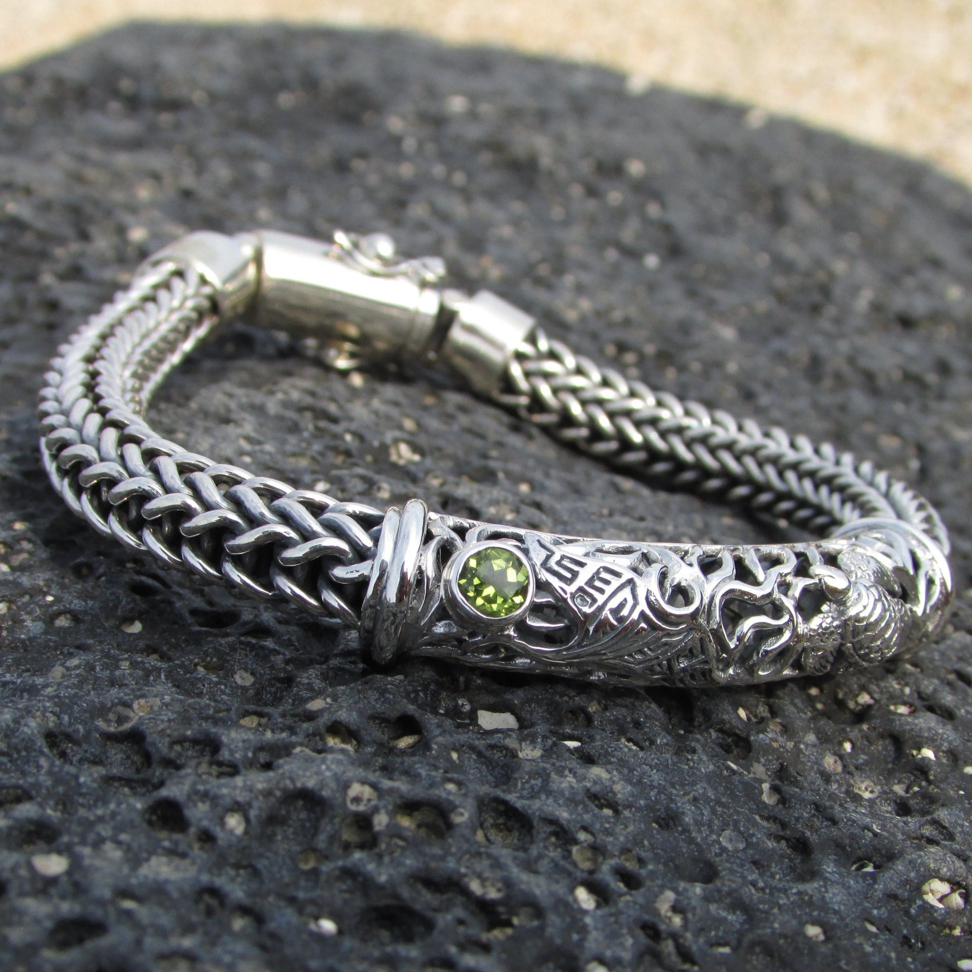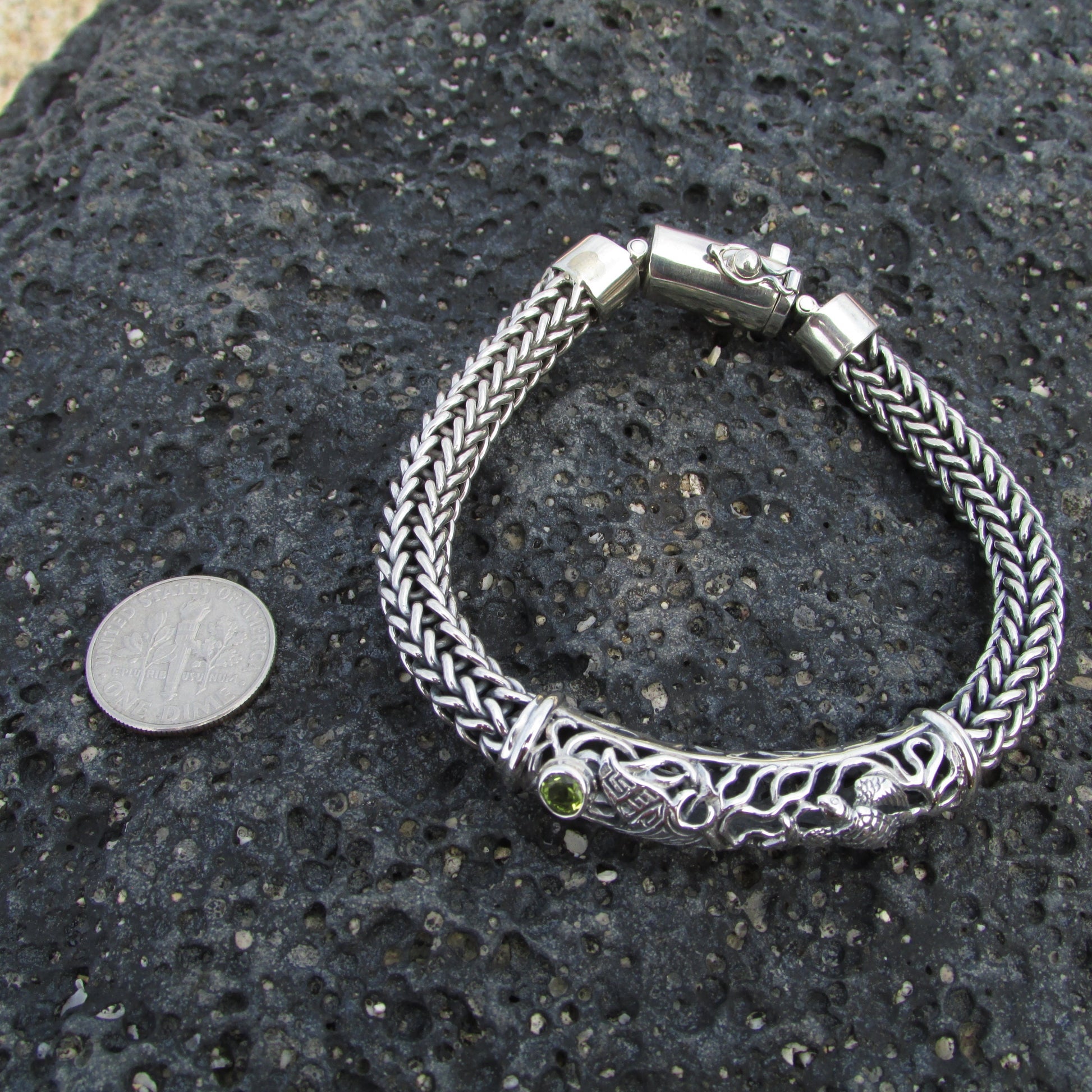 Turtle and Manta Ray Bracelet | Sterling Silver | Peridot | 7 inch | Ocean | Beach | Gift | Jewelry | Handmade | Unique