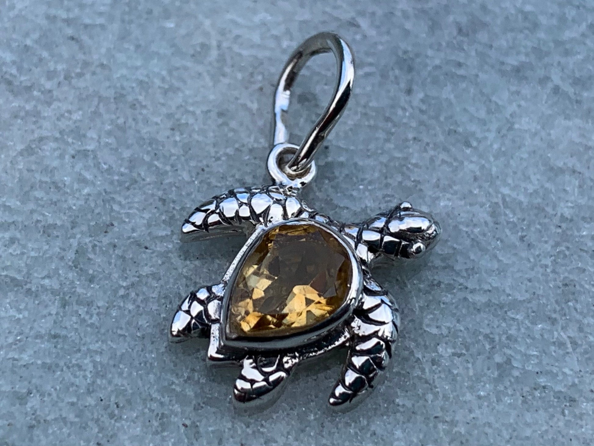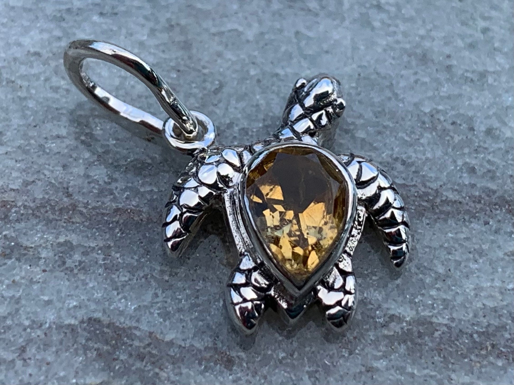 Turtle Charm Citrine Necklace Pendant Sterling Silver