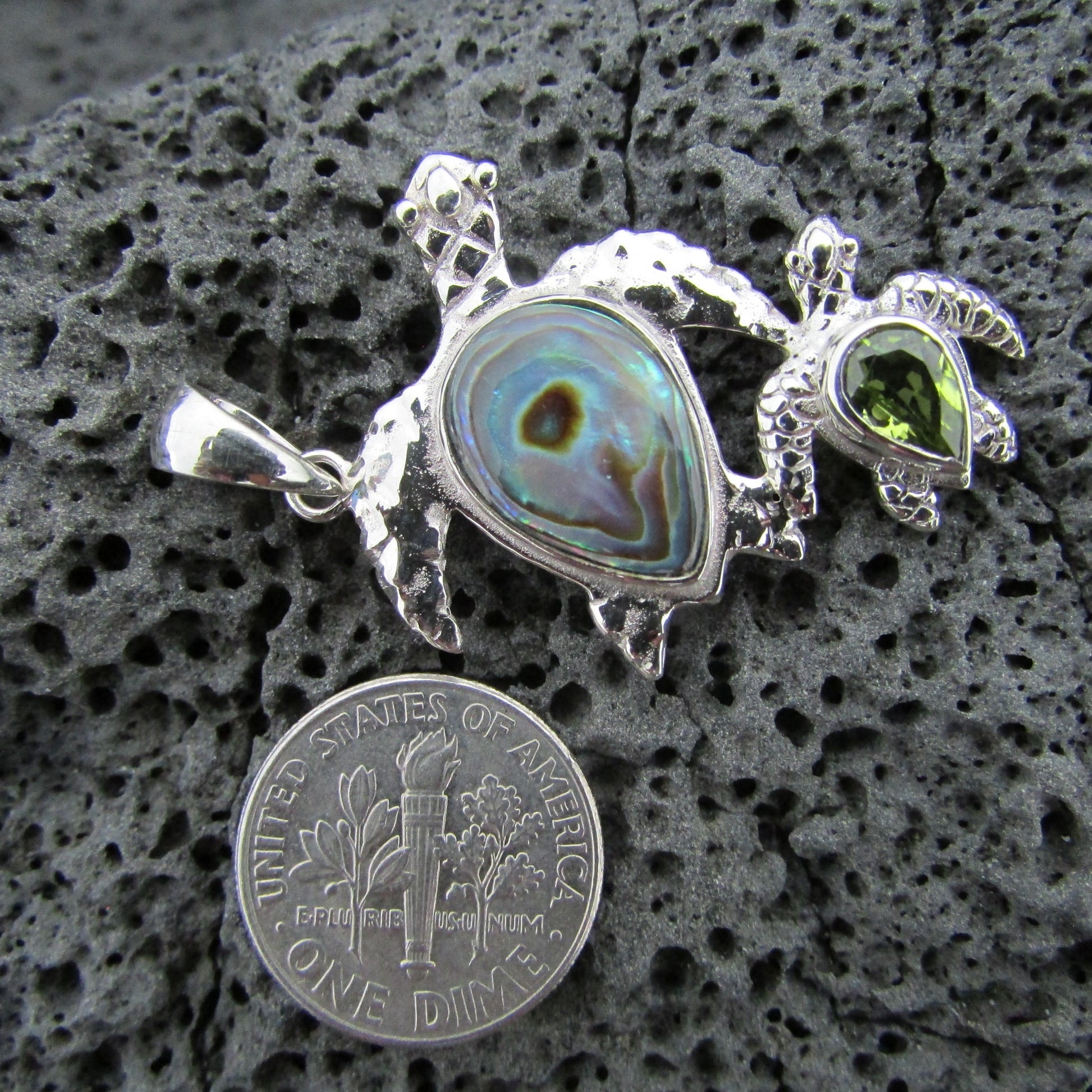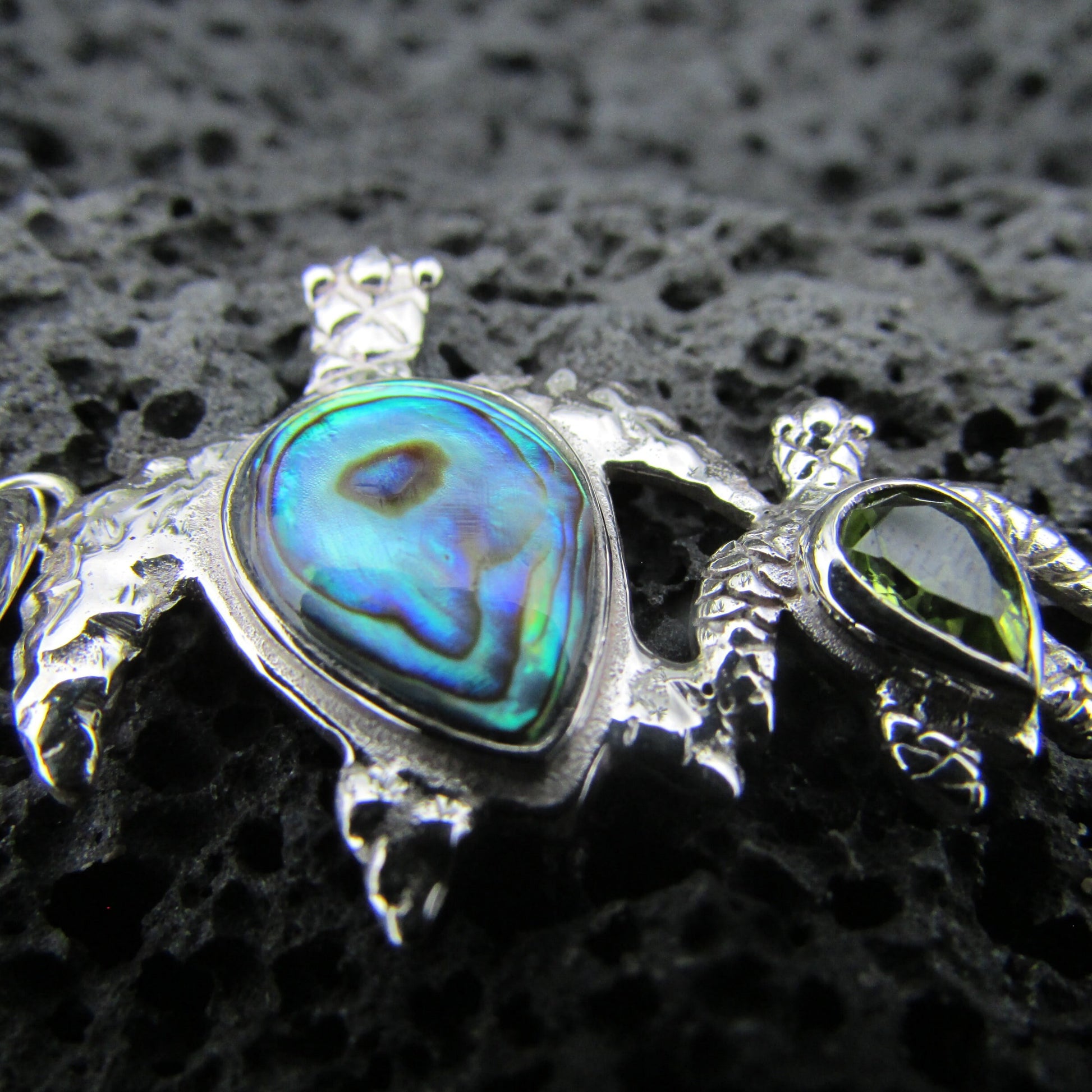 Turtle Necklace Pendant | Peridot | Paua Abalone Shell | Sterling Silver | Ocean | Beach | Gift | Jewelry | Handmade | Unique