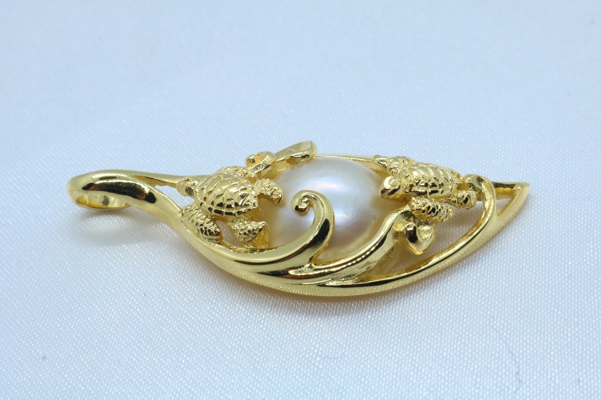 Turtles Hawaiian Honu 18k Gold Vermeil Mabe White Pearl Necklace Pendant