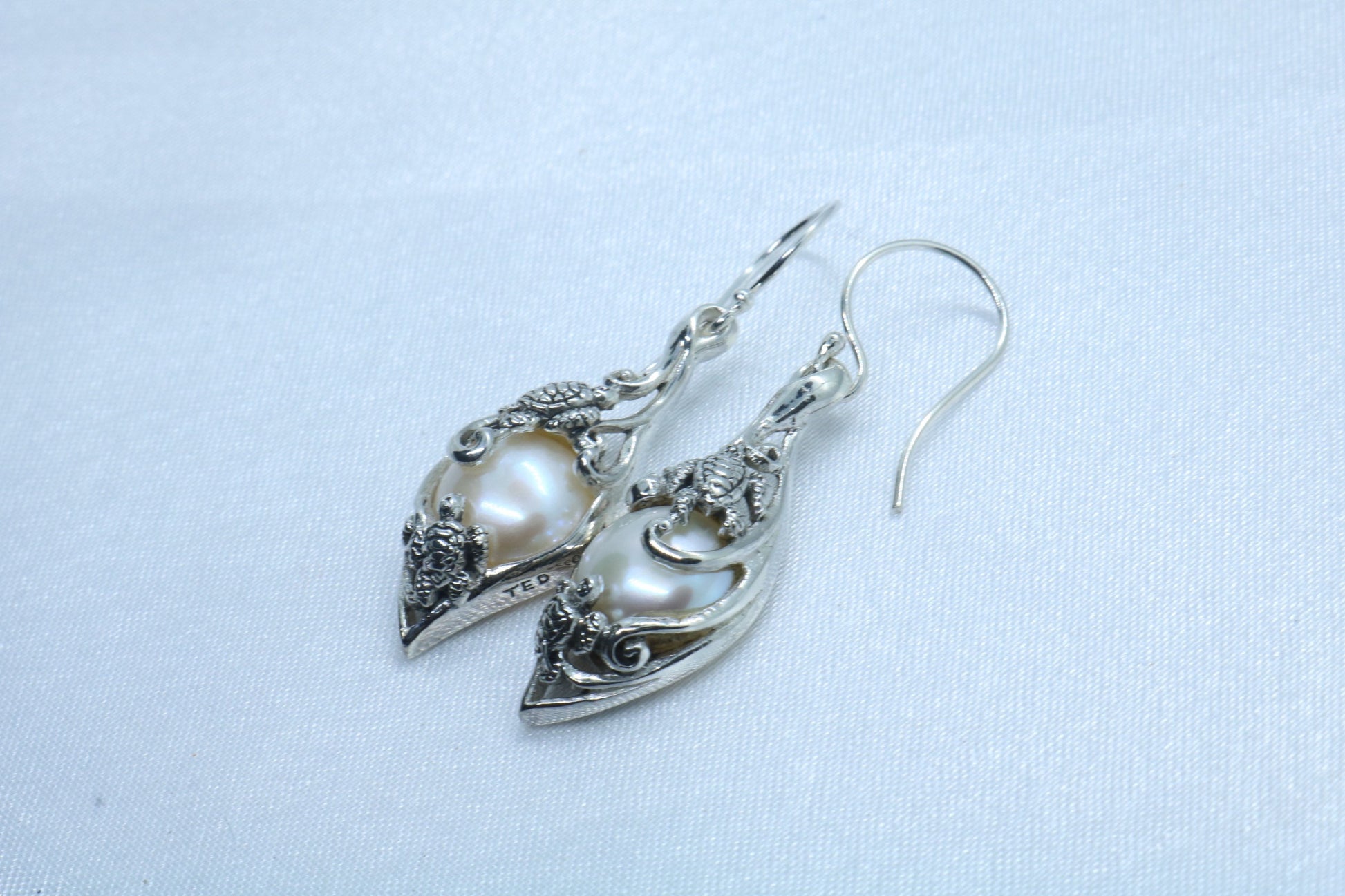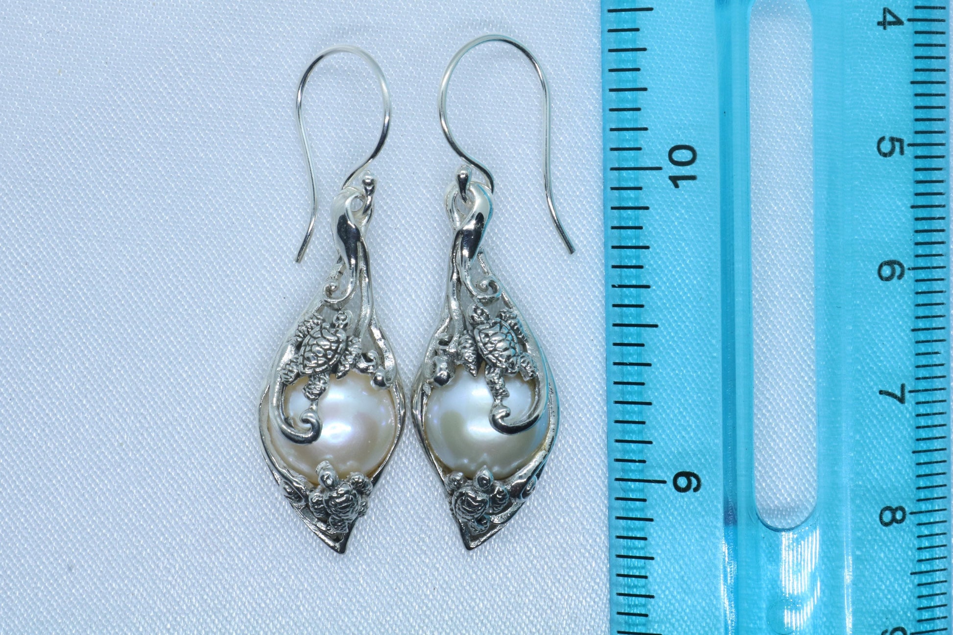 Turtles Hawaiian Honu Mabe White Pearl Silver Earrings