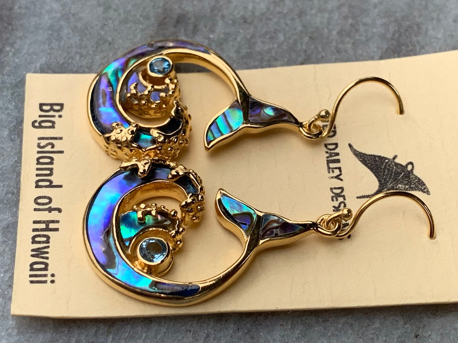 Whale Tail and Wave Swiss Blue Topaz 18k Gold Vermeil Earrings