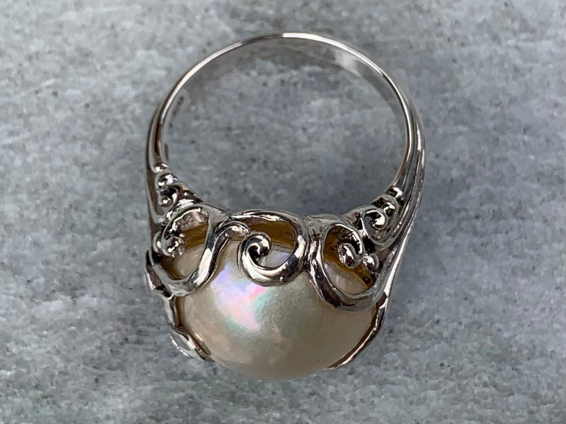 White Mabe Pearl Plumeria Flower Silver Ring